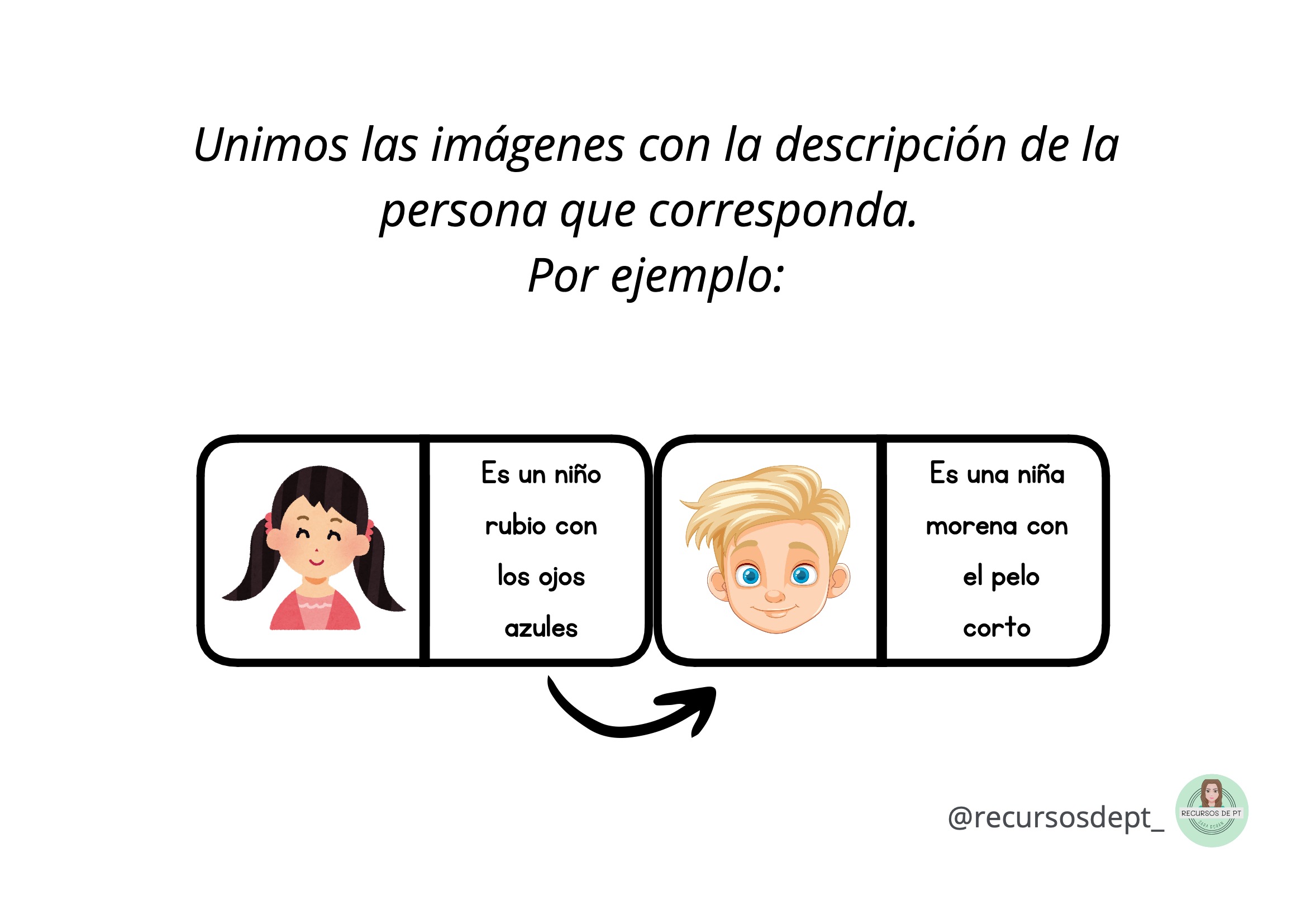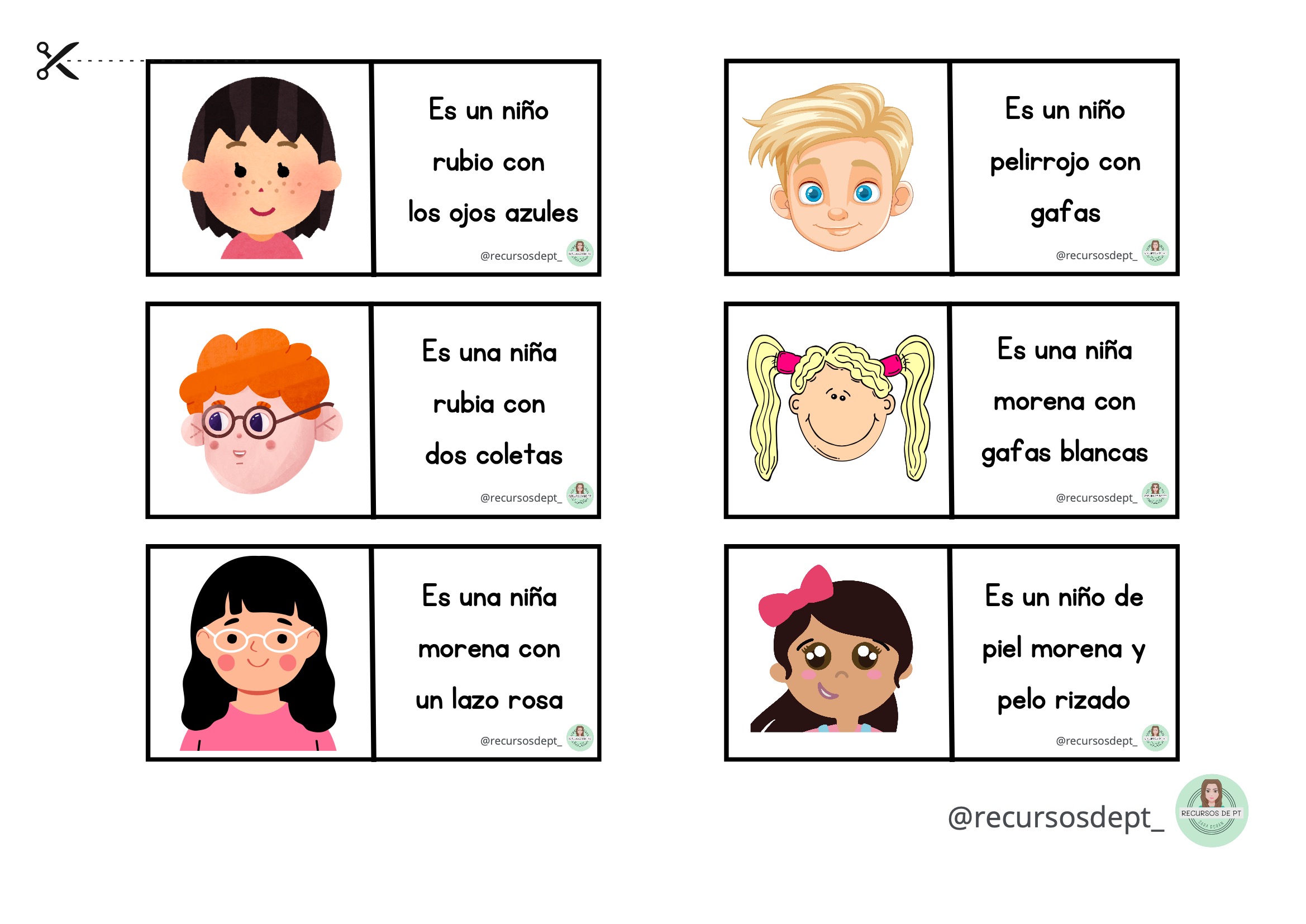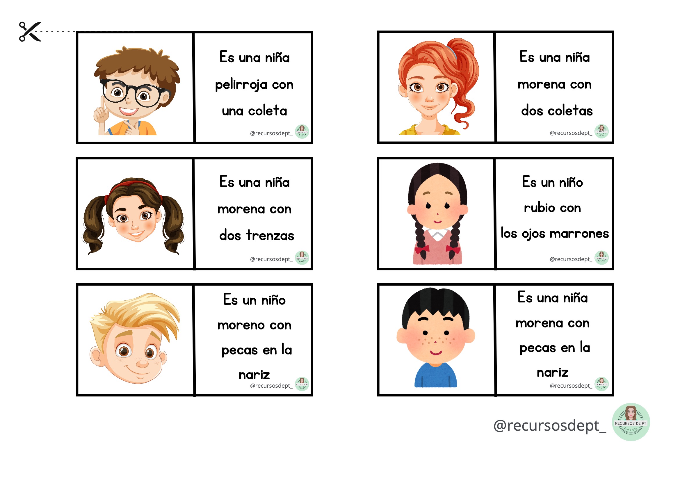 También puede adaptarse para crear frases o practicar vocabulario de las características físicas y rasgos personales.