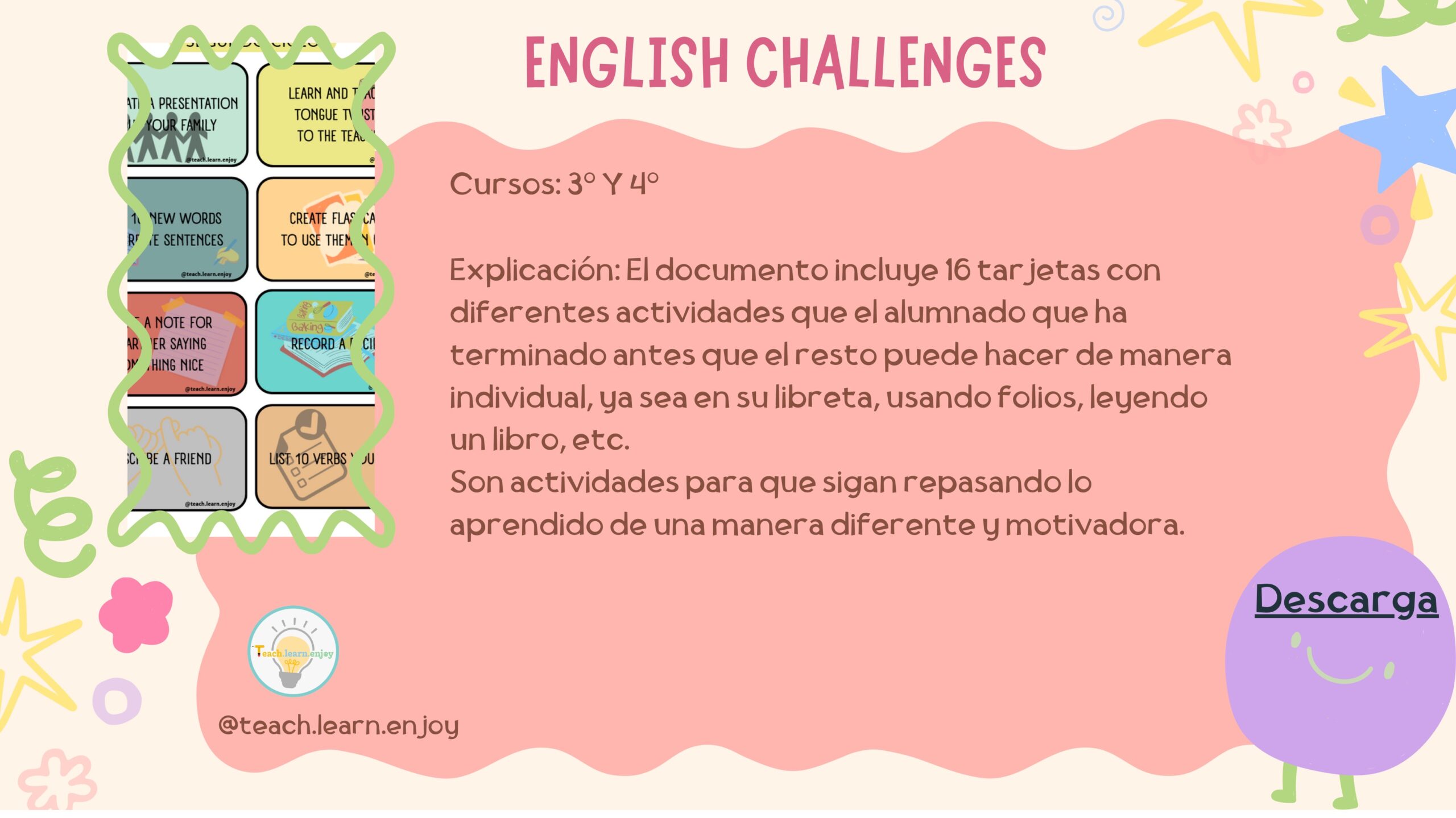 🇬🇧 Hemos preparado con la colaboración de más de 10 profes increíbles 20 propuestas para tus fast finishers en la asignatura de inglés