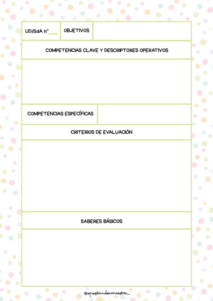 🧩 Fichas para el desglose de unidades didácticas (UD/SdA) con apartados de objetivos, competencias, criterios y saberes básicos.
