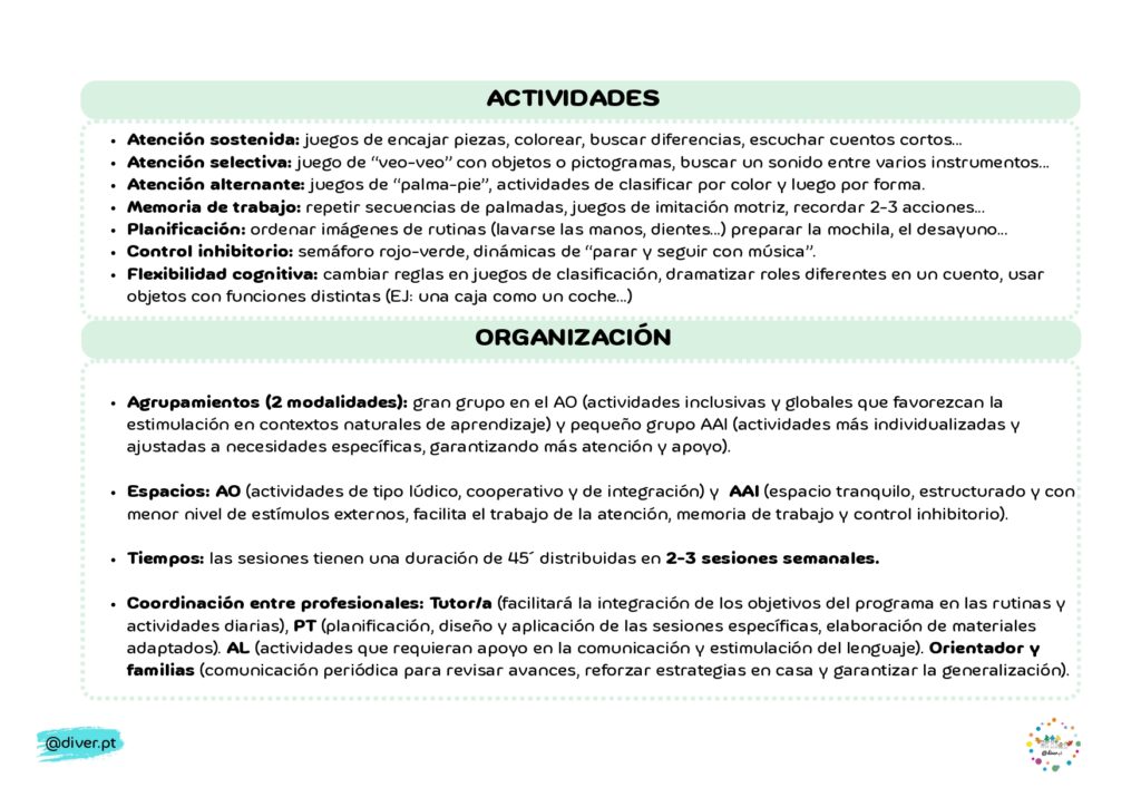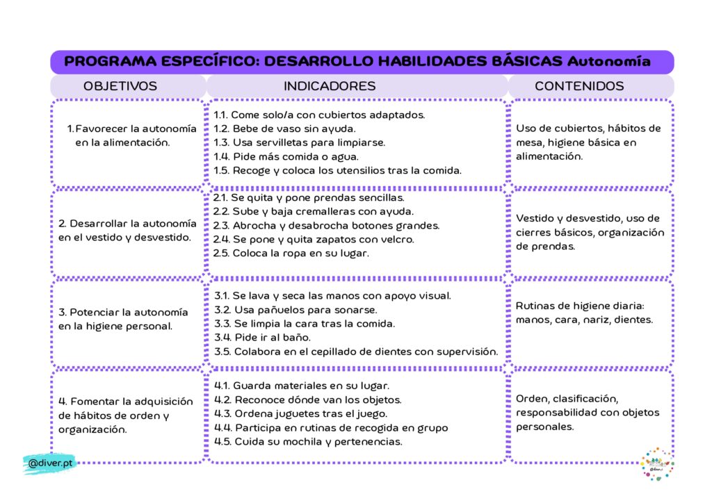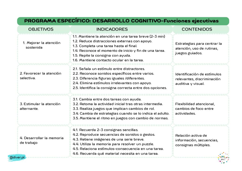 El cuaderno de los 6 programas específicos PT incluye una variedad de actividades y propuestas organizadas en módulos que abarcan las siguientes áreas: