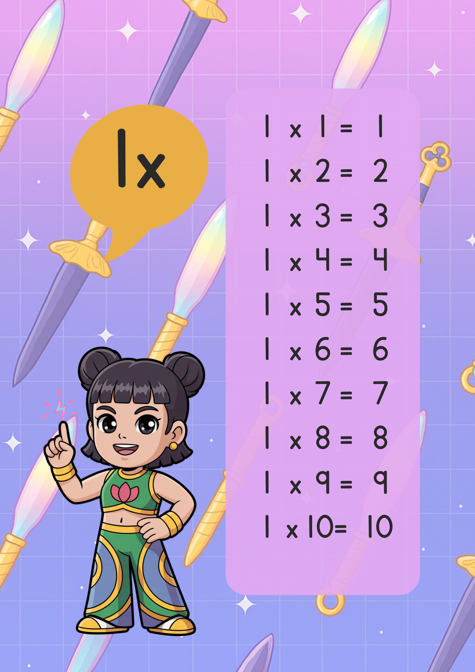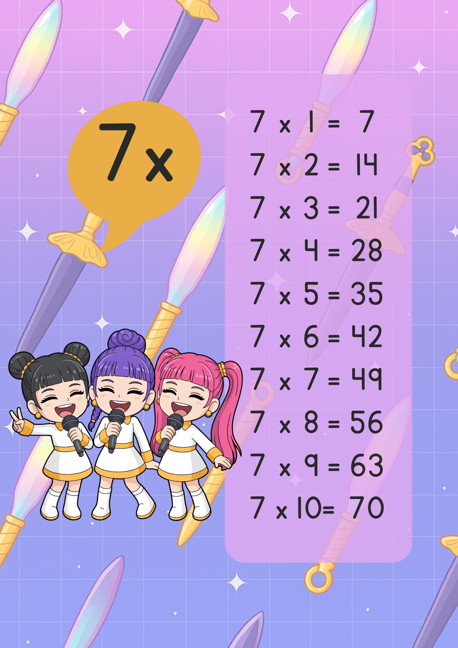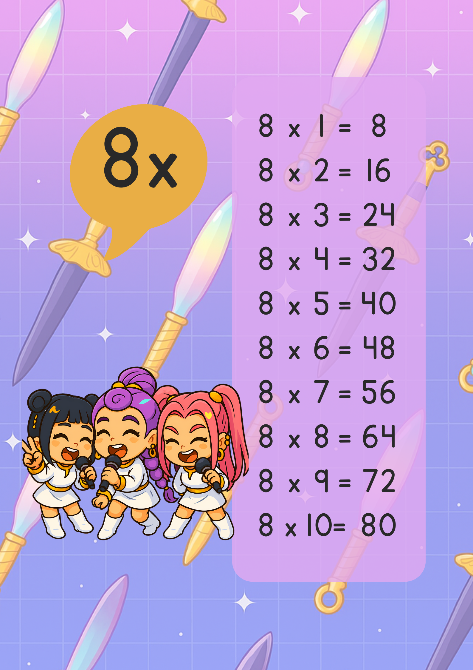 Las Demon Hunter Guerreras K-POP llegan para hacer las tablas de multiplicar mucho más emocionantes y divertidas. Con personajes que los niños adoran, este recurso les permitirá reforzar sus habilidades matemáticas mientras disfrutan de sus héroes favoritos.