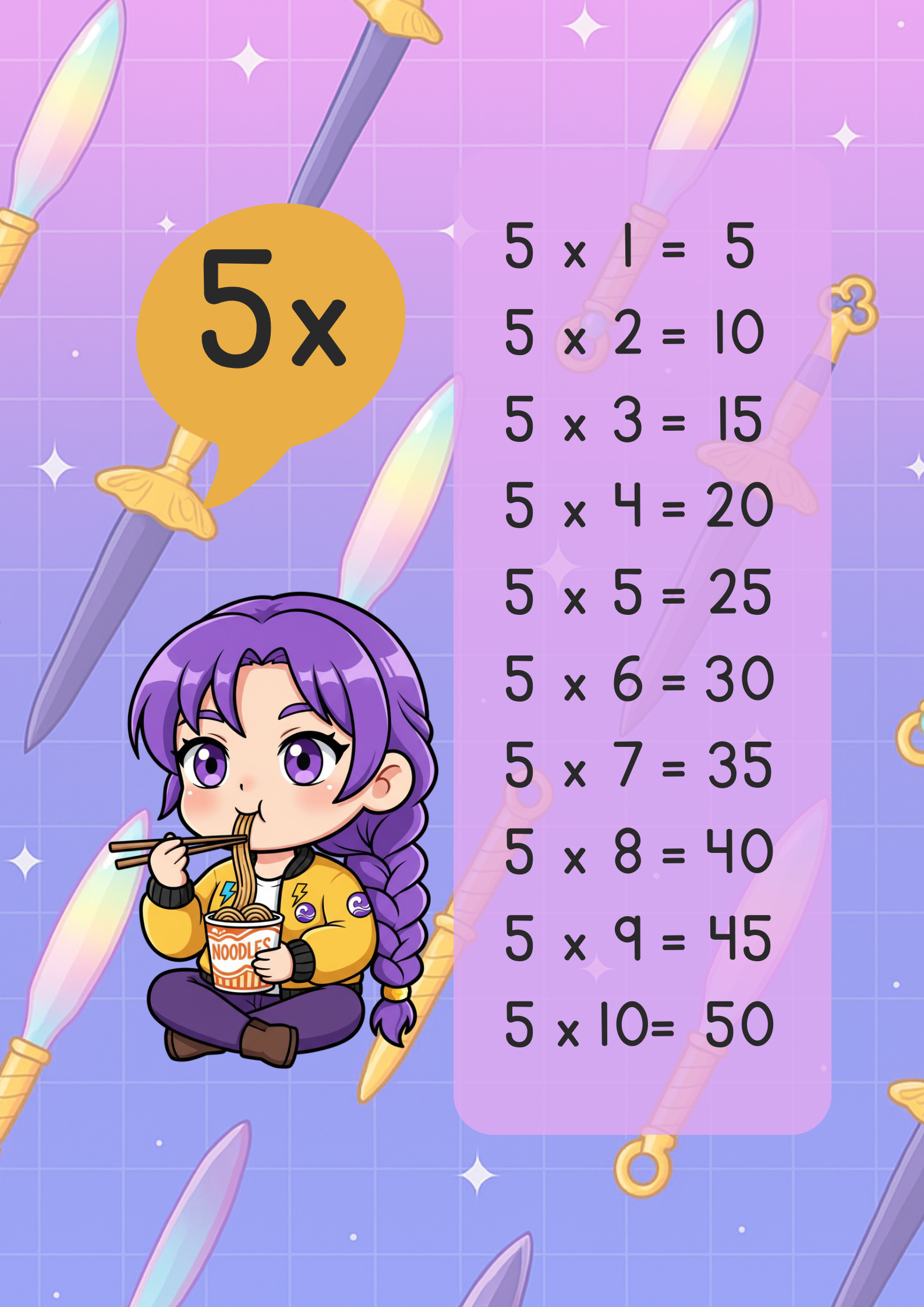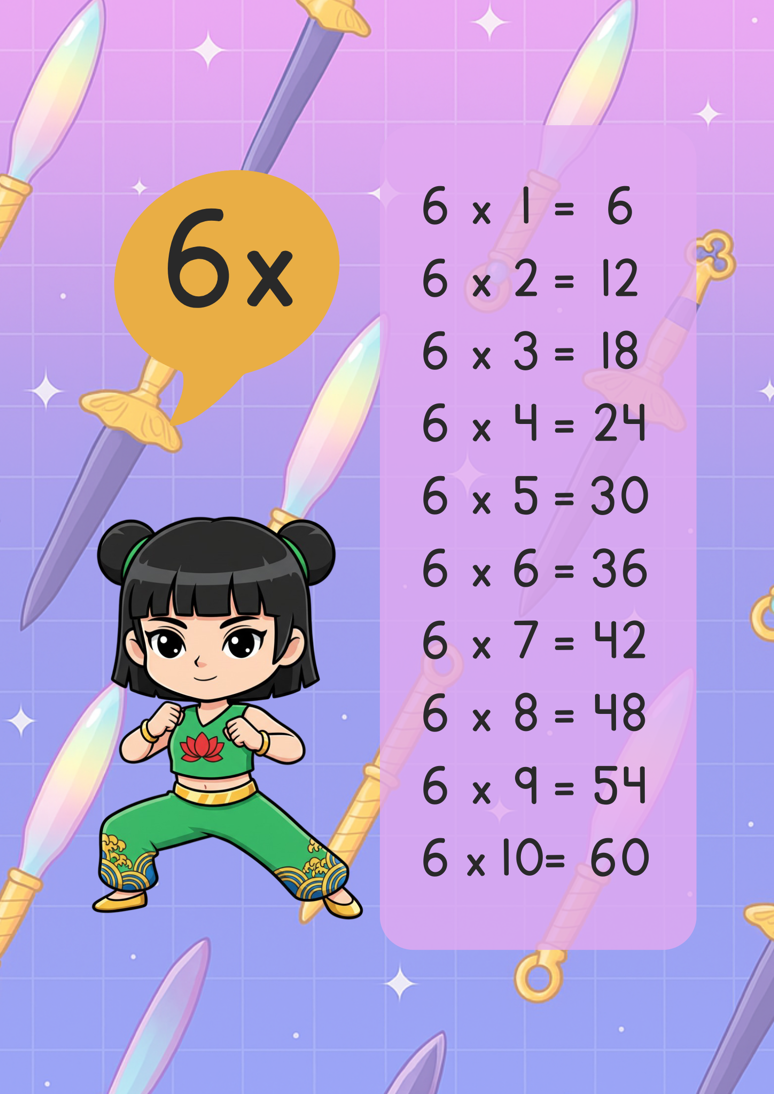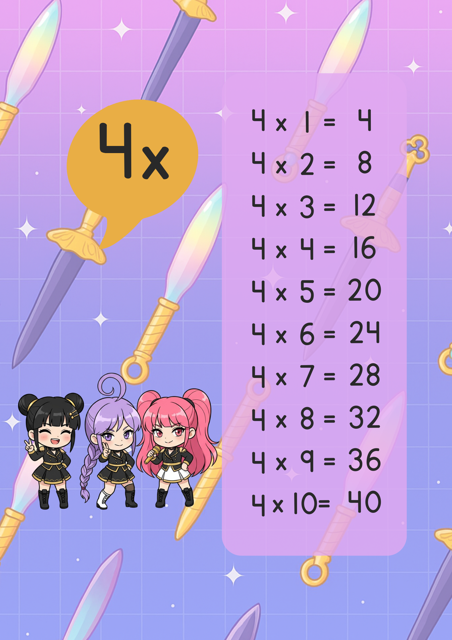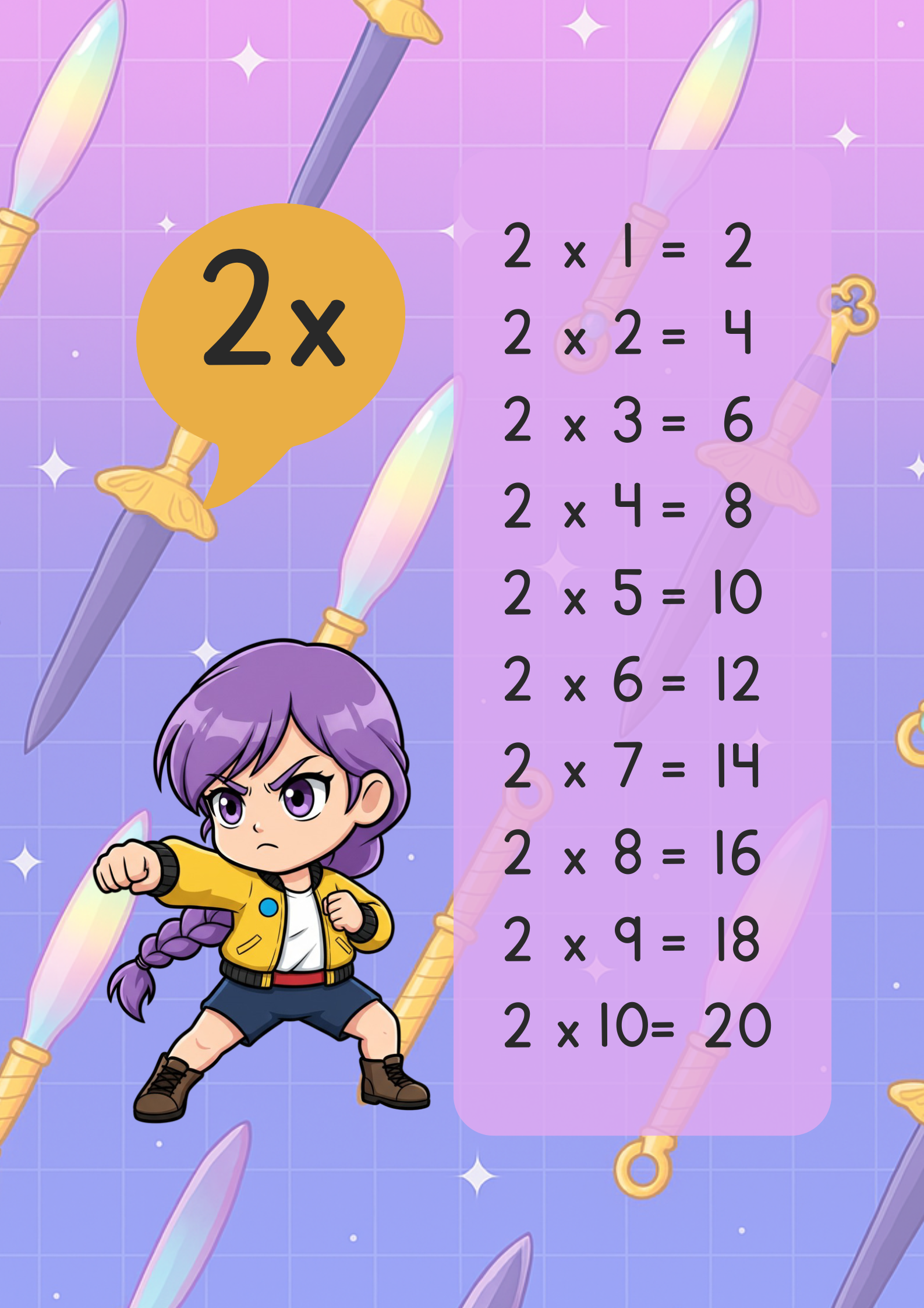 Las Demon Hunter Guerreras K-POP llegan para hacer las tablas de multiplicar mucho más emocionantes y divertidas. Con personajes que los niños adoran, este recurso les permitirá reforzar sus habilidades matemáticas mientras disfrutan de sus héroes favoritos.