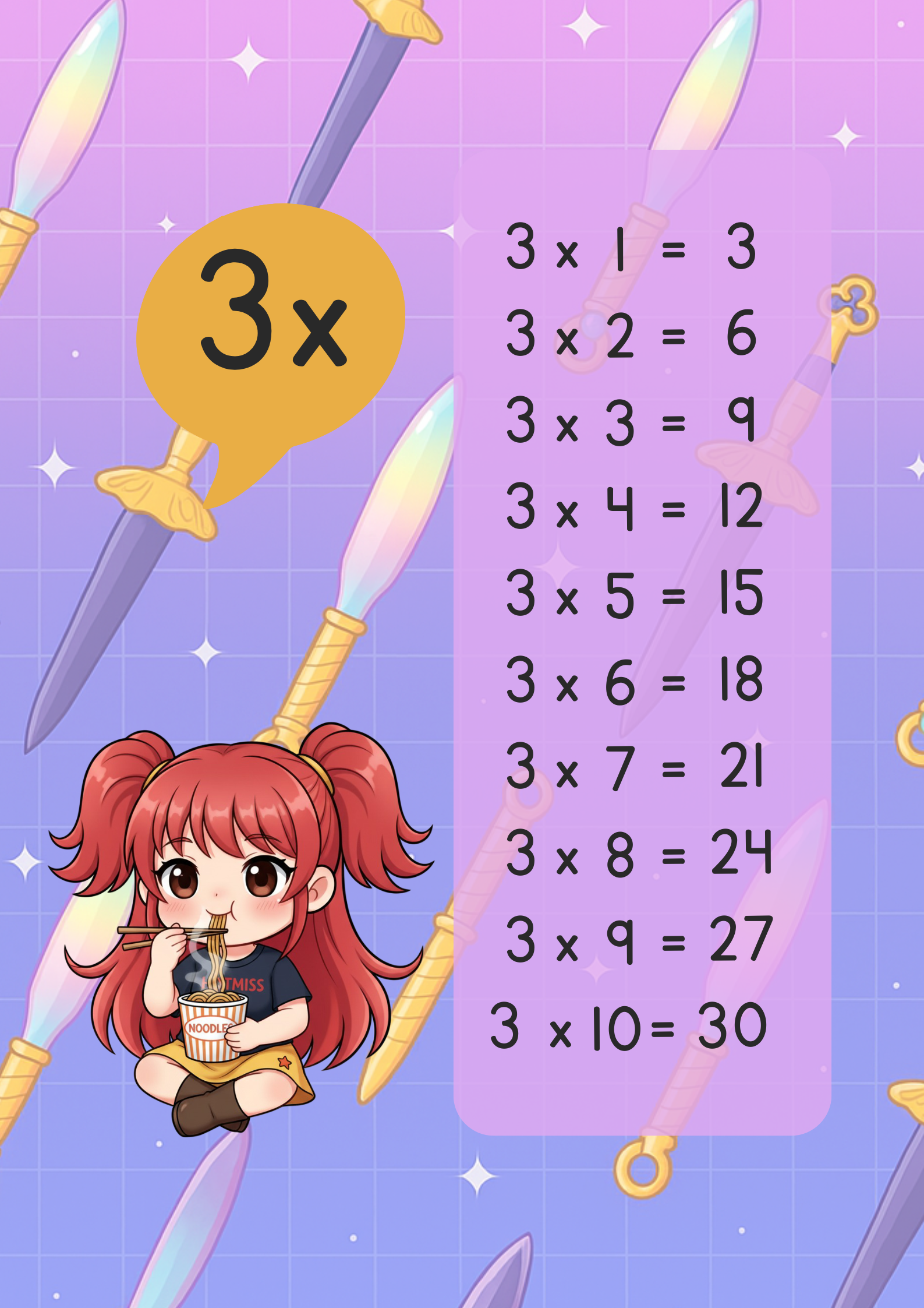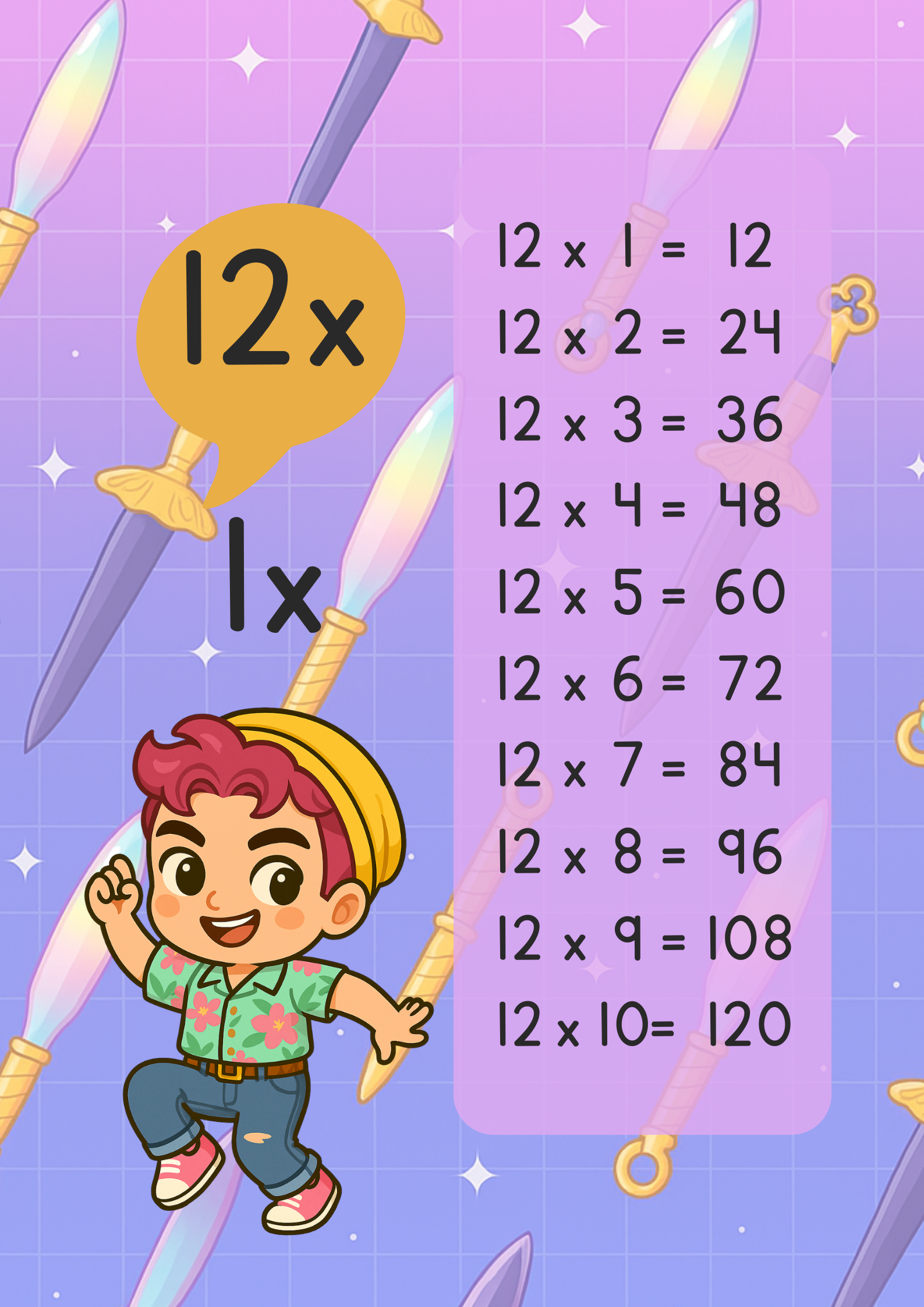 🔢 Tablas de multiplicar del 1 al 12, presentadas con personajes de Demon Hunter K-POP para hacer cada número más atractivo.