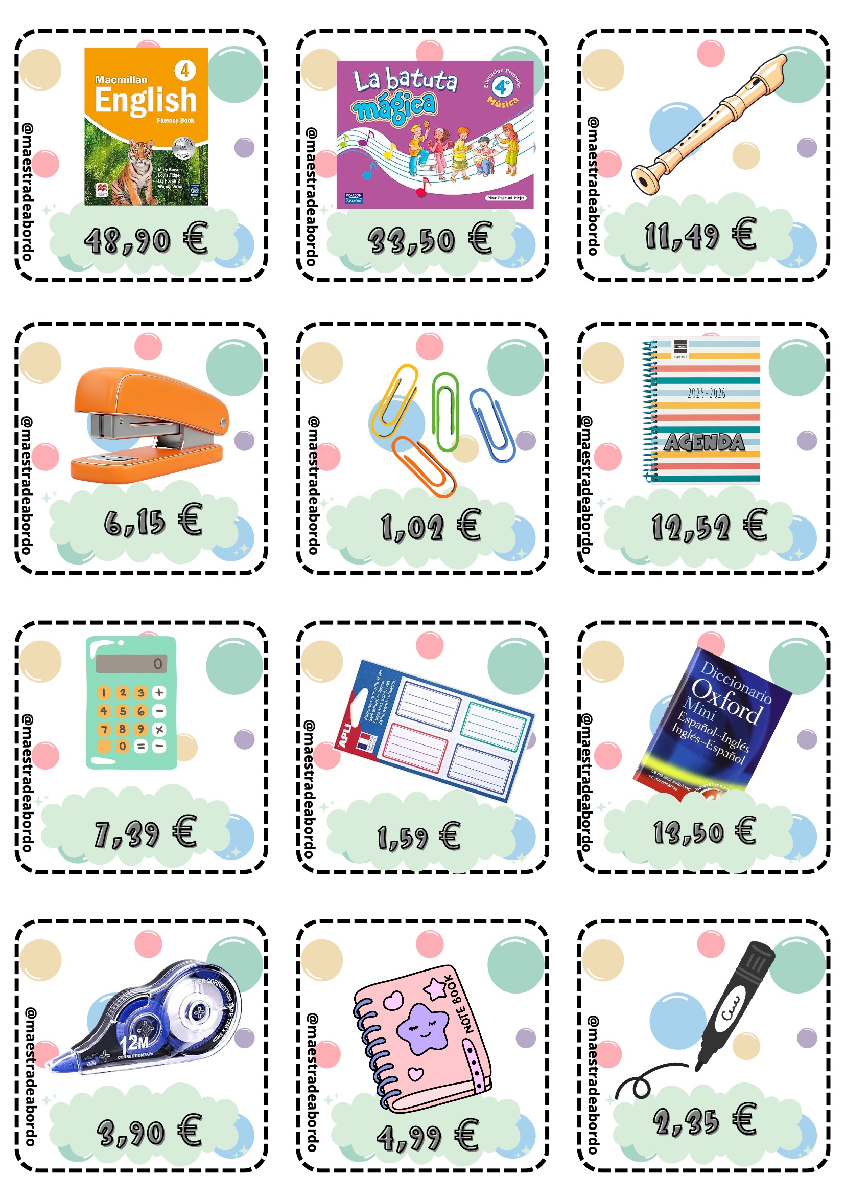 Este recurso incluye un conjunto amplio de tarjetas visuales y coloridas ideales para trabajar el reconocimiento de precios, el cálculo con euros y el manejo del dinero en 2º y 3º ciclo de Primaria. Son perfectas para actividades de cálculo mental, sumas, restas, comparación de cantidades y pequeños problemas matemáticos contextualizados.