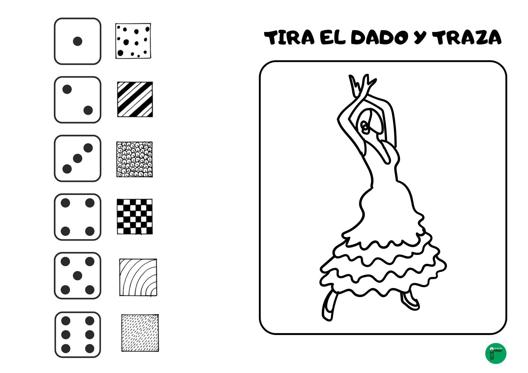 Hoy compartimos un recurso educativo ideal para trabajar la motricidad fina, la creatividad y el trazado gráfico de una forma divertida con dibujos de flamenco: una colección de dibujos relacionados con esta temática que los alumnos deberán completar con trazos de grafismo creativo utilizando un dado.
