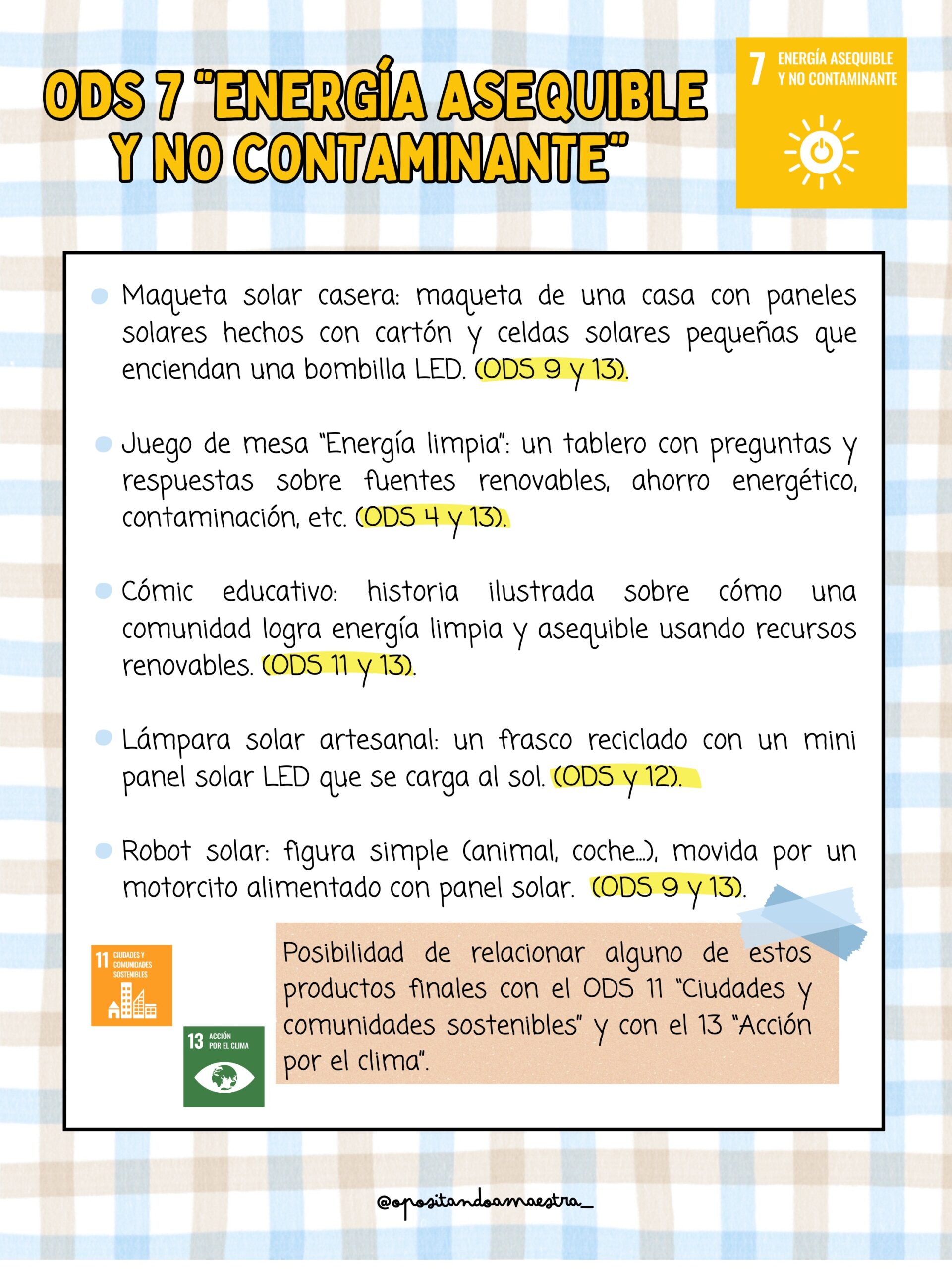 Ideas de PRODUCTOS FINALES parte 2. ODS 7 al 12