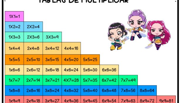 Guerreas K-POP TABLAS DE MULTIPLICAR SIMPLIFICADA 4
