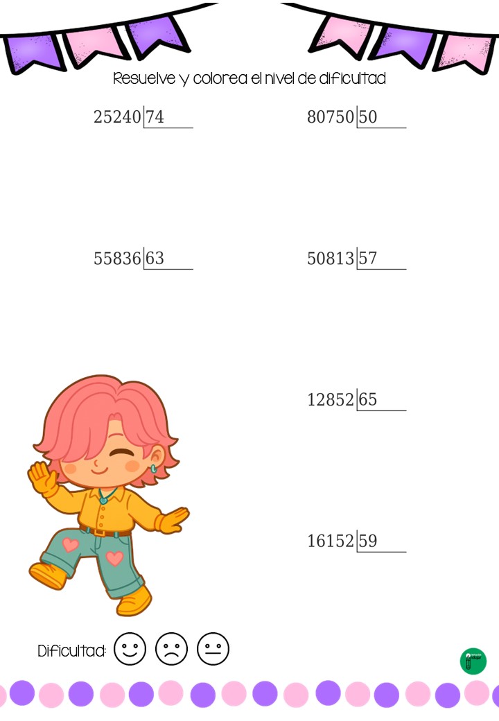 ¿Quieres que tus alumnos practiquen las divisiones de una manera más motivadora y dinámica? Hoy compartimos una colección de fichas imprimibles para trabajar divisiones de distintos niveles de dificultad… ¡acompañados por las Guerreras K-pop y los Saja Boys!