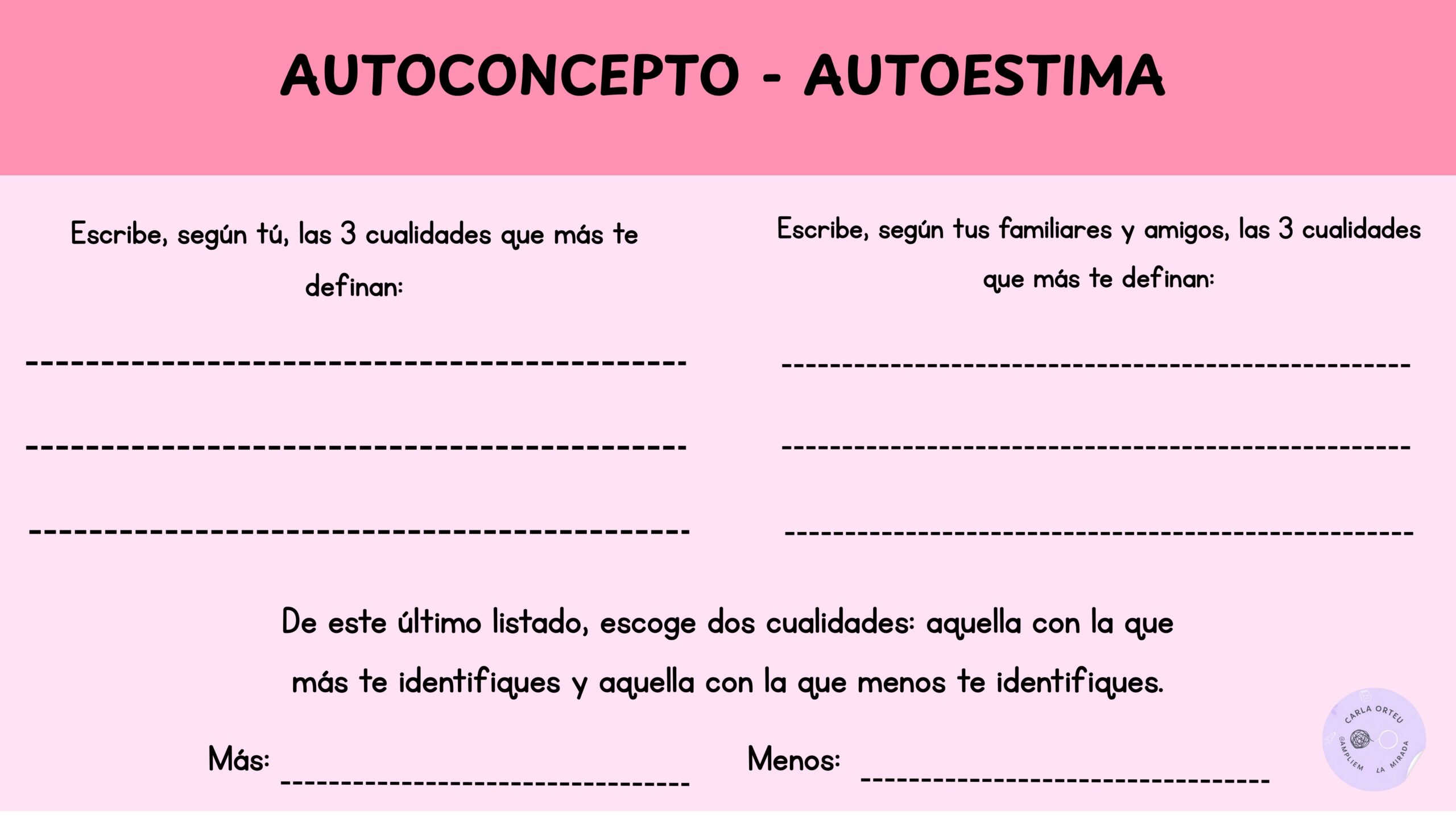 El PDF contiene un conjunto muy completo de recursos para trabajar autoestima y autoconcepto: