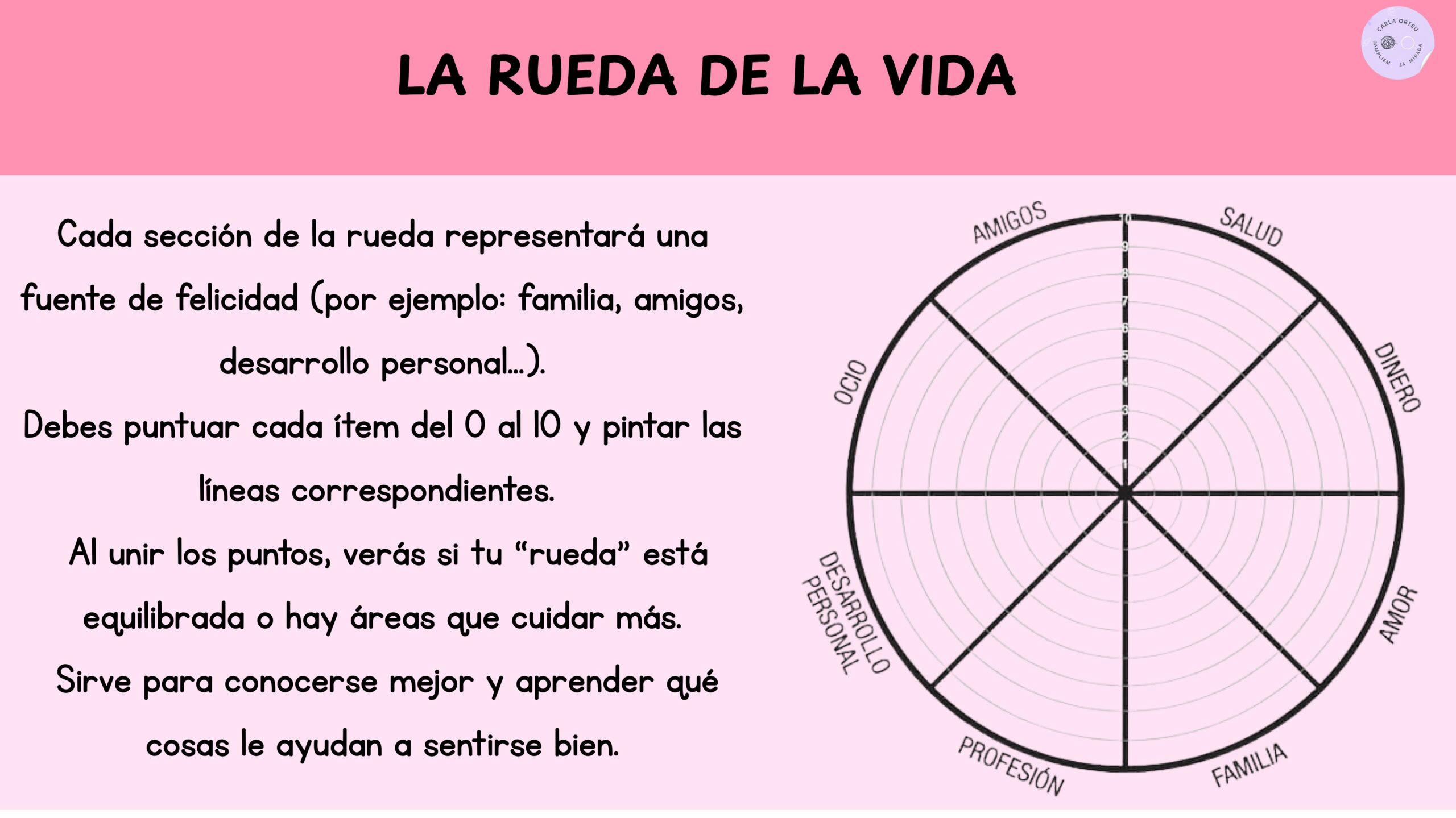 “La rueda de la vida” para valorar diferentes áreas personales.
