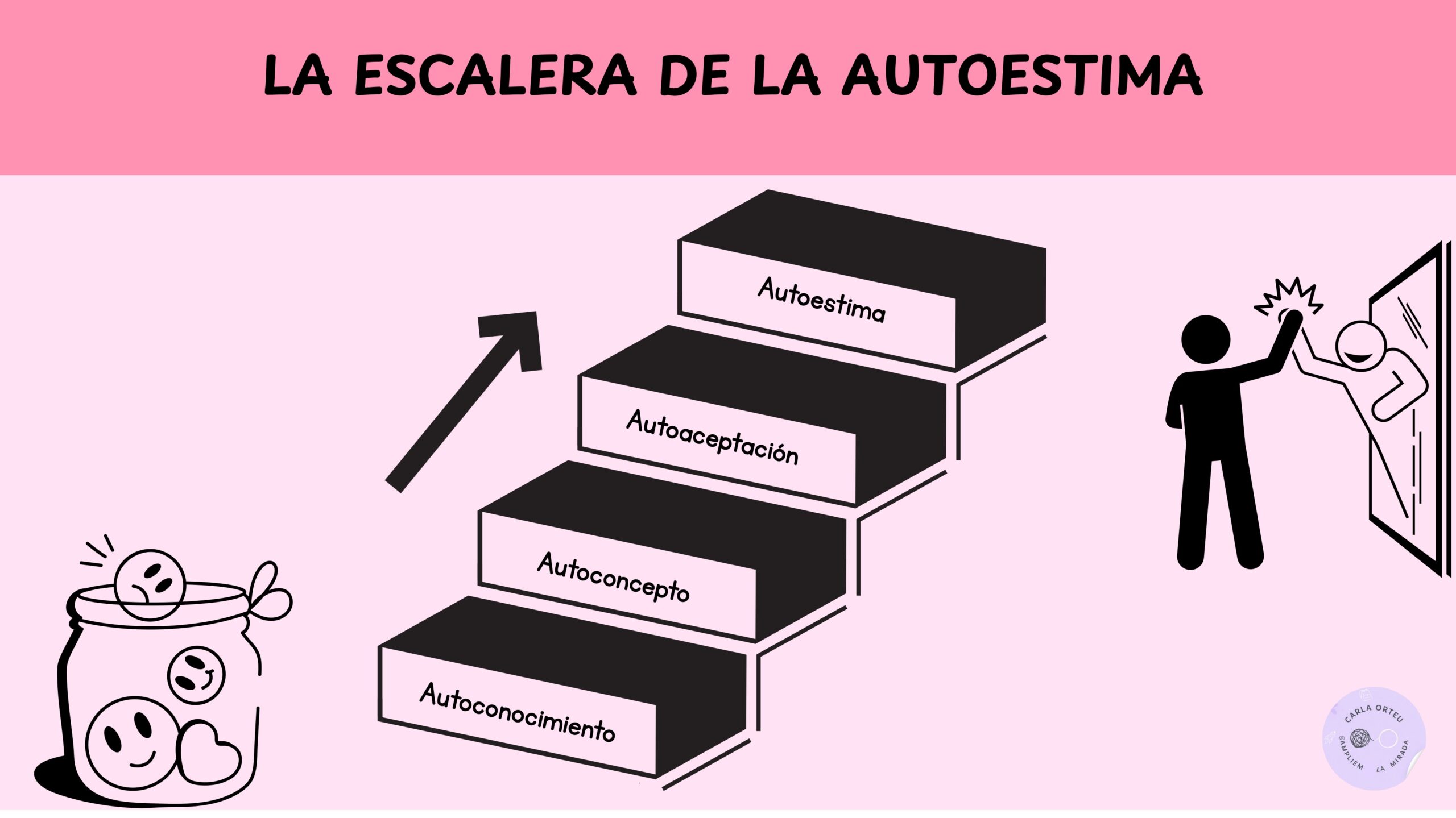 La Escalera de la Autoestima: autoconocimiento, autoconcepto, autoaceptación y autoestima.