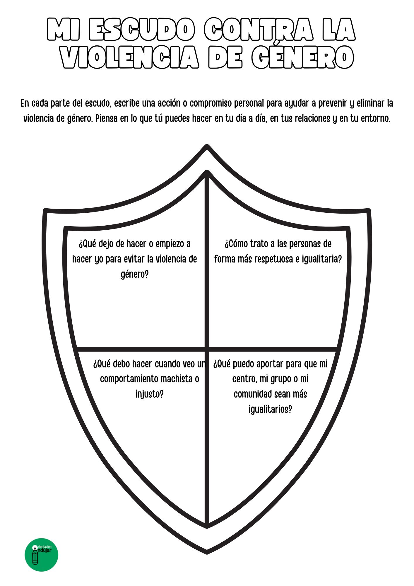 Por eso hemos creado la actividad «Mi escudo contra la violencia de género», una propuesta dinámica y visual que invita al alumnado a reflexionar sobre qué acciones pueden llevar a cabo, de forma personal y colectiva, para prevenir la violencia de género en su vida cotidiana.