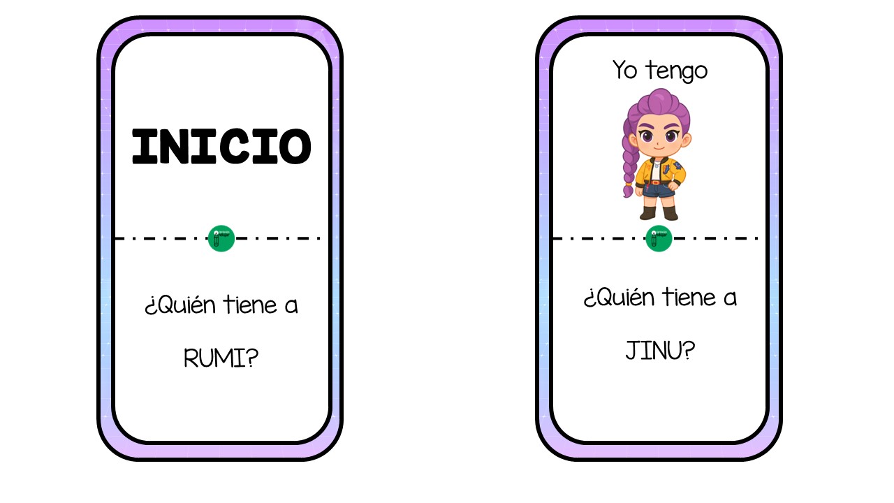 Aprender jugando es una de las formas más efectivas de involucrar a los alumnos en el aula, y para ello presentamos un recurso muy divertido: un juego de “Quién Tiene… Yo Tengo” protagonizado por las guerreras K-POP y los Saja Boys.