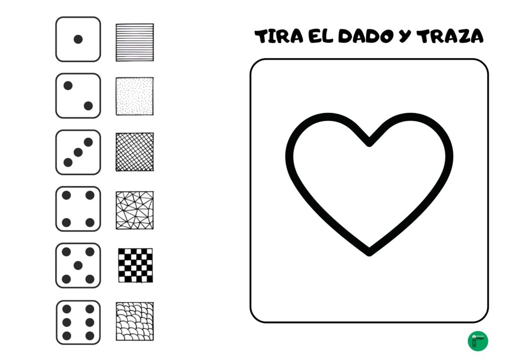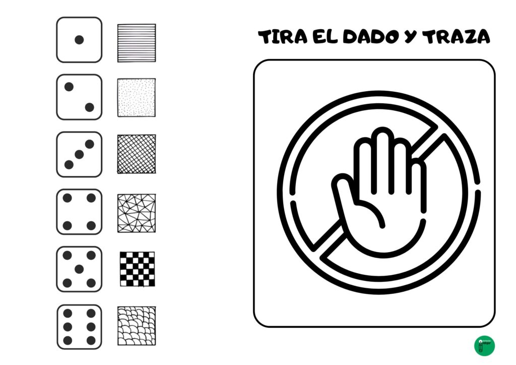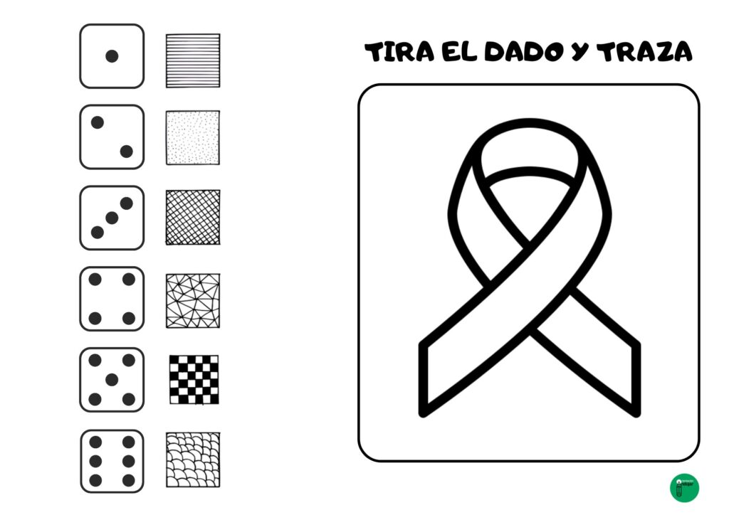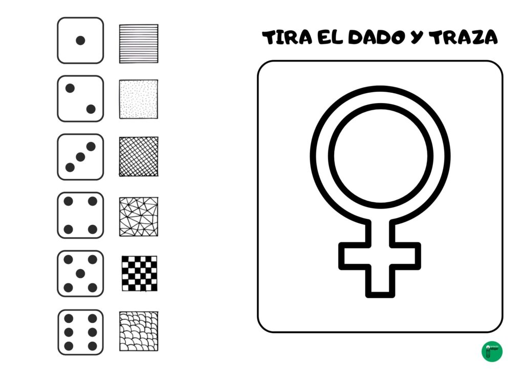 Con motivo del Día Internacional contra la Violencia de Género, proponemos una actividad de grafismo creativo pensada para trabajar la expresión artística de forma significativa y simbólica. La dinámica consiste en lanzar un dado y completar el dibujo utilizando el trazo que corresponda al número obtenido. Cada plantilla presenta un diseño relacionado con la temática que los alumnos deberán rellenar únicamente mediante patrones, líneas o texturas gráficas.