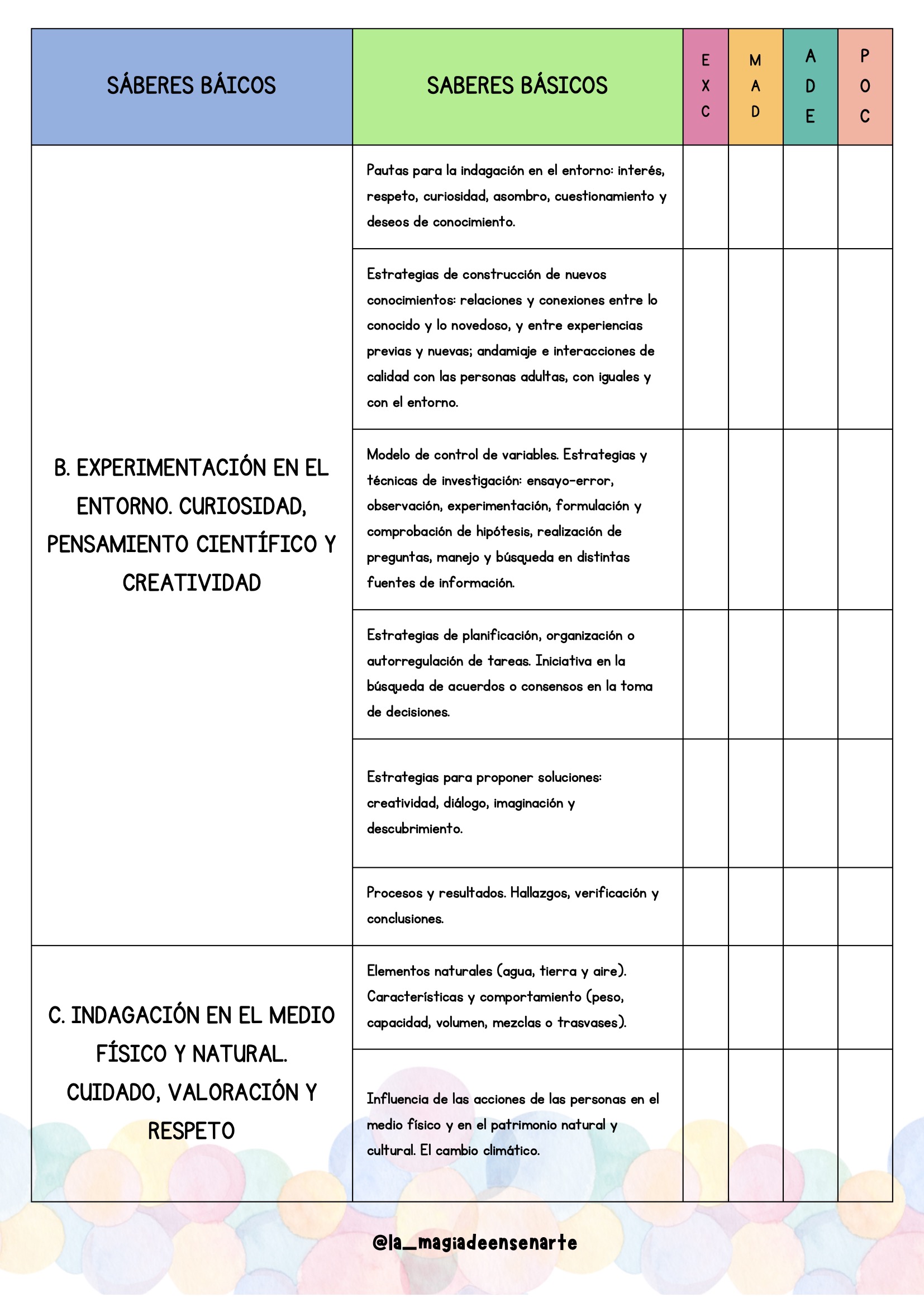 Incluye tablas editables y en blanco para que el docente registre evidencias, marque avances y adapte la evaluación al grupo o al proyecto del aula.