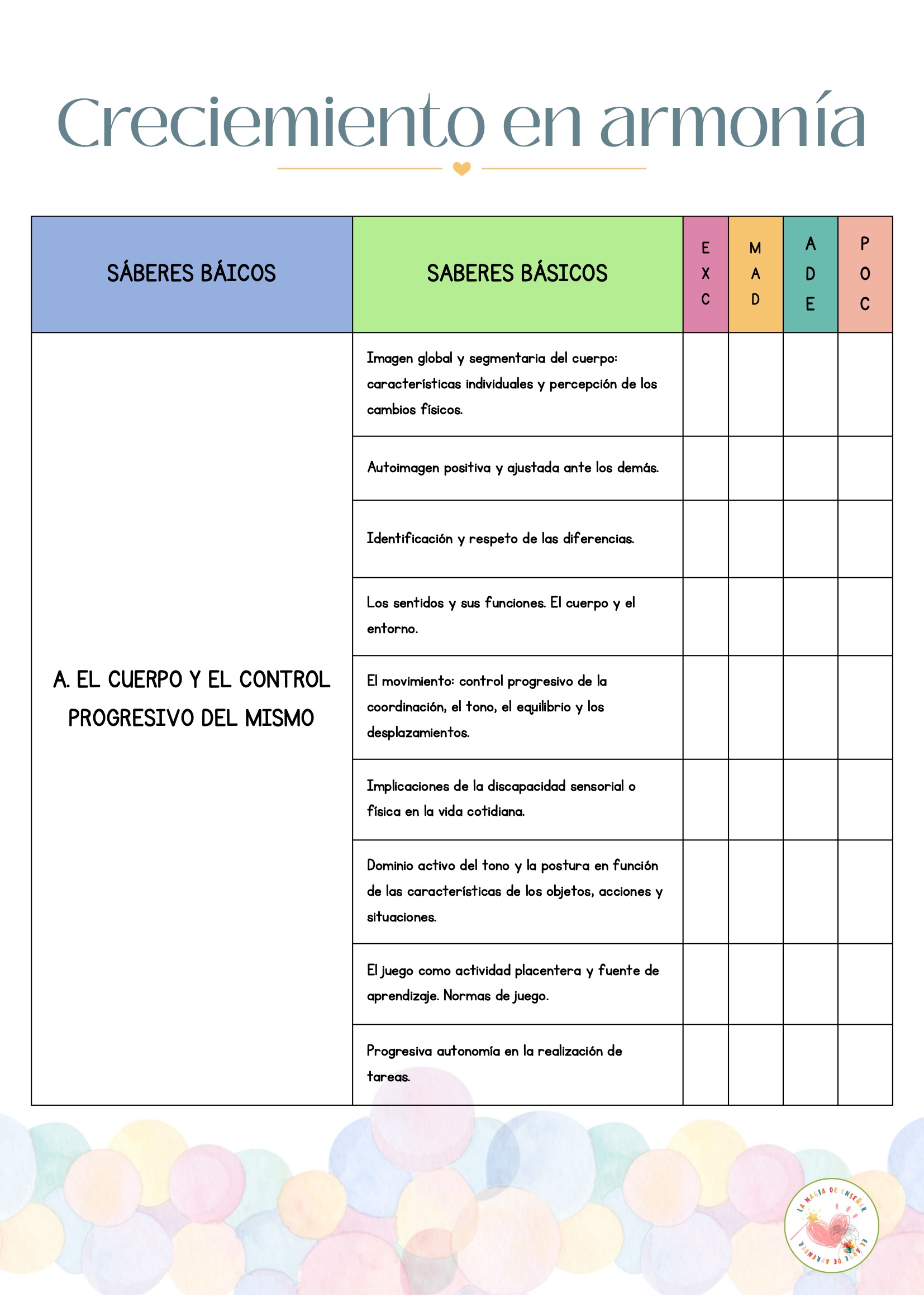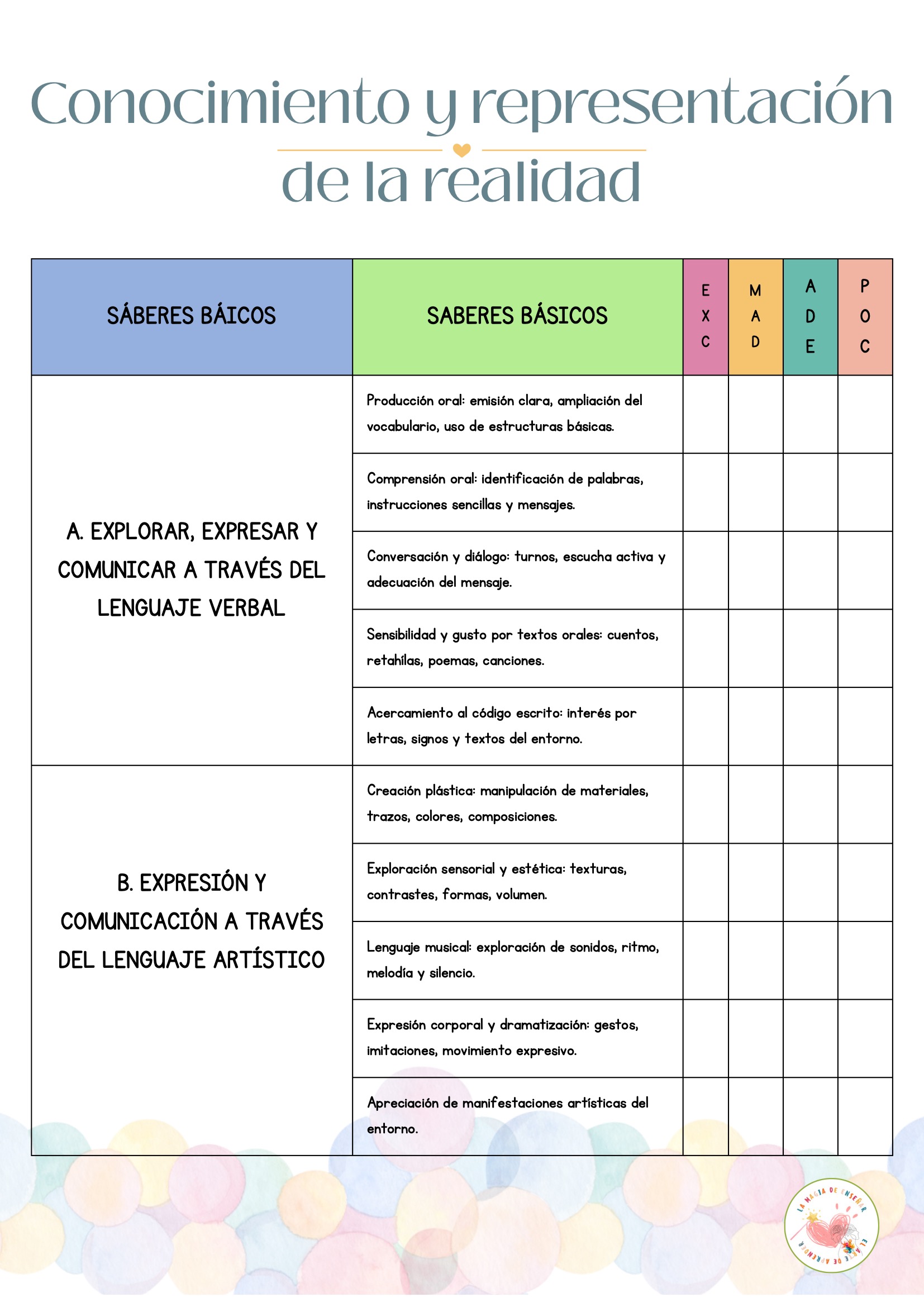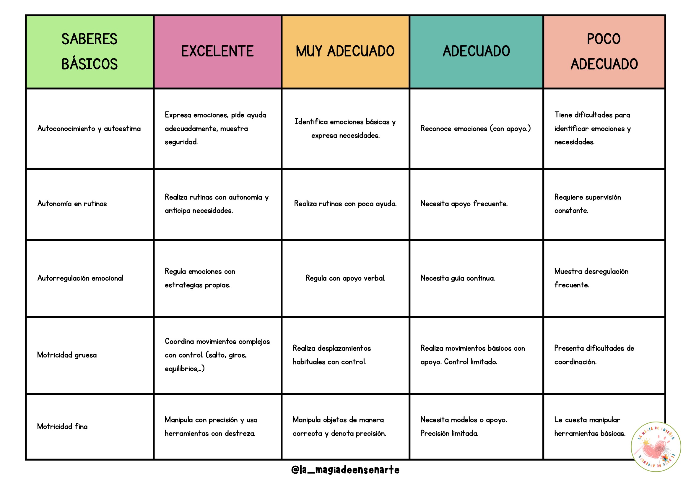 Estas rúbricas permiten observar el progreso de los niños y niñas de forma global, respetuosa y coherente con las necesidades de la etapa.