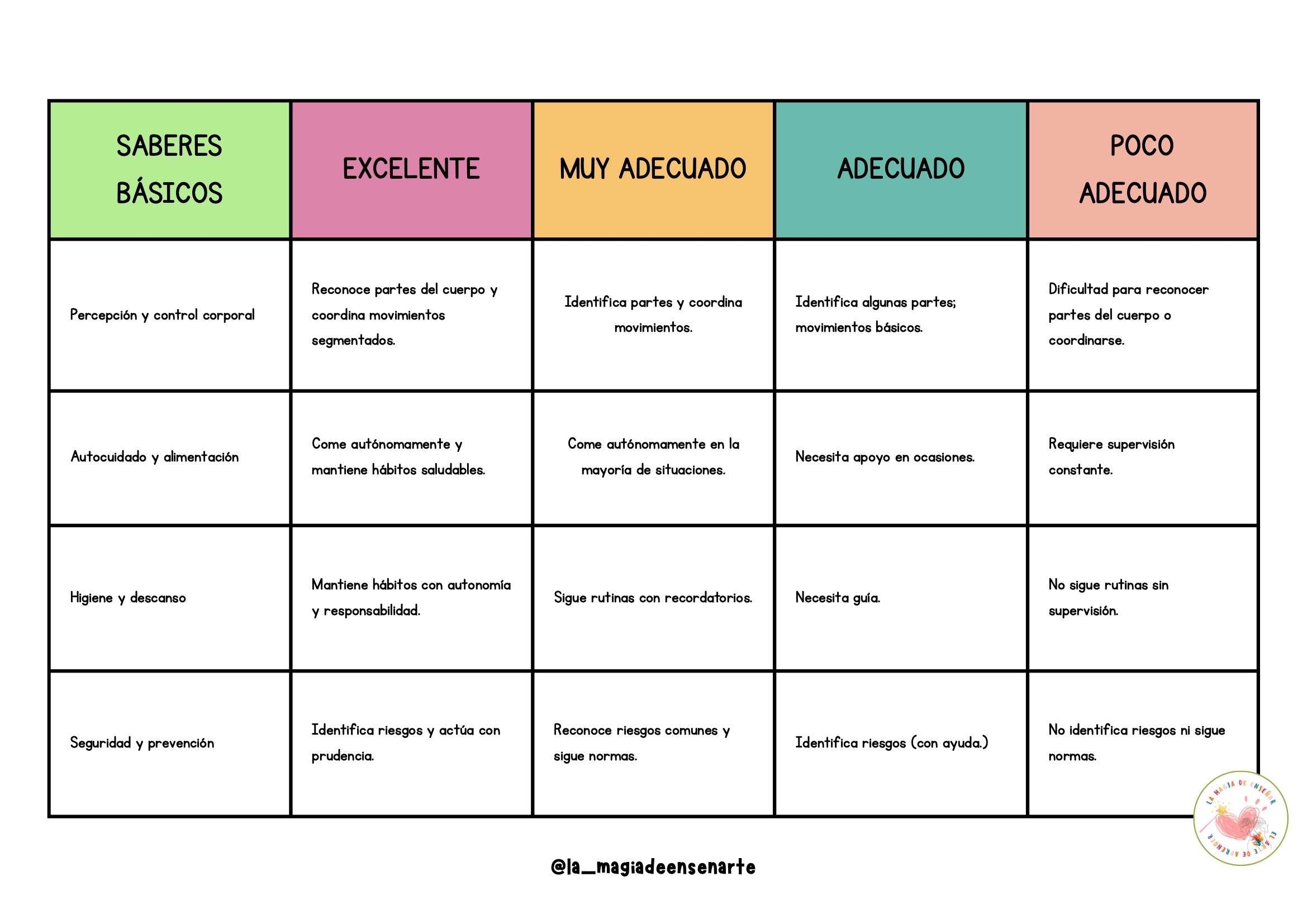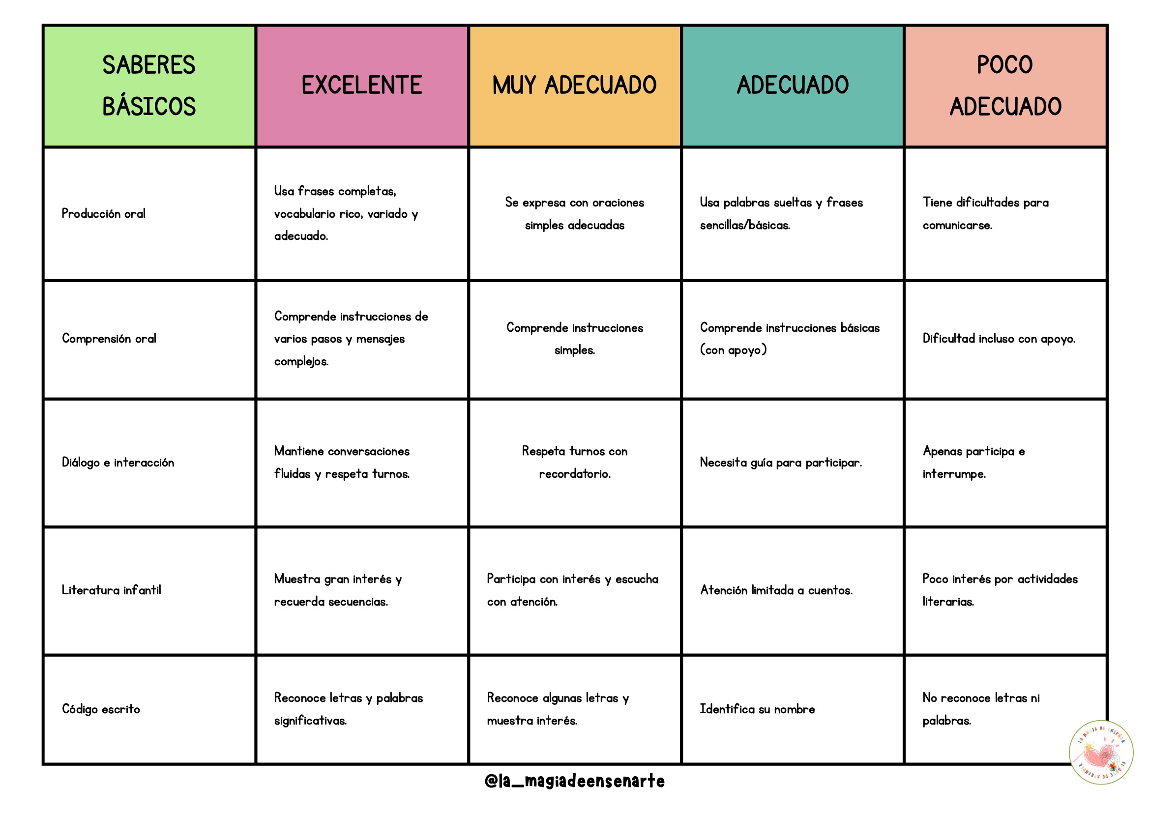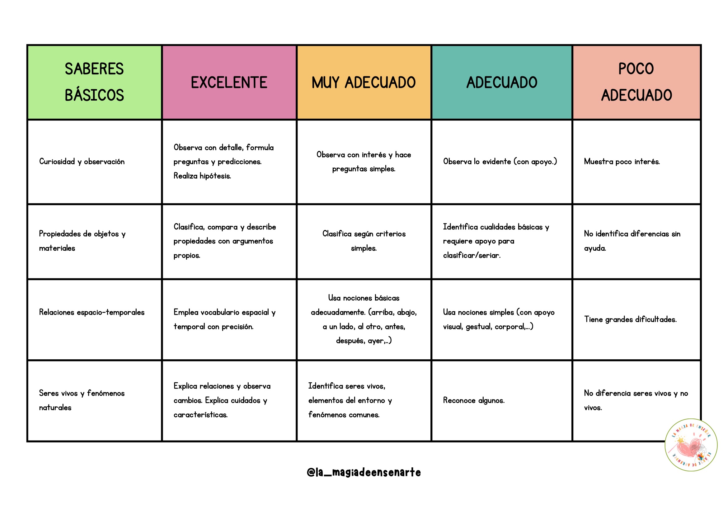 Estas rúbricas permiten observar el progreso de los niños y niñas de forma global, respetuosa y coherente con las necesidades de la etapa.