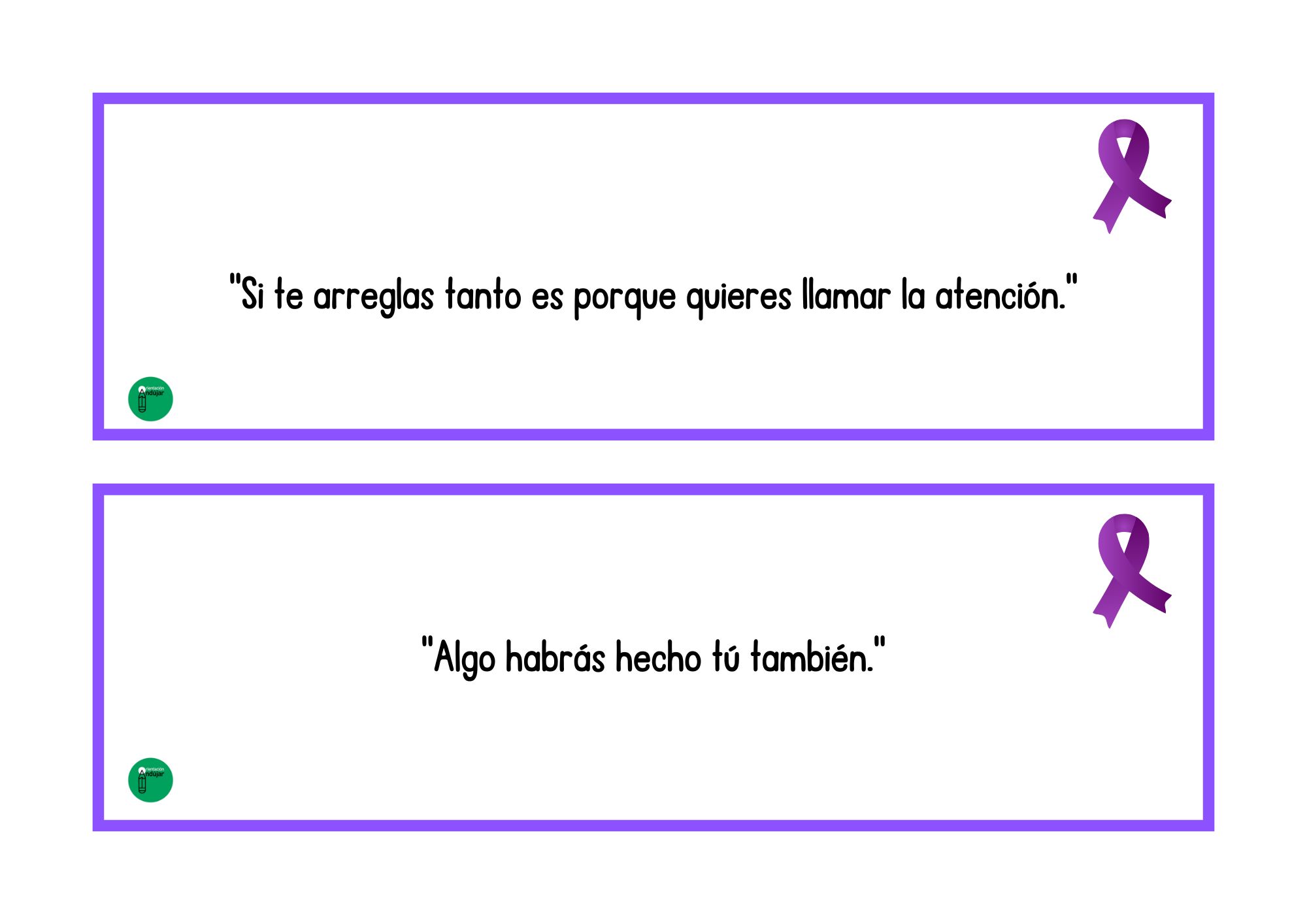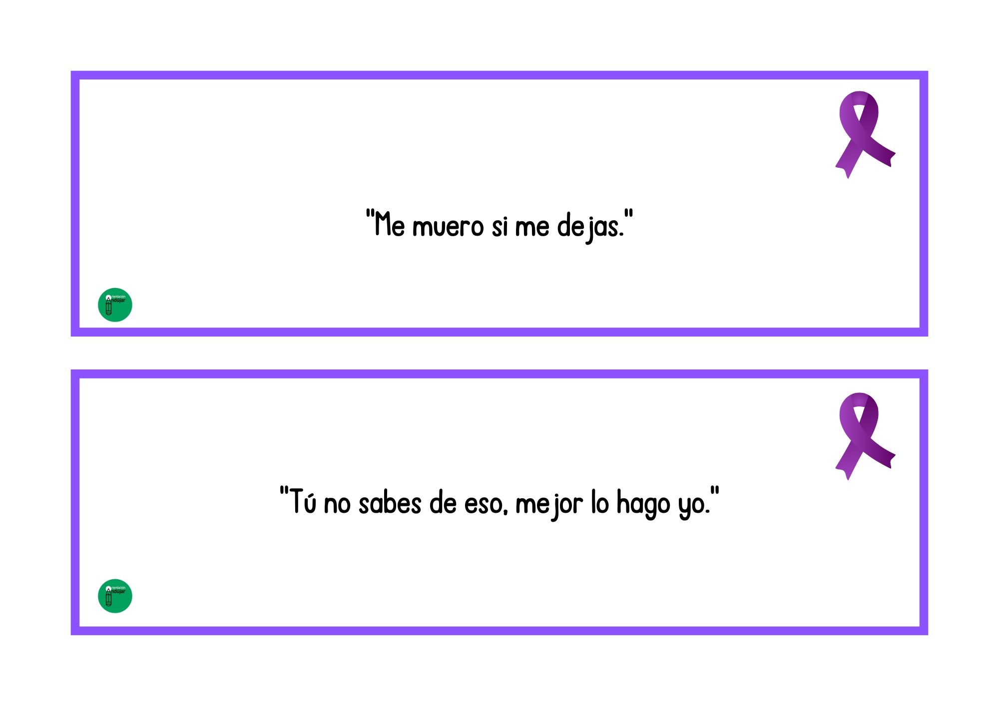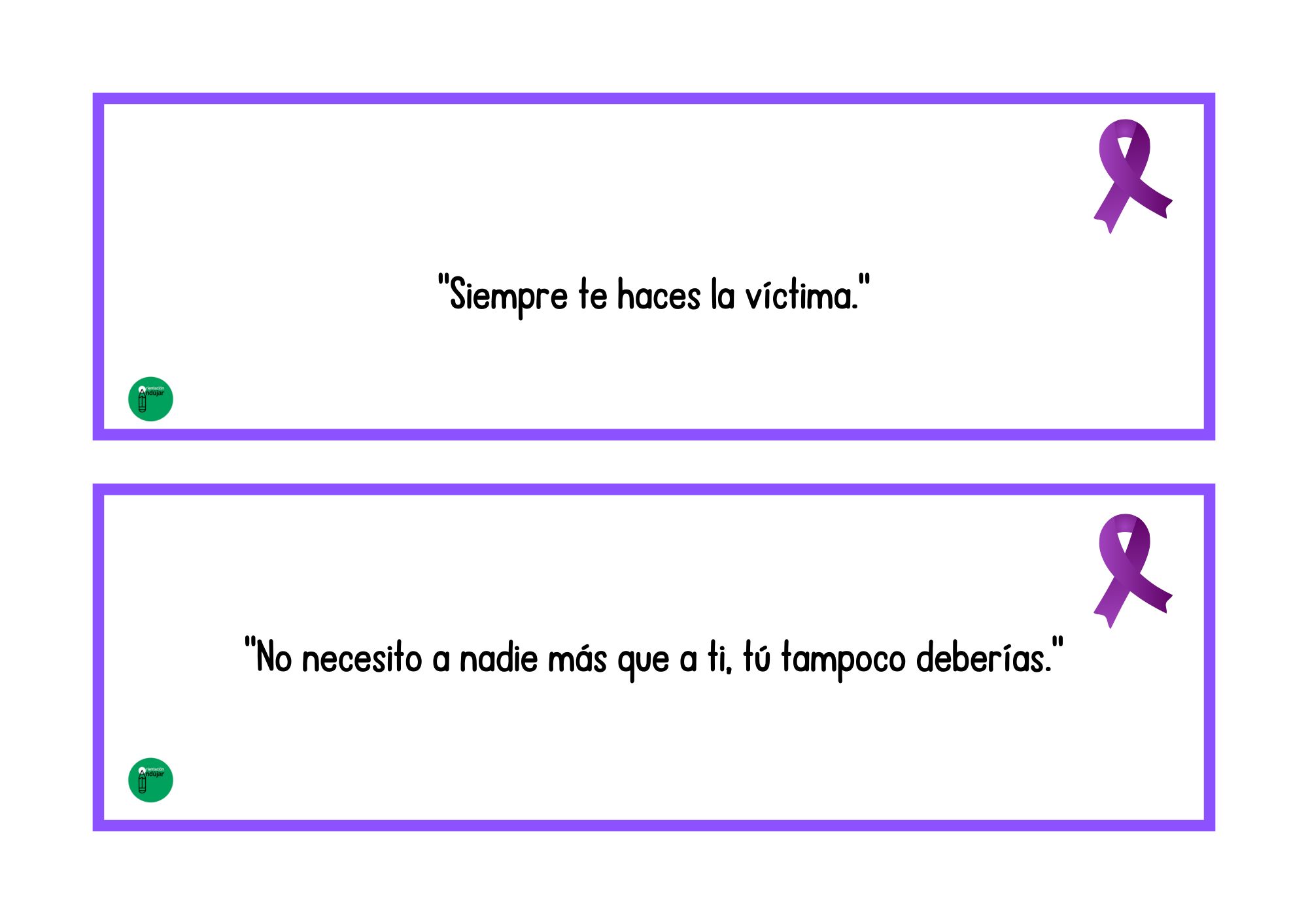 Reparte tarjetas con distintas frases y pide que las clasifiquen según el tipo de violencia que representan:-