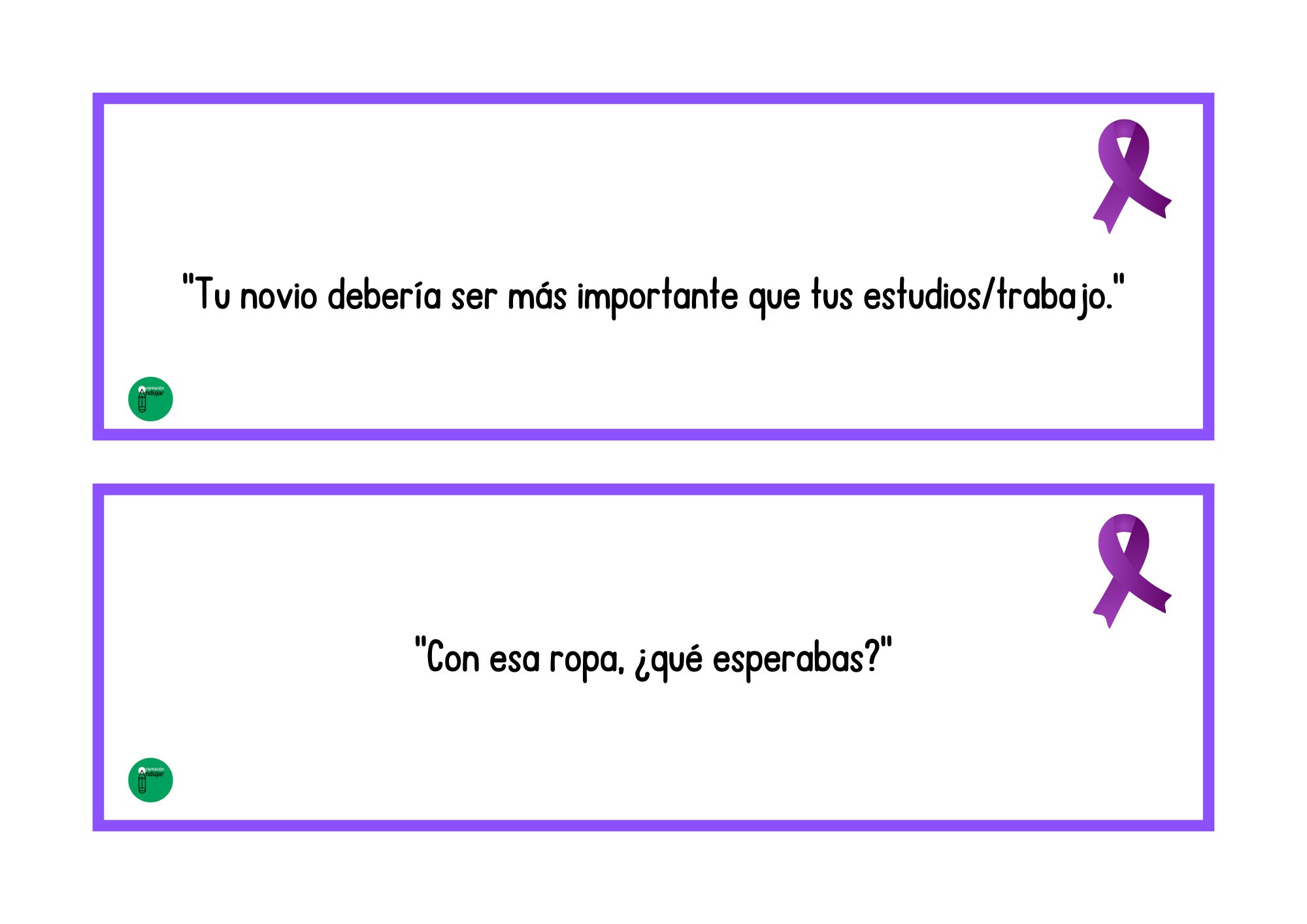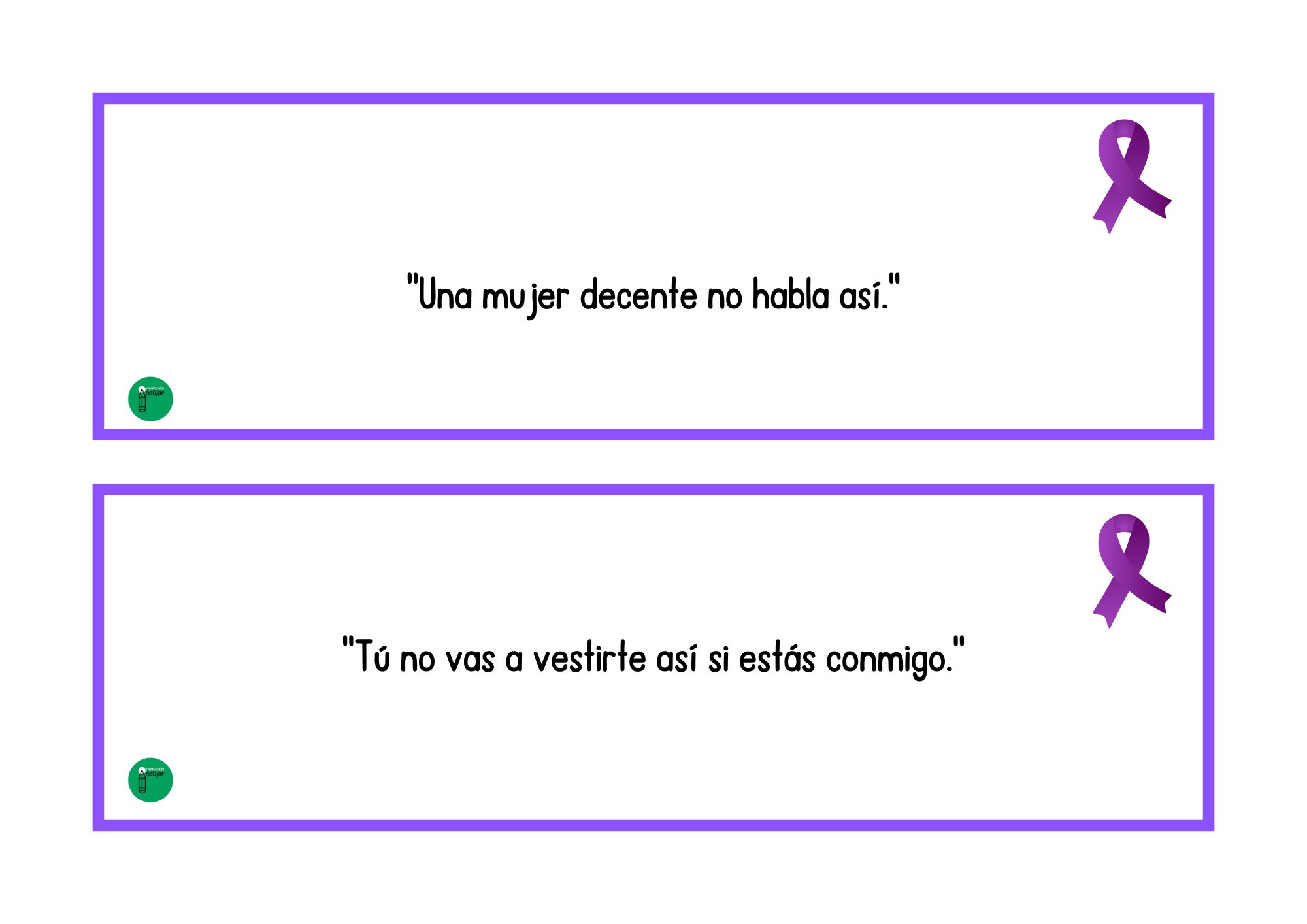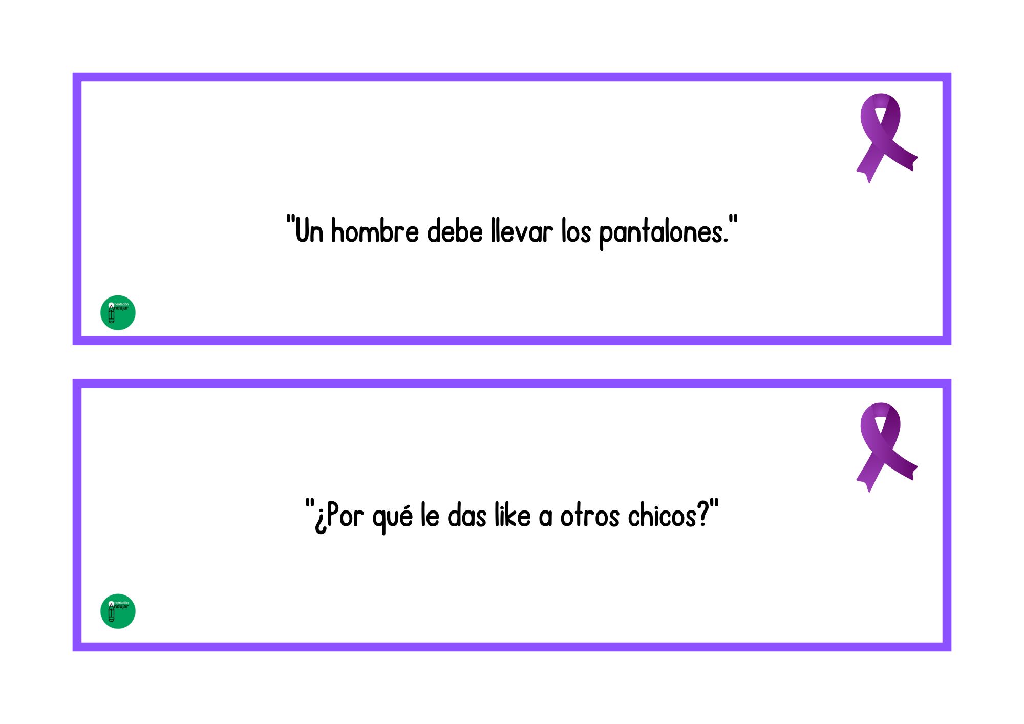 Reparte tarjetas con distintas frases y pide que las clasifiquen según el tipo de violencia que representan:-