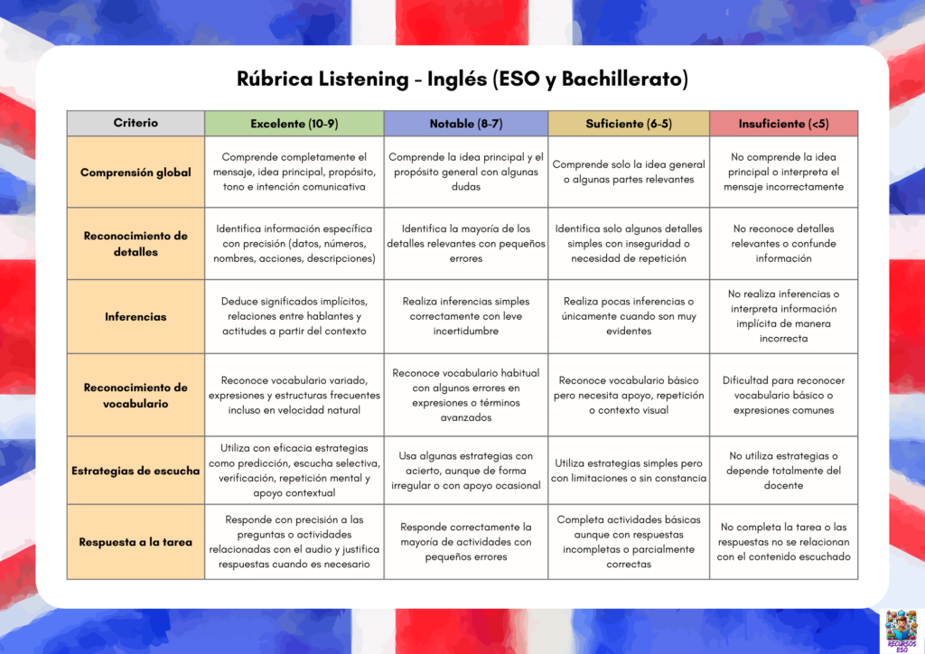 Presentamos una recopilación de rúbricas de evaluación para Inglés en ESO y Bachillerato, diseñadas para facilitar una valoración clara, objetiva y competencial de las destrezas comunicativas del alumnado.