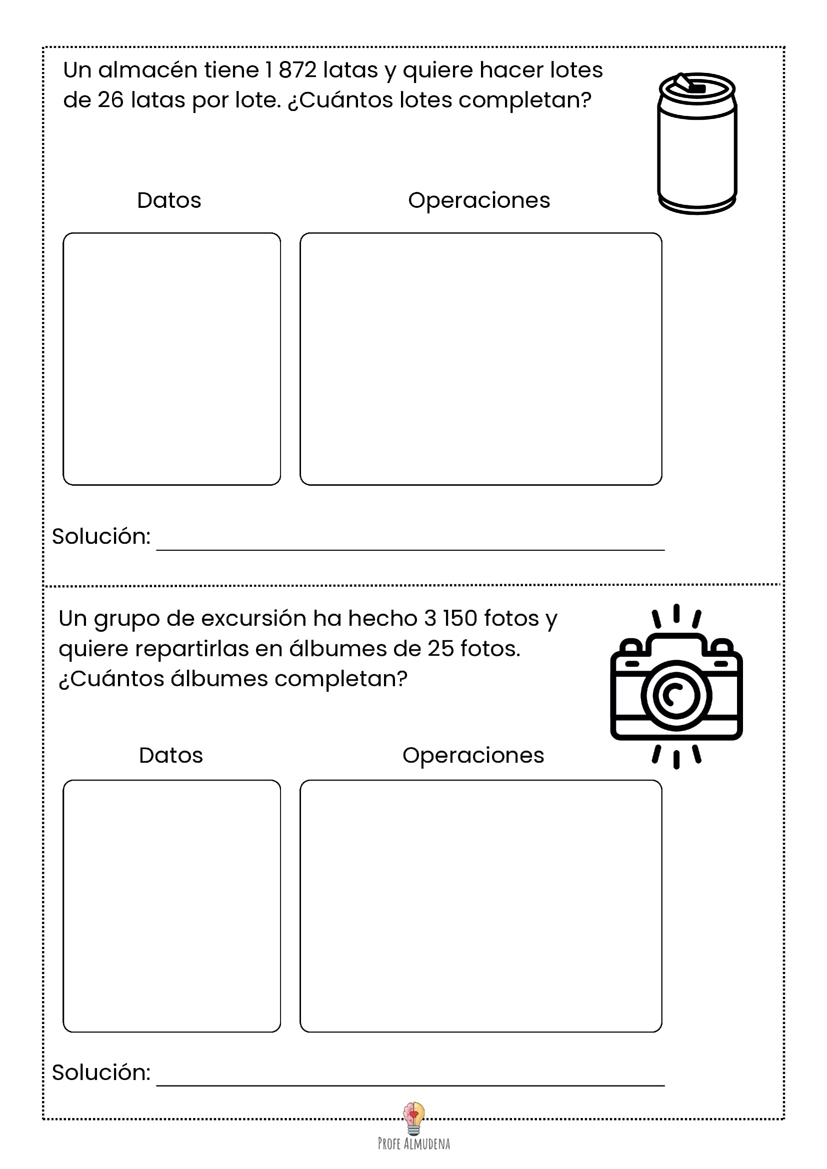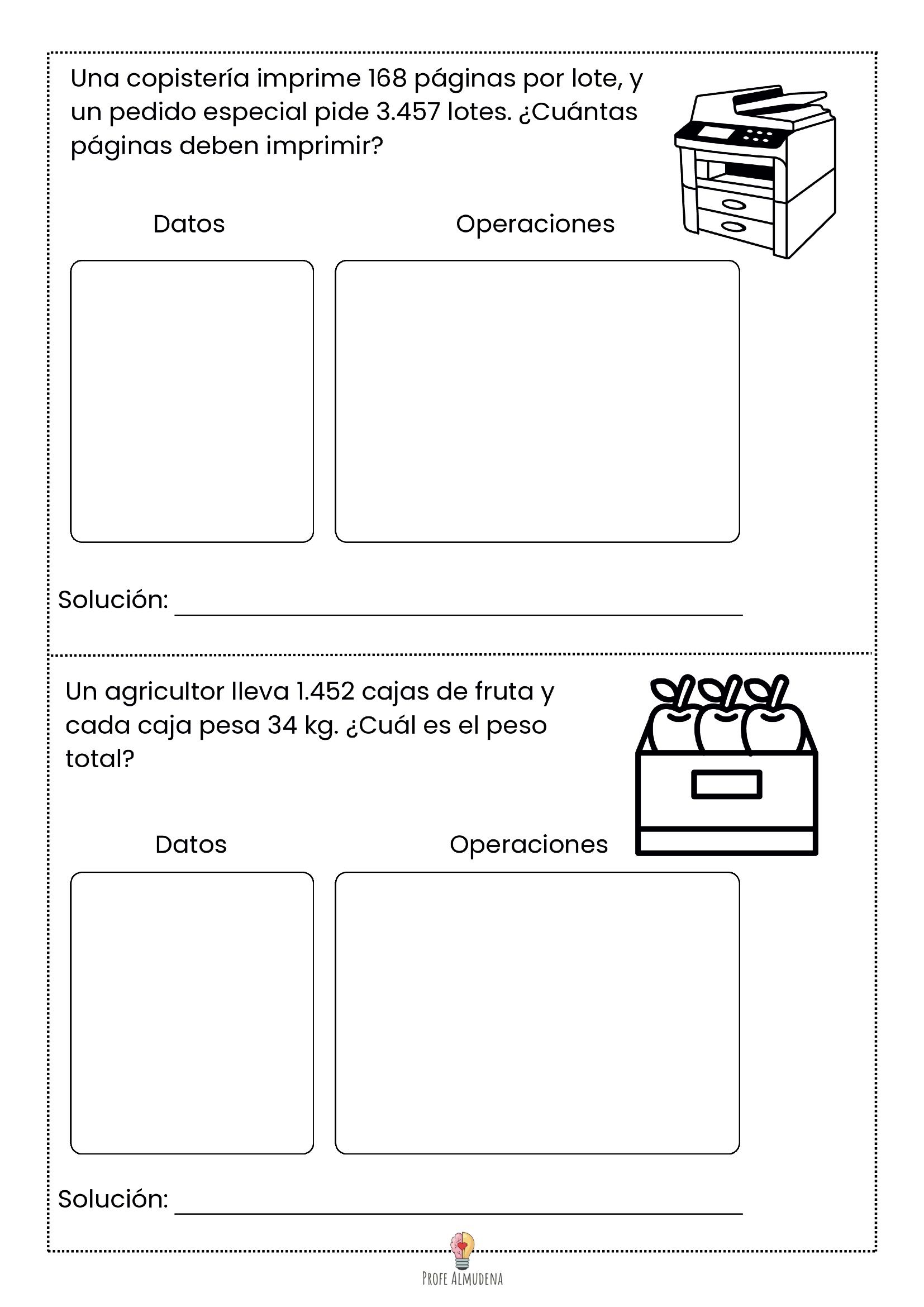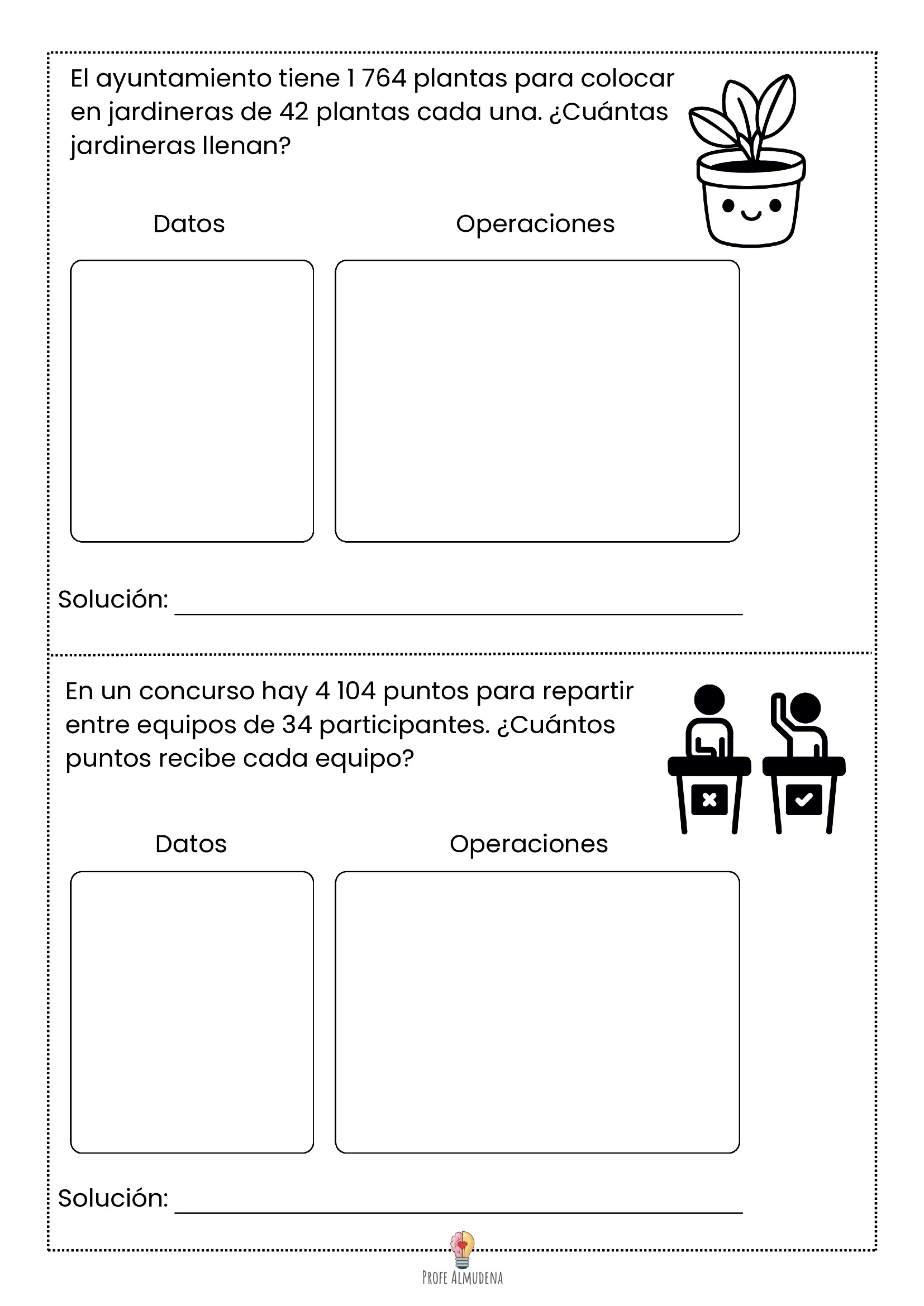 Hoy te comparto un recurso súper práctico para trabajar la resolución de problemas en 3.º y 4.º de Primaria: un cuadernillo completo con 120 problemas, todos ellos organizados con espacios para datos, operaciones y solución, lo que ayuda al alumnado a estructurar el pensamiento matemático de forma clara y guiada.