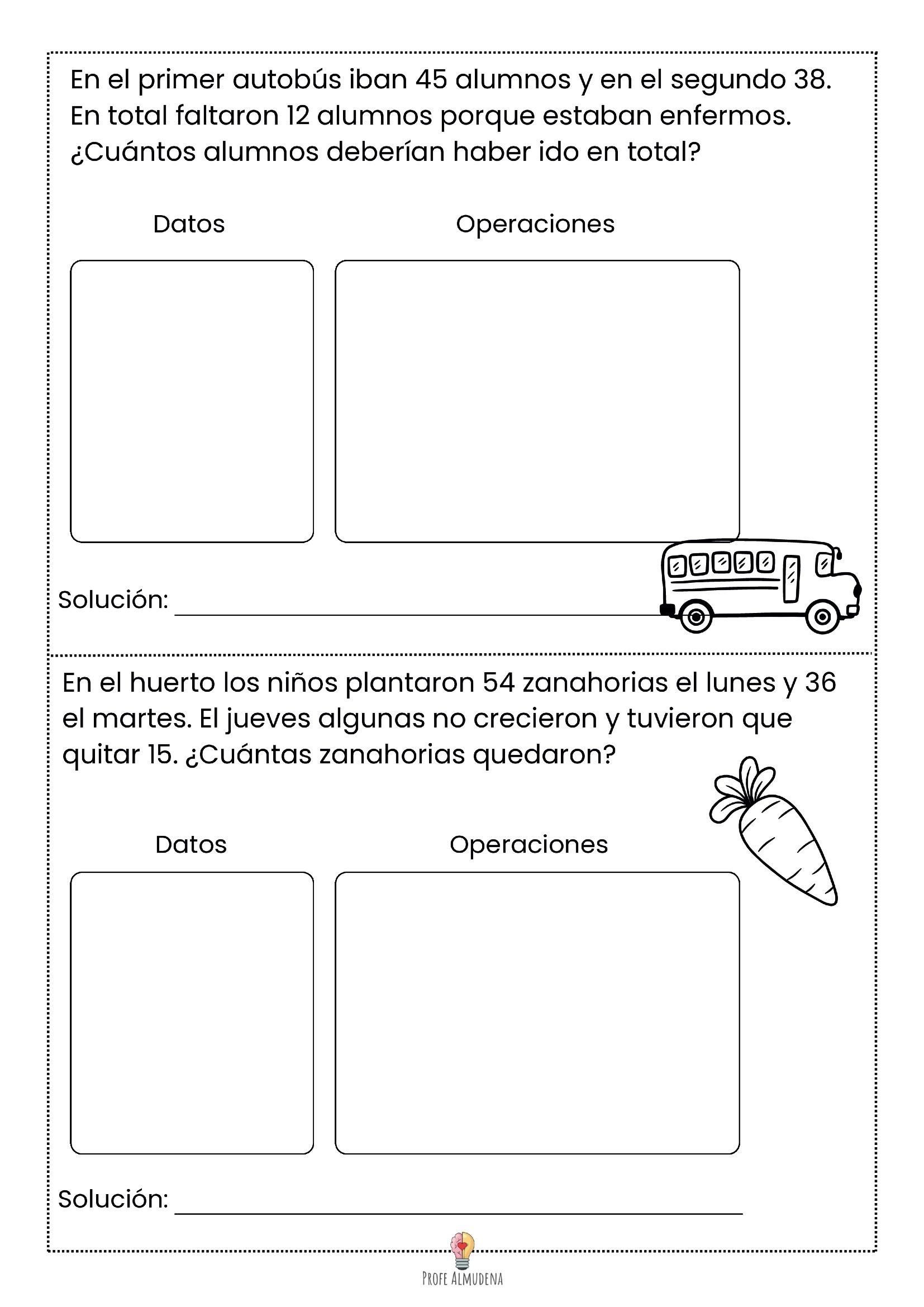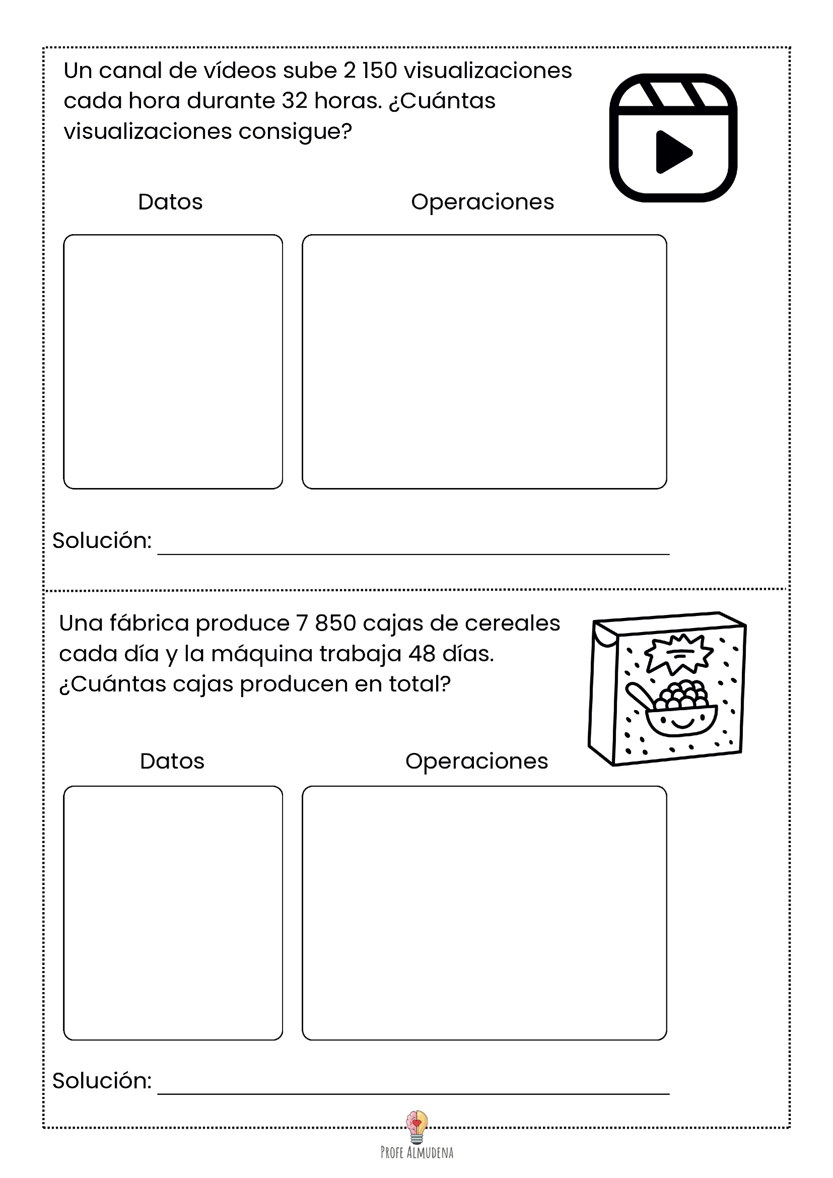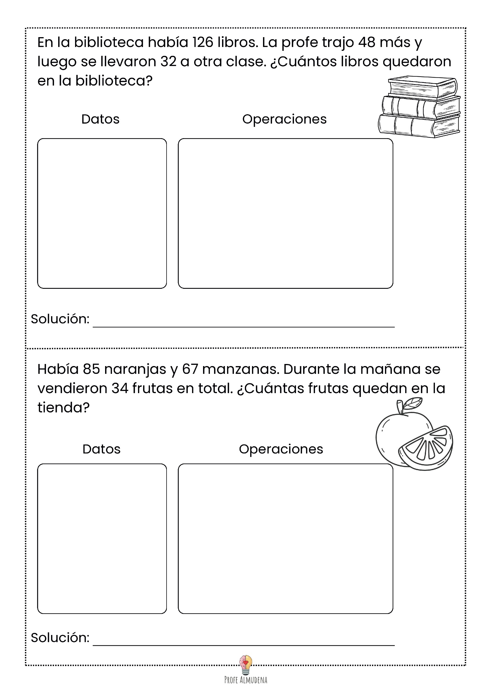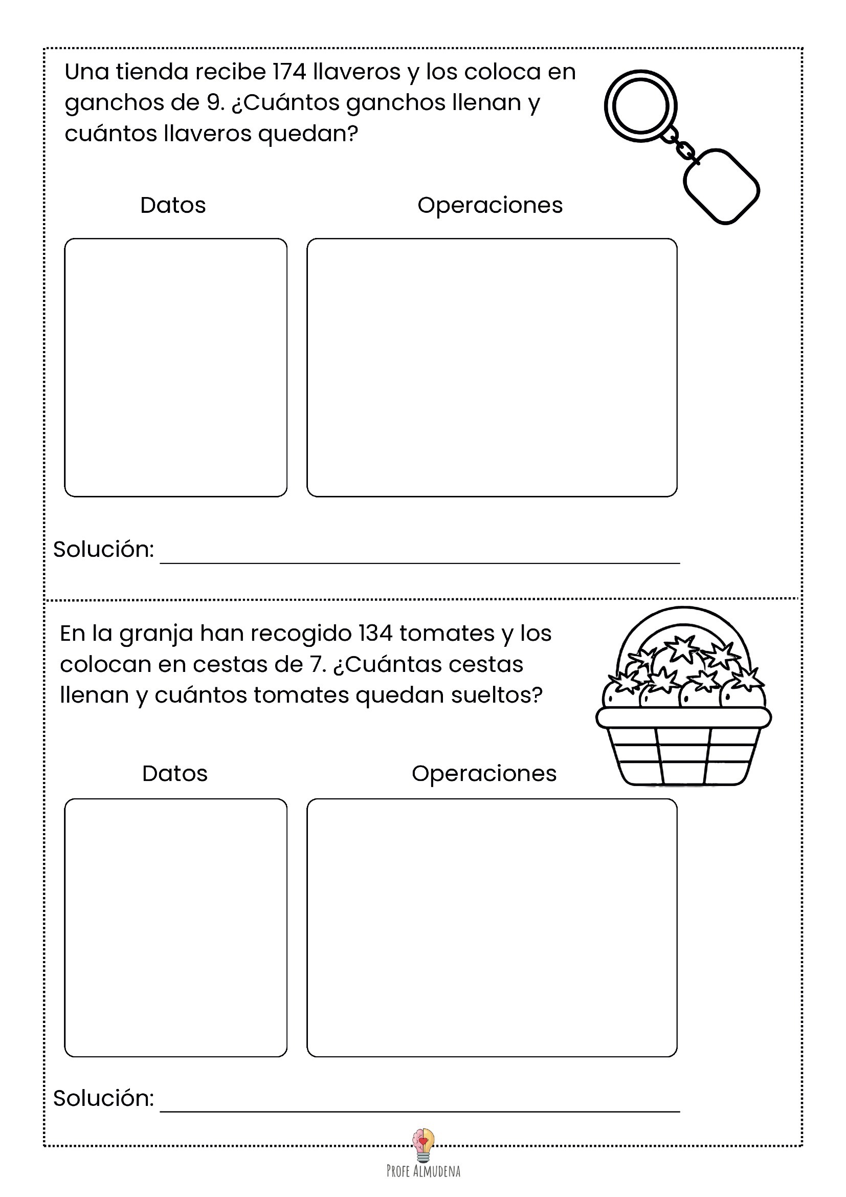 Hoy te comparto un recurso súper práctico para trabajar la resolución de problemas en 3.º y 4.º de Primaria: un cuadernillo completo con 120 problemas, todos ellos organizados con espacios para datos, operaciones y solución, lo que ayuda al alumnado a estructurar el pensamiento matemático de forma clara y guiada.