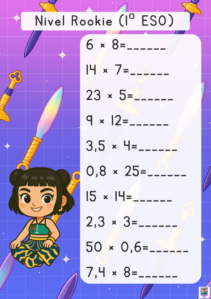 Fichas de Multiplicaciones para 1º y 2º de ESO