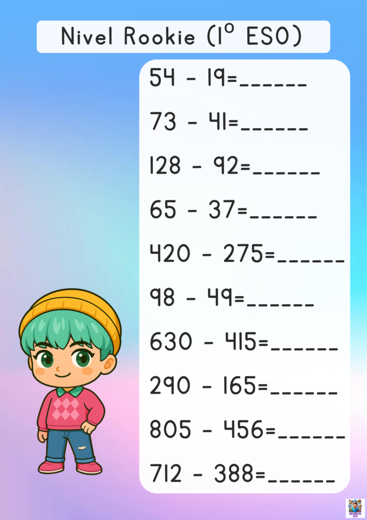 Cada ficha combina ejercicios matemáticos progresivos con elementos visuales, narrativa y estética inspirada en K-POP y aventuras fantásticas, manteniendo la calidad pedagógica necesaria para reforzar los contenidos esenciales del currículo.