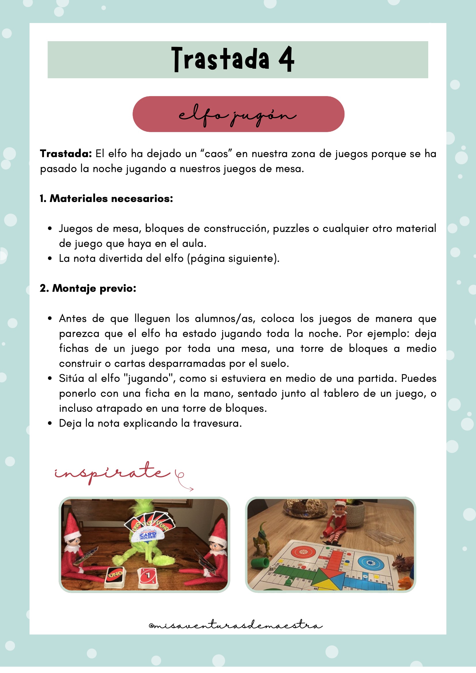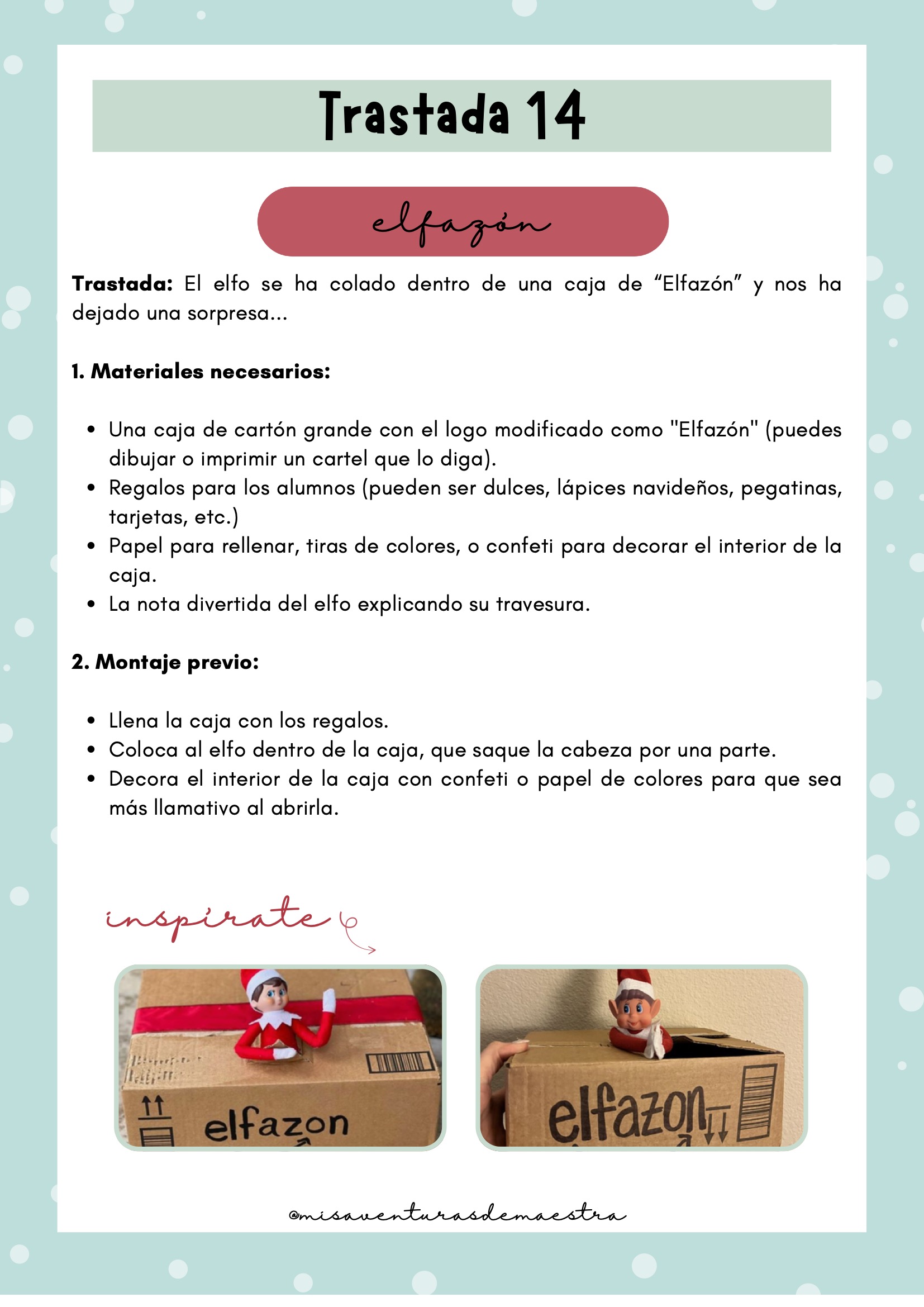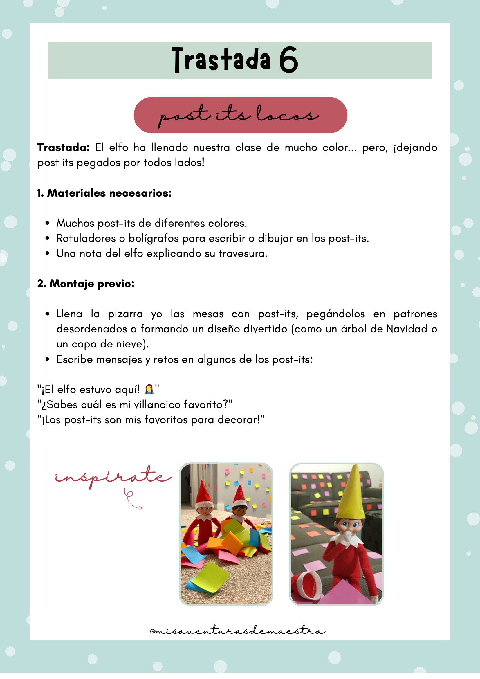 “Elfo jugón”, “cartero travieso”, “post-its locos” y más trastadas llenas de humor (pág. 14–20)