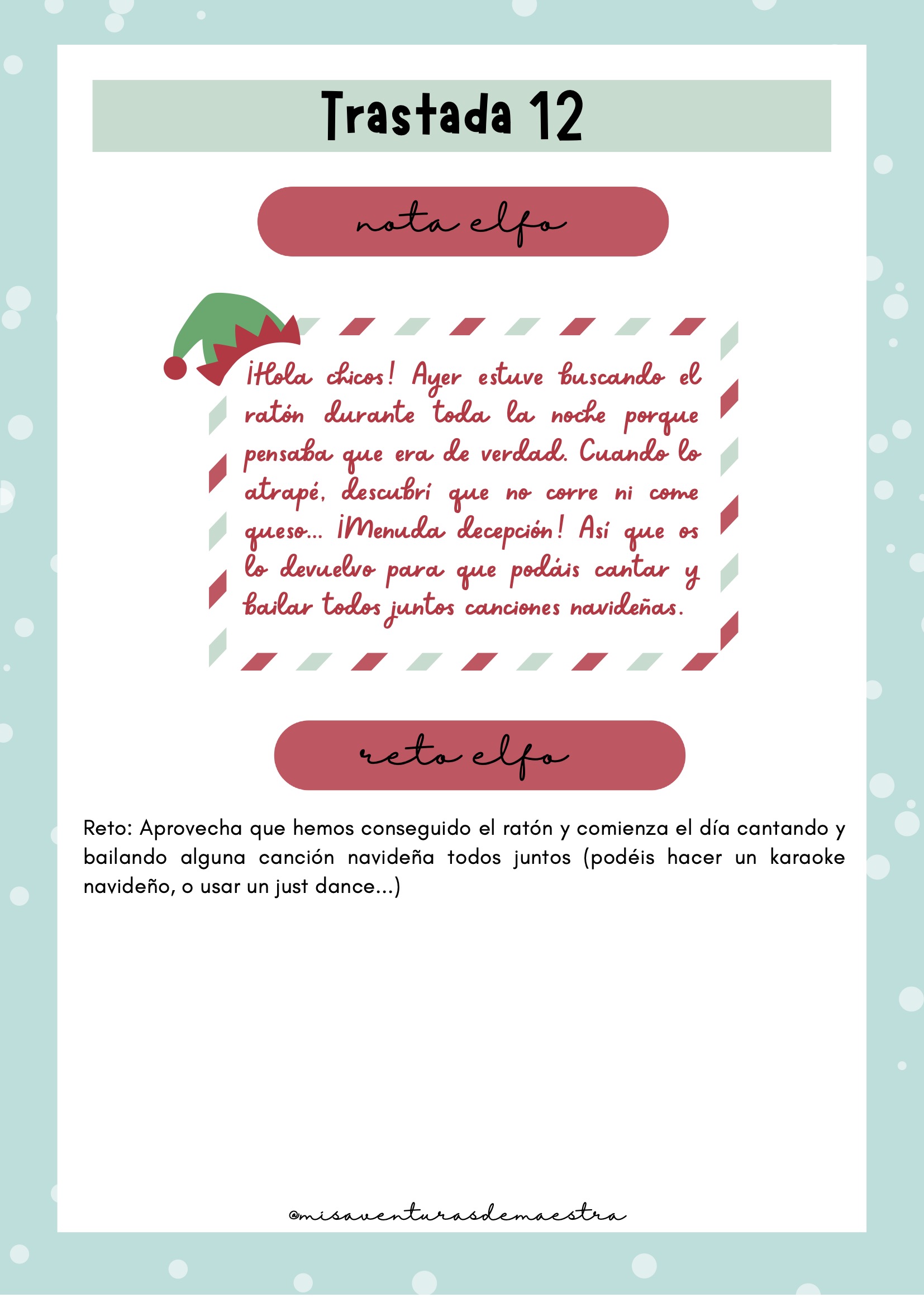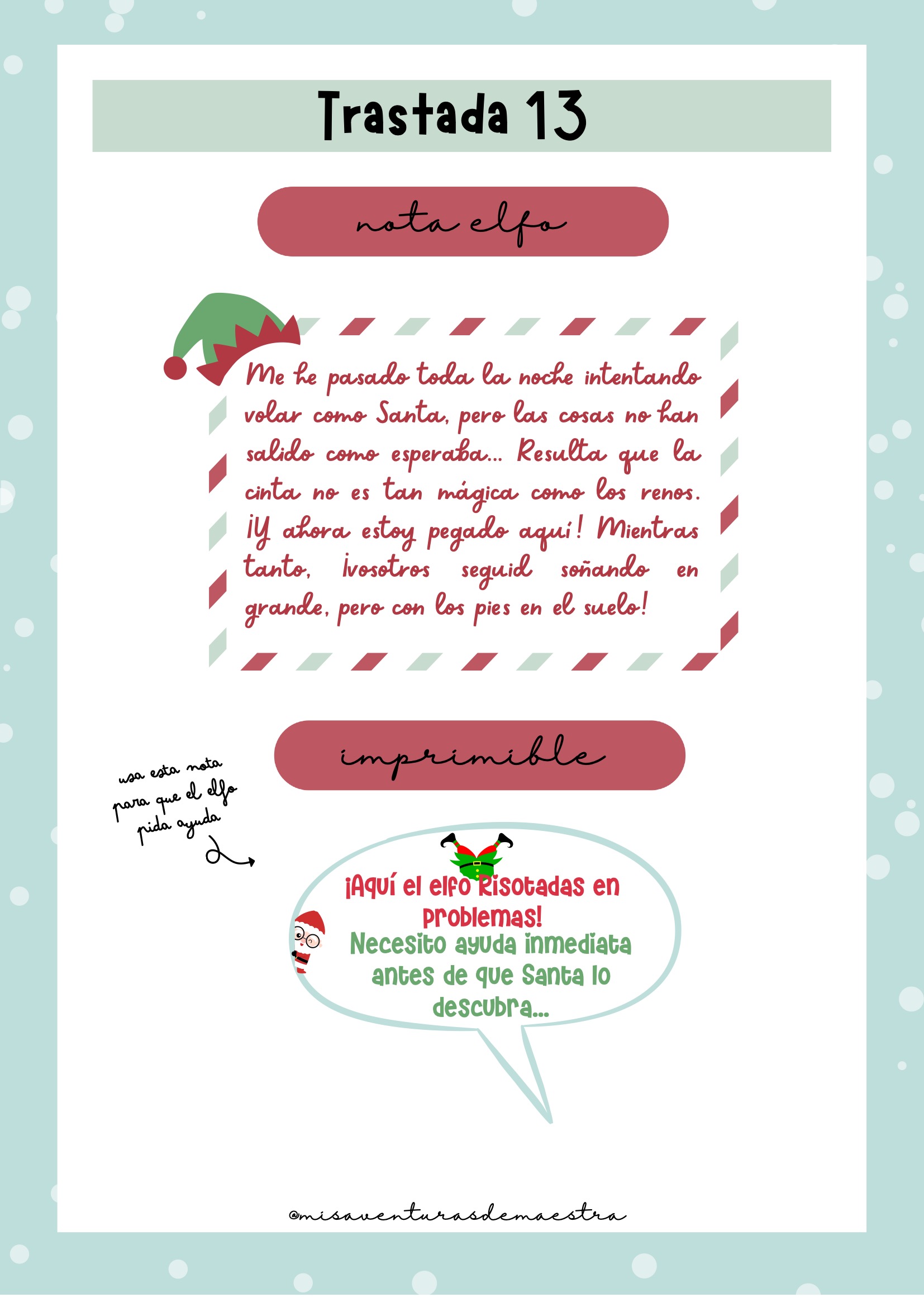 Notas del elfo listas para imprimir, que acompañan cada travesura.
