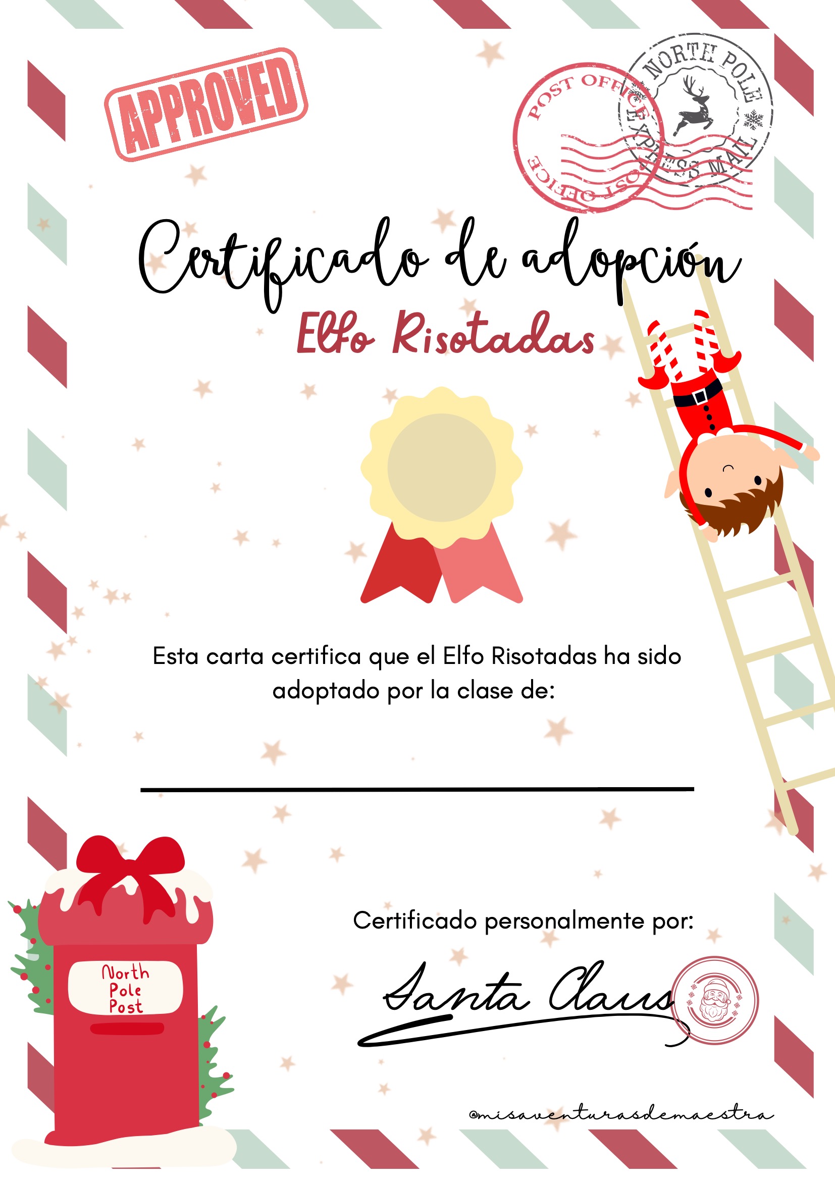 Certificado de adopción, personalizado y listo para entregar a la clase.