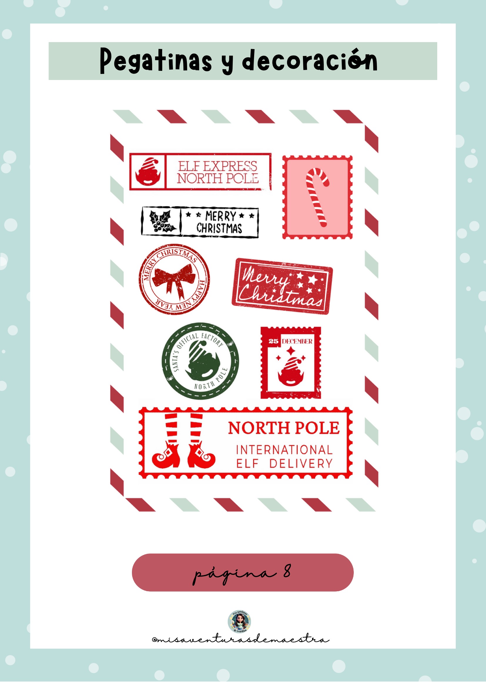 Pegatinas, sellos y decoración navideña para reforzar el ambiente mágico.
