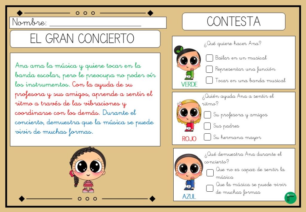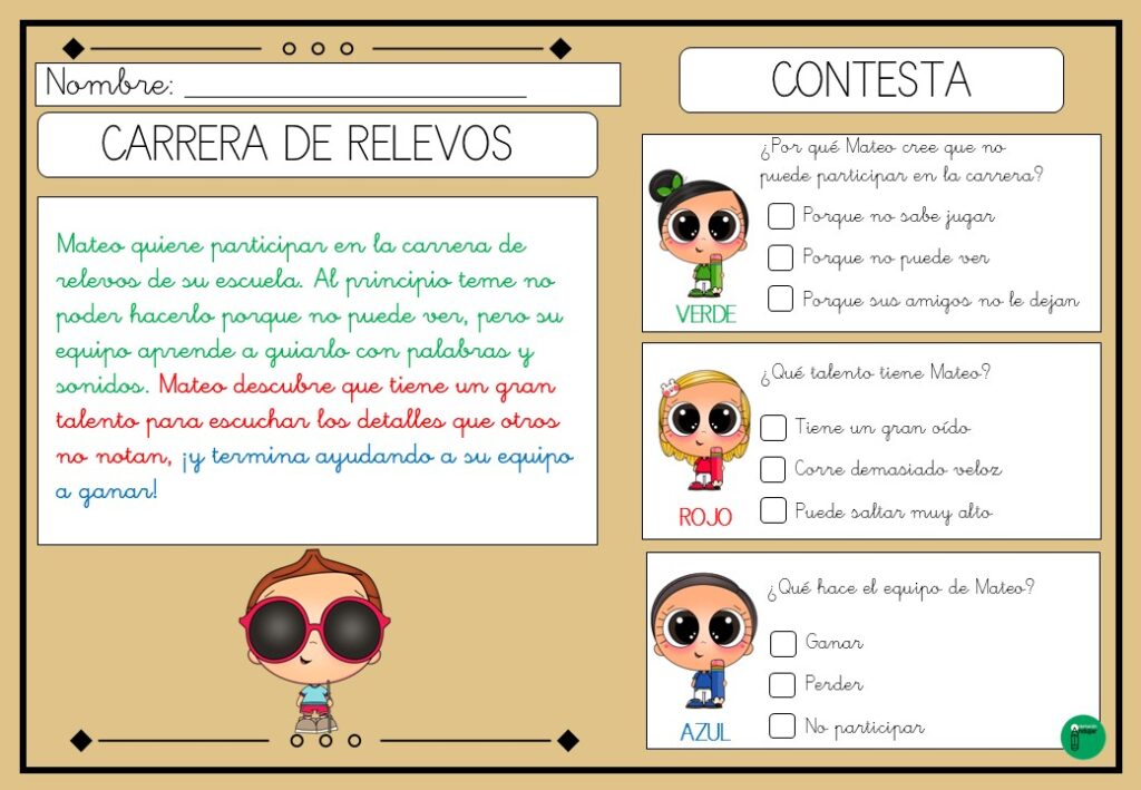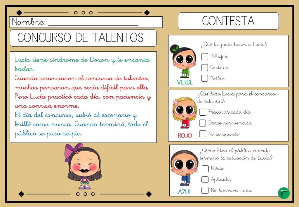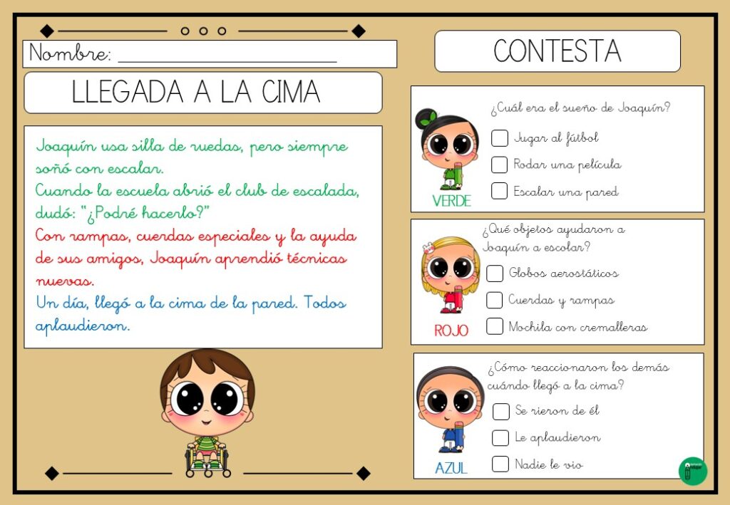 Cada lectura está diseñada con fragmentos de texto resaltados en diferentes colores. Estos colores no son meros adornos visuales, sino pistas clave que guían a los estudiantes en la identificación de información relevante. Al momento de responder preguntas de comprensión, los alumnos pueden utilizar los colores como referencia para localizar rápidamente las respuestas en el texto.