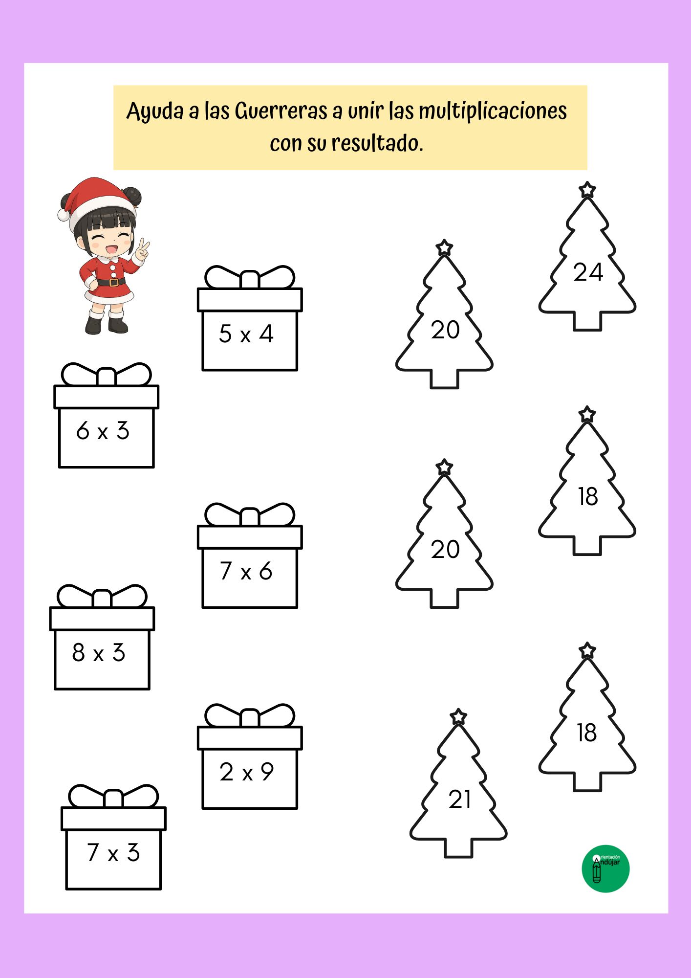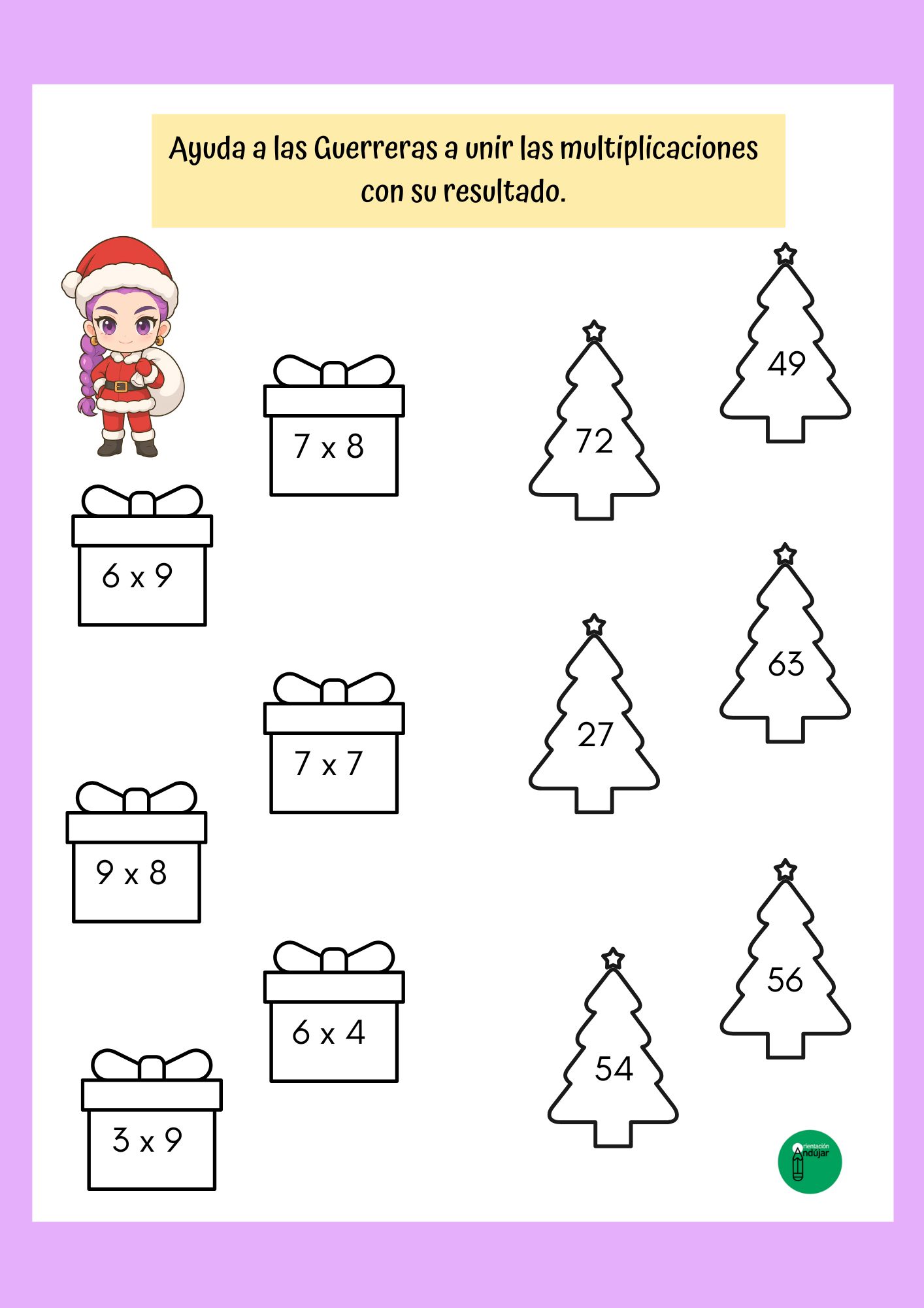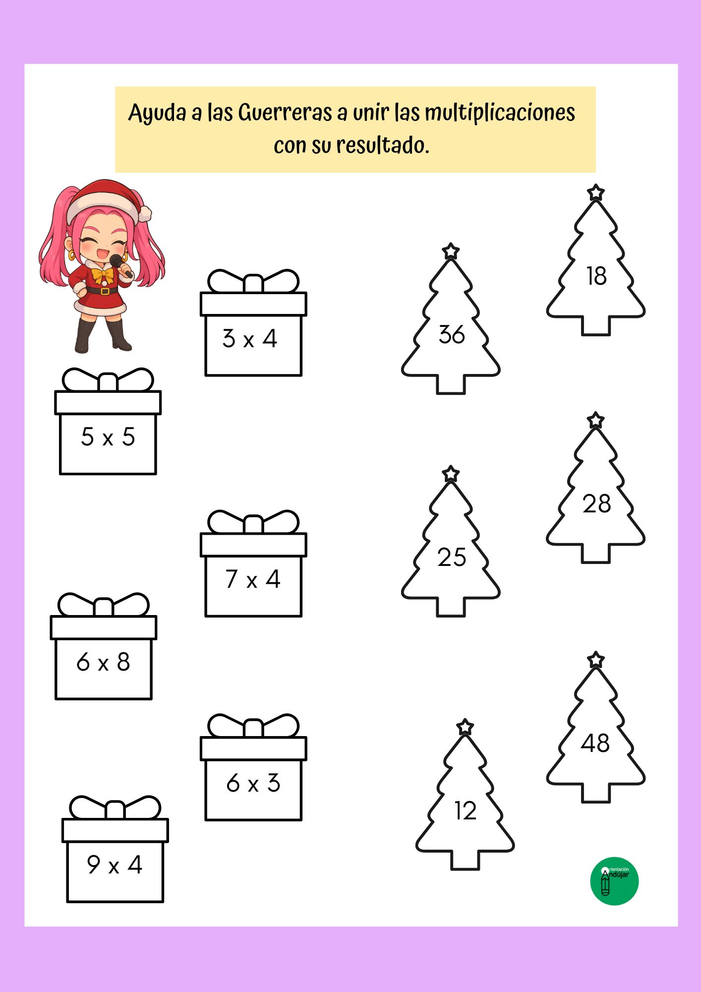 El mes de diciembre ofrece muchas oportunidades para introducir actividades especiales en el aula. En esta ocasión, presentamos unas fichas diseñadas para practicar las tablas de multiplicar con una propuesta visual diferente: las Guerreras K-Pop, personajes originales inspirados en la estética de los grupos coreanos y acompañados de un ambiente navideño.