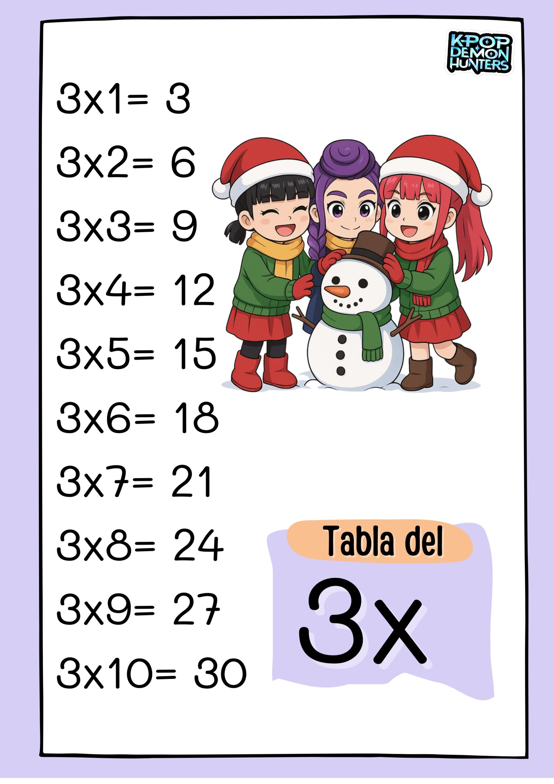 Las guerreras Navideñas del K-pop Carteles tablas multiplicar 3 Publicado por orientacionandujar el 1 diciembre, 2025