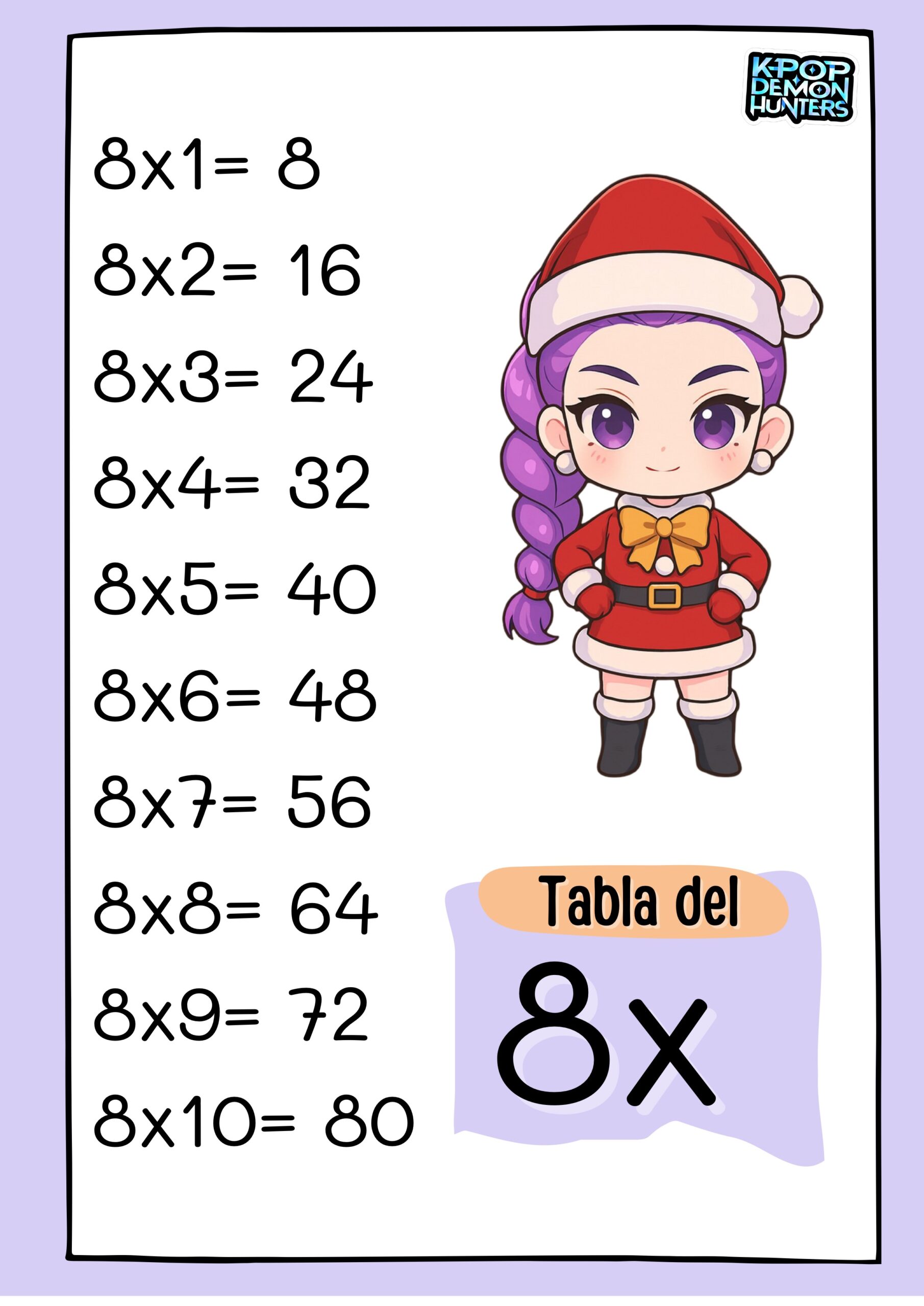 Las guerreras Navideñas del K-pop Carteles tablas multiplicar 8 Publicado por orientacionandujar el 1 diciembre, 2025