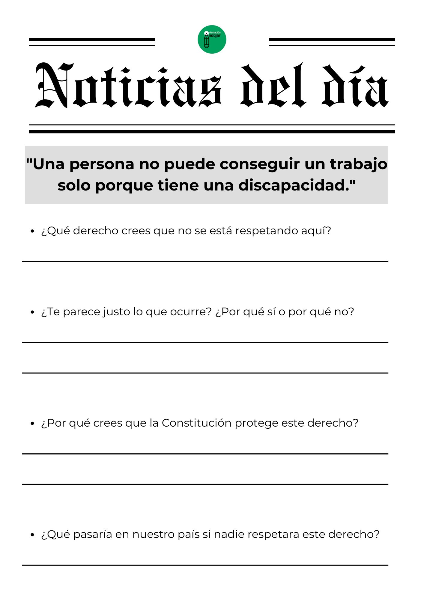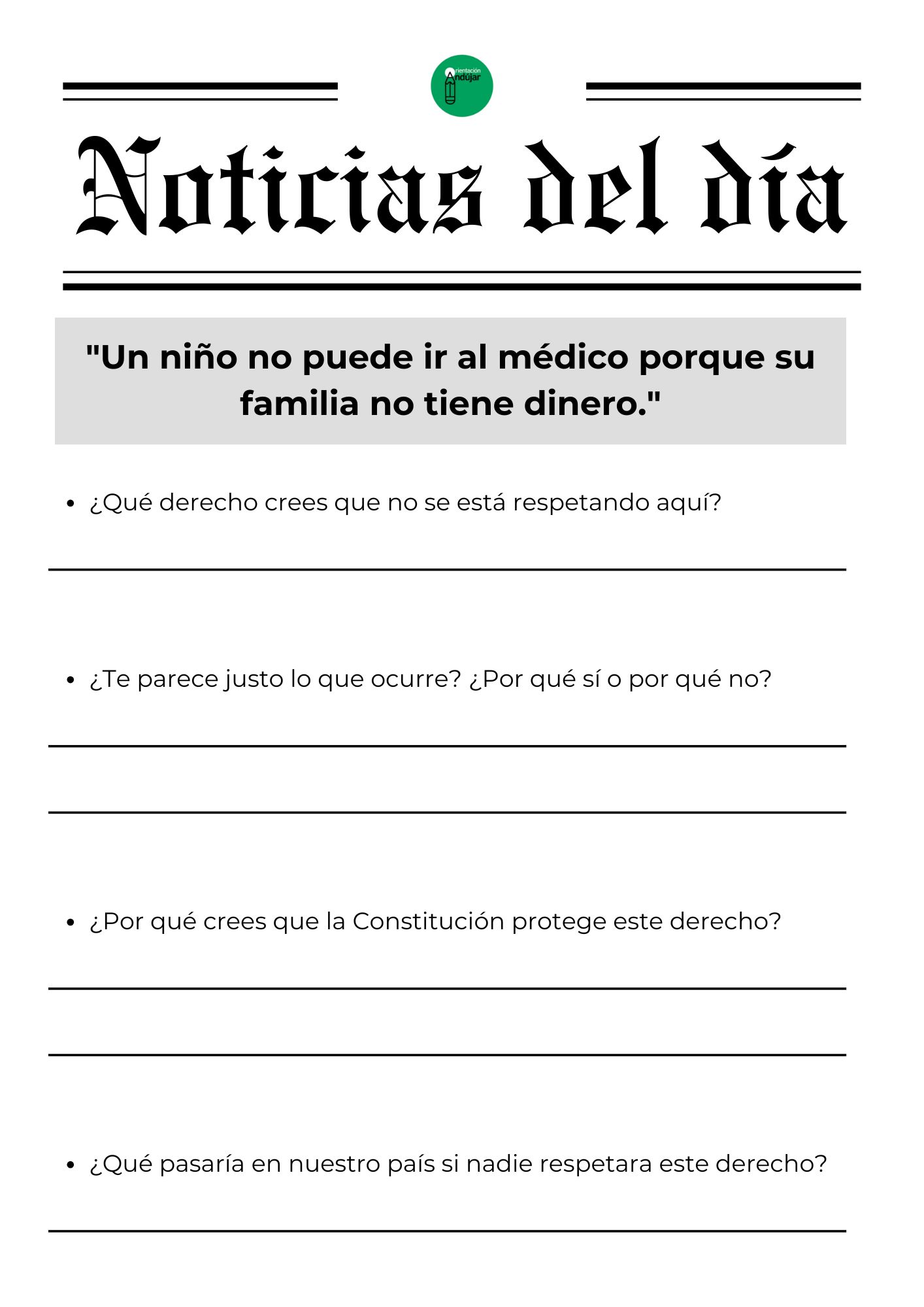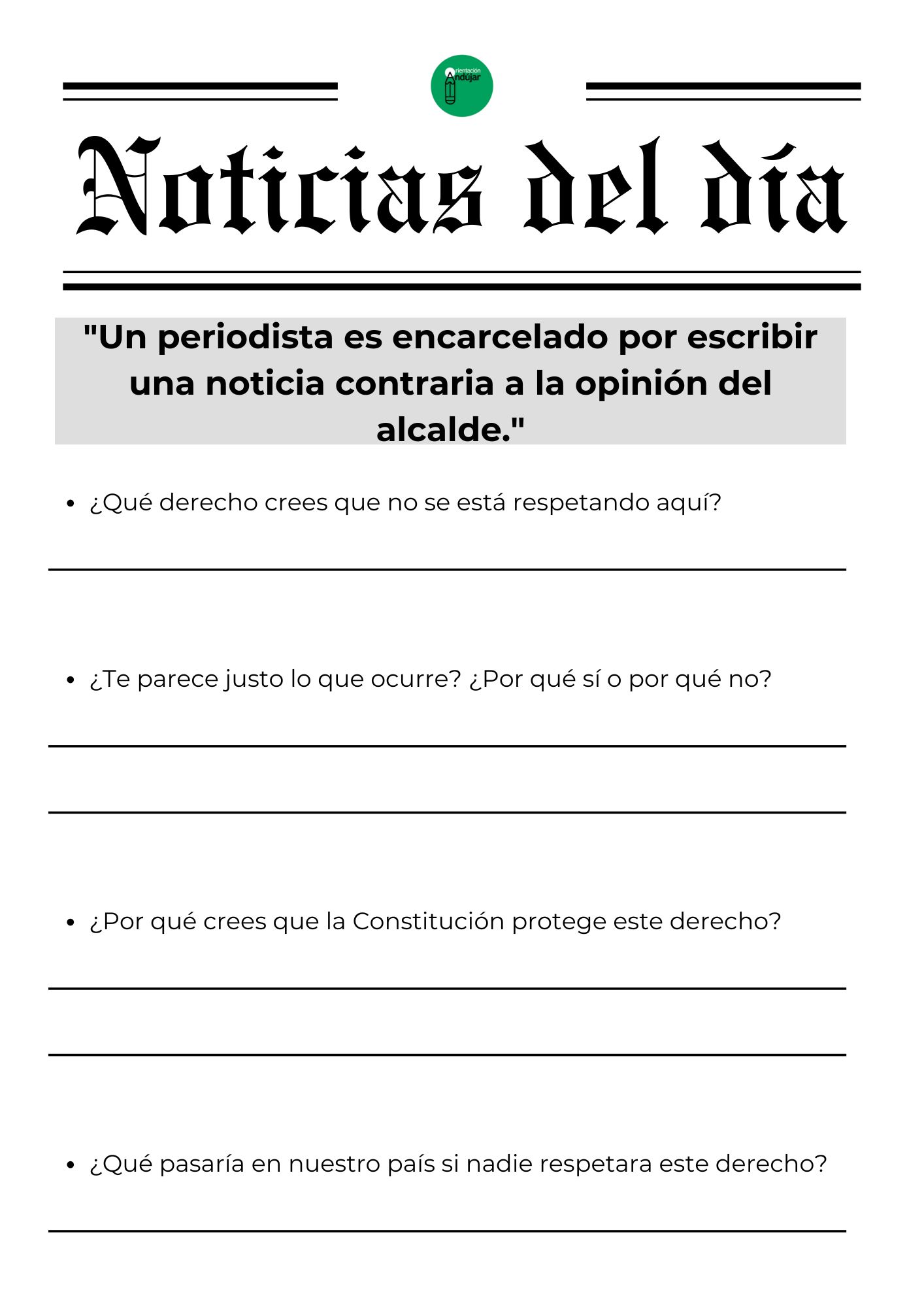 Hoy compartimos una actividad original que seguro será todo un éxito en el aula: “Detectives de Derechos”, una propuesta en la que los alumnos analizan titulares falsos donde se vulneran distintos derechos recogidos en la Constitución Española.