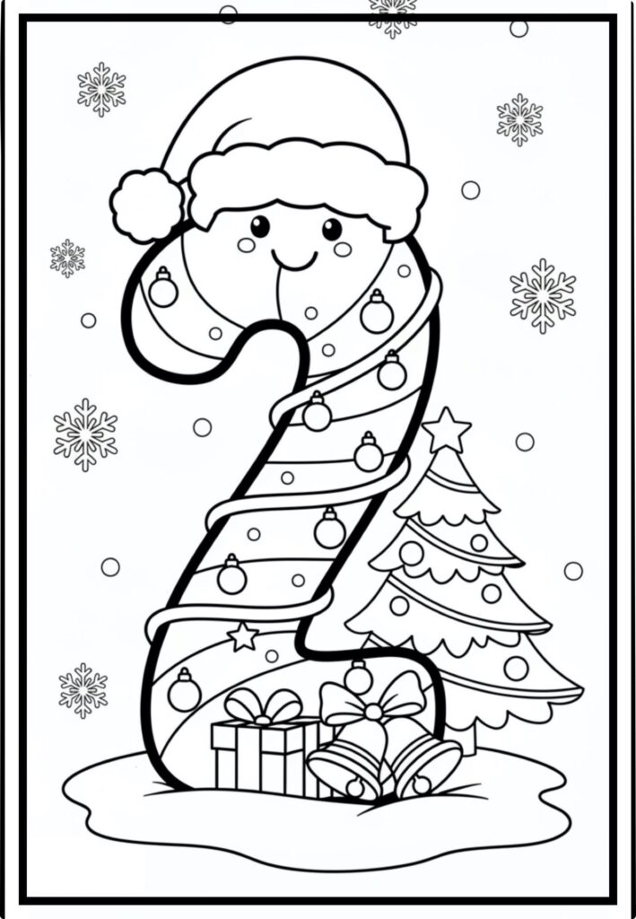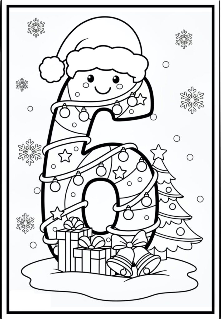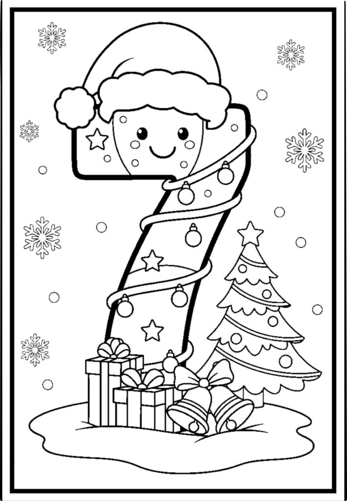Ilustraciones grandes y claras del 1 al 10, cada una decorada con temática navideña: gorro de Papá Noel, luces, árbol y regalos.