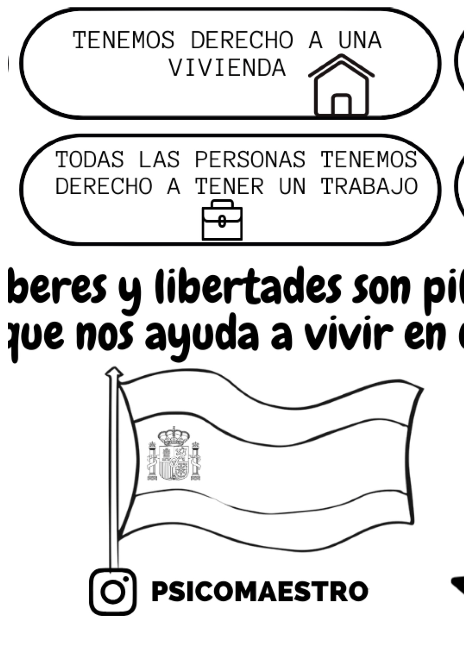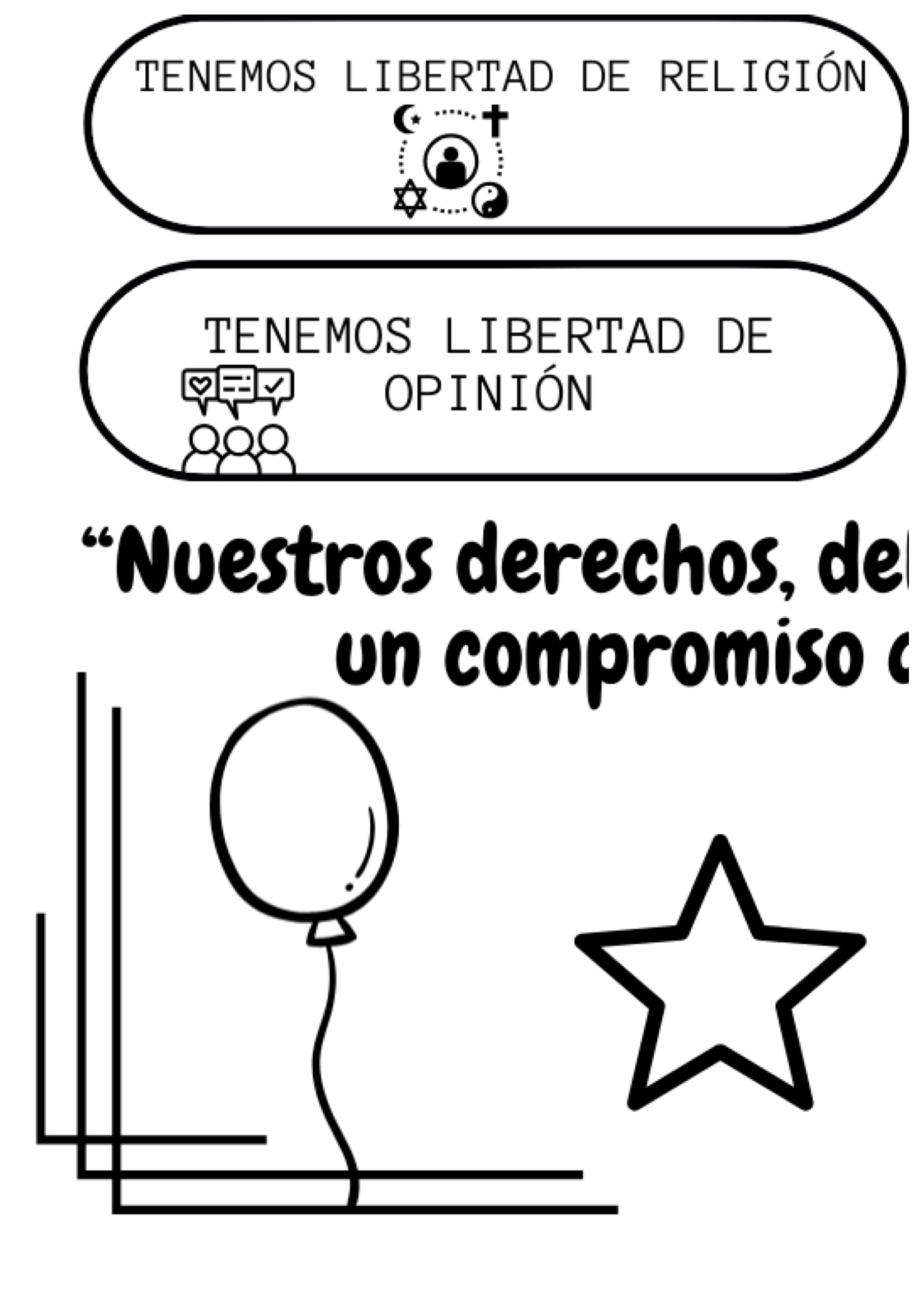 Este mural está diseñado para que cada alumno coloree una parte y, entre todos, formen una imagen completa llena de símbolos, palabras clave y derechos fundamentales.