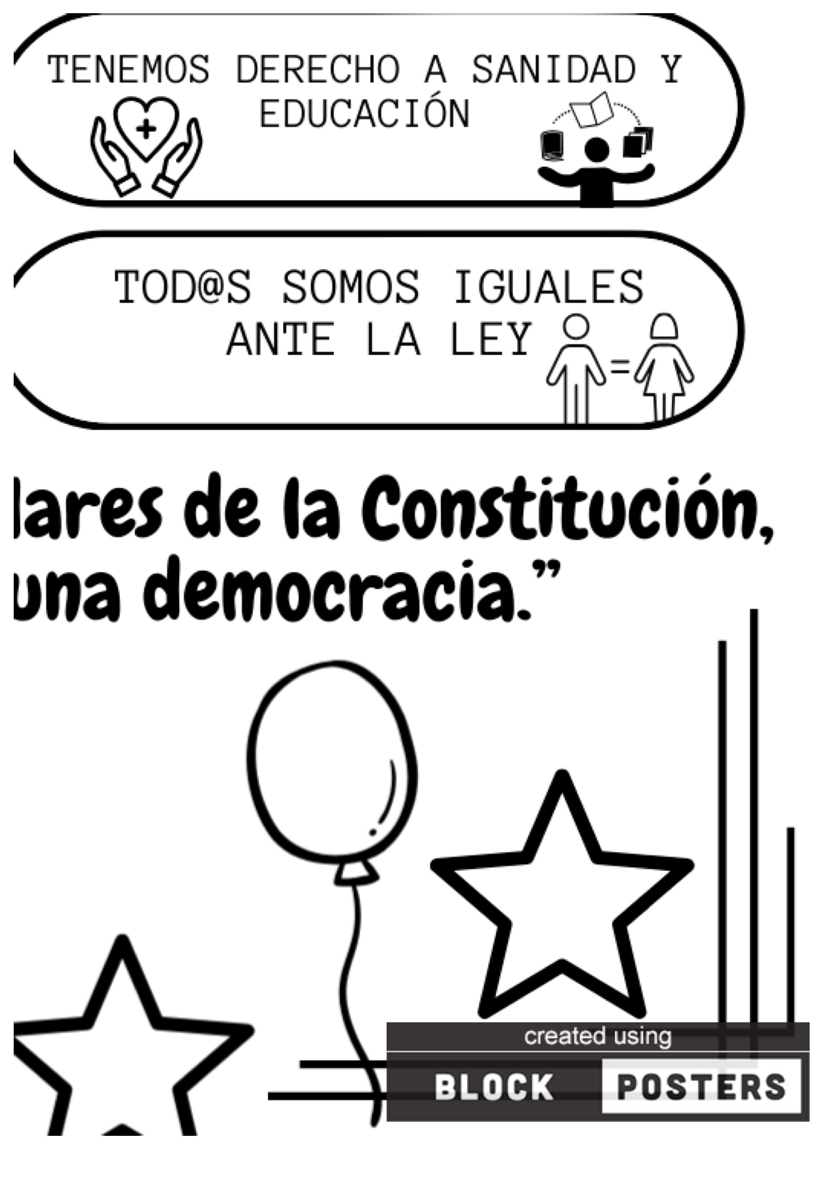 “Nuestros derechos, deberes y libertades son pilares de la Constitución, un compromiso que nos ayuda a vivir en una democracia.” (pág. 1)Constitución Mural colaborativ…