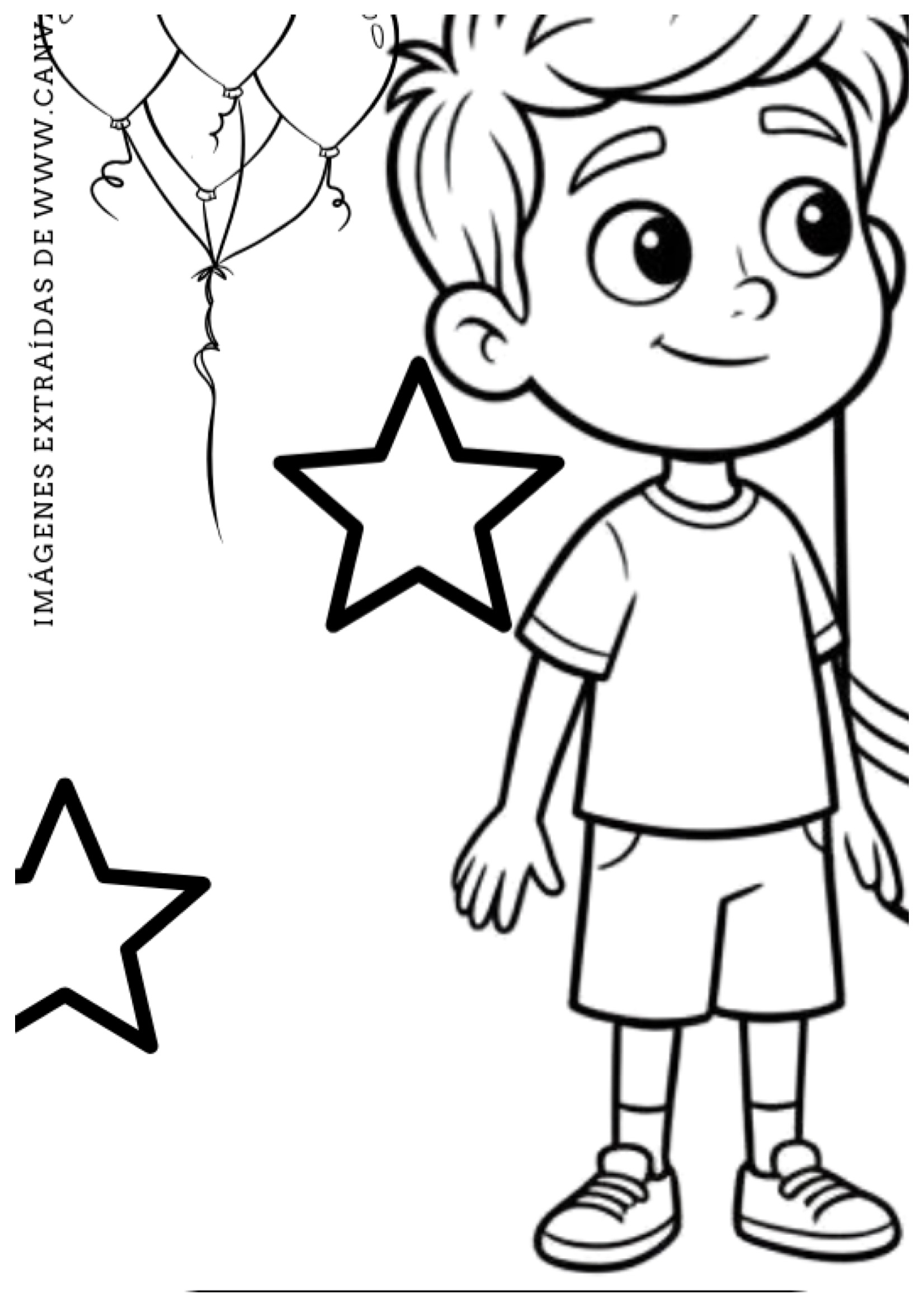 🎈 Elementos decorativos: estrellas, globos, confeti y dibujos infantiles para completar el mural (págs. 3–8)