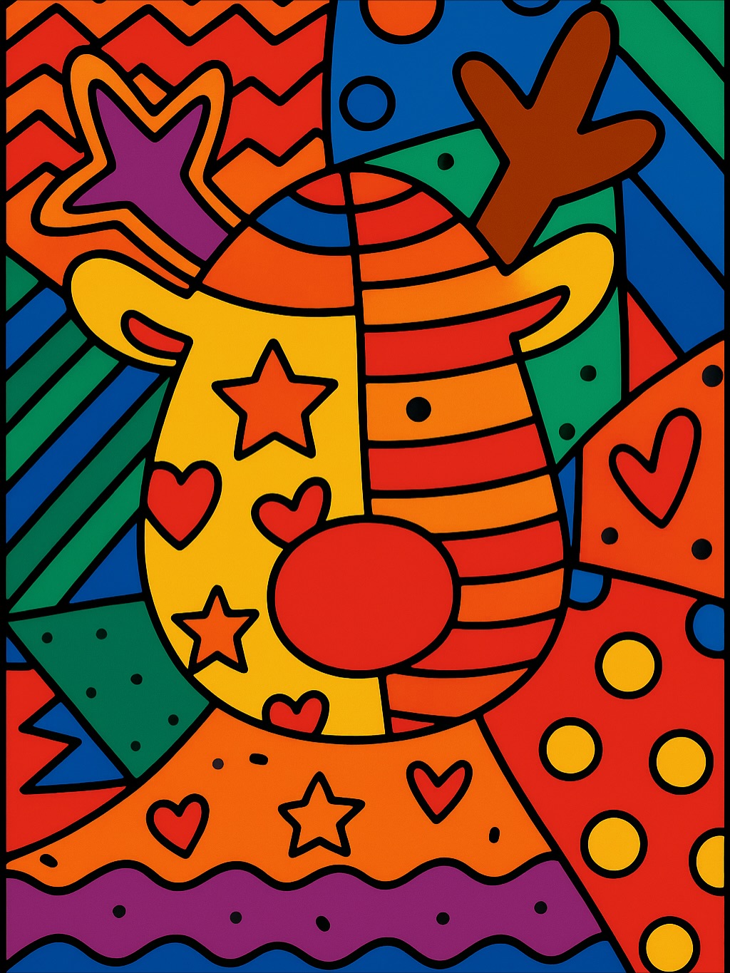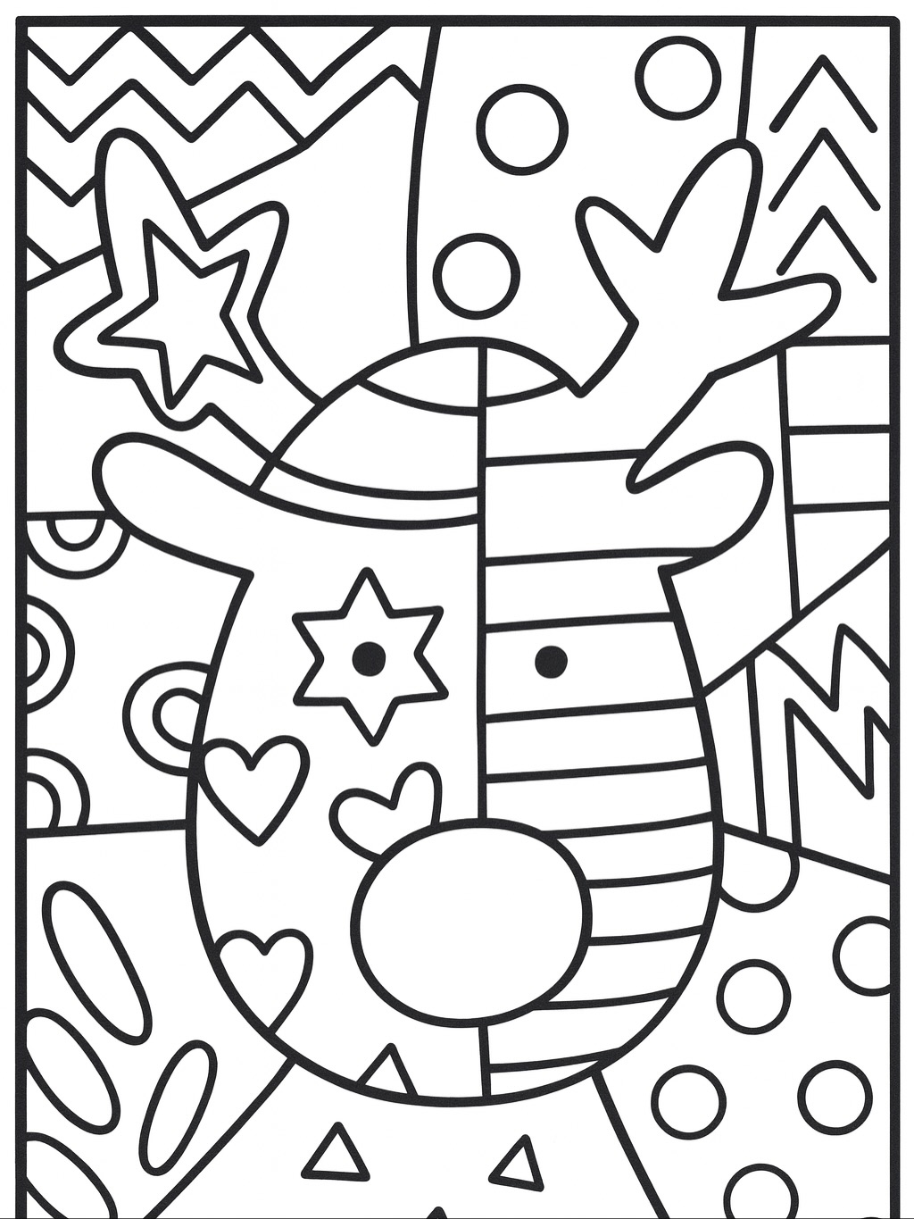 ⭐ Reno navideño dividido en secciones con líneas, estrellas, corazones, puntos y zig-zags.