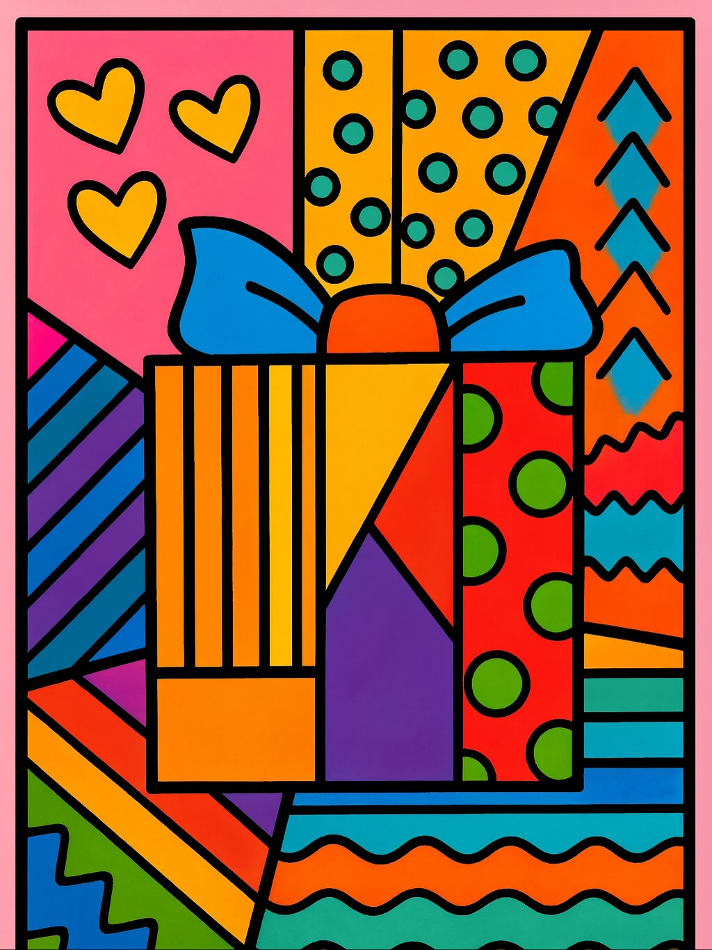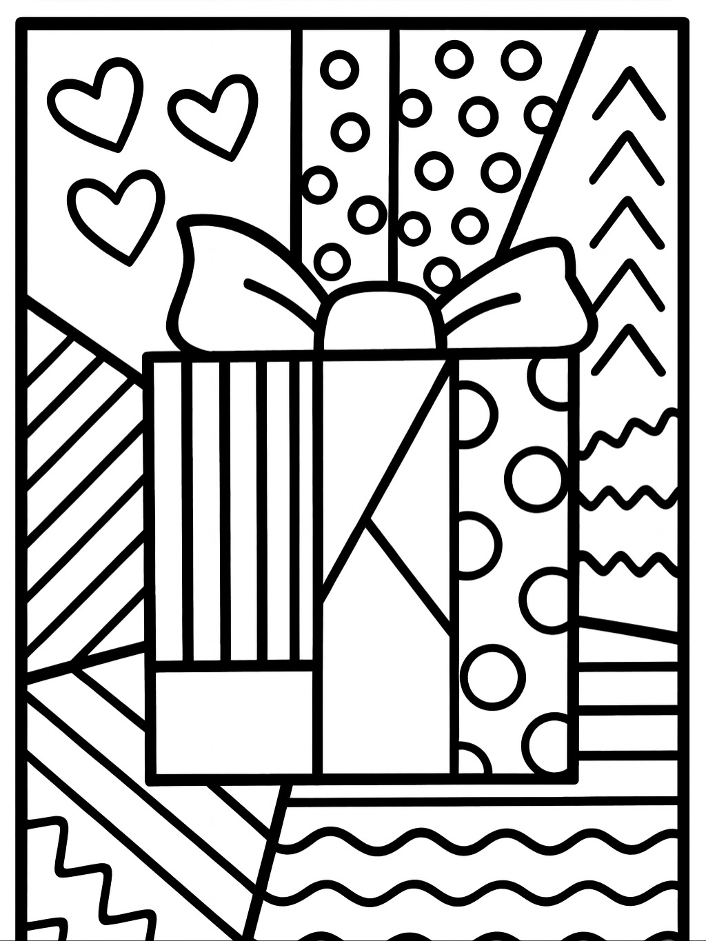 🎁 Regalo navideño decorado con rayas, ondas, puntos y diferentes patrones para completar.
