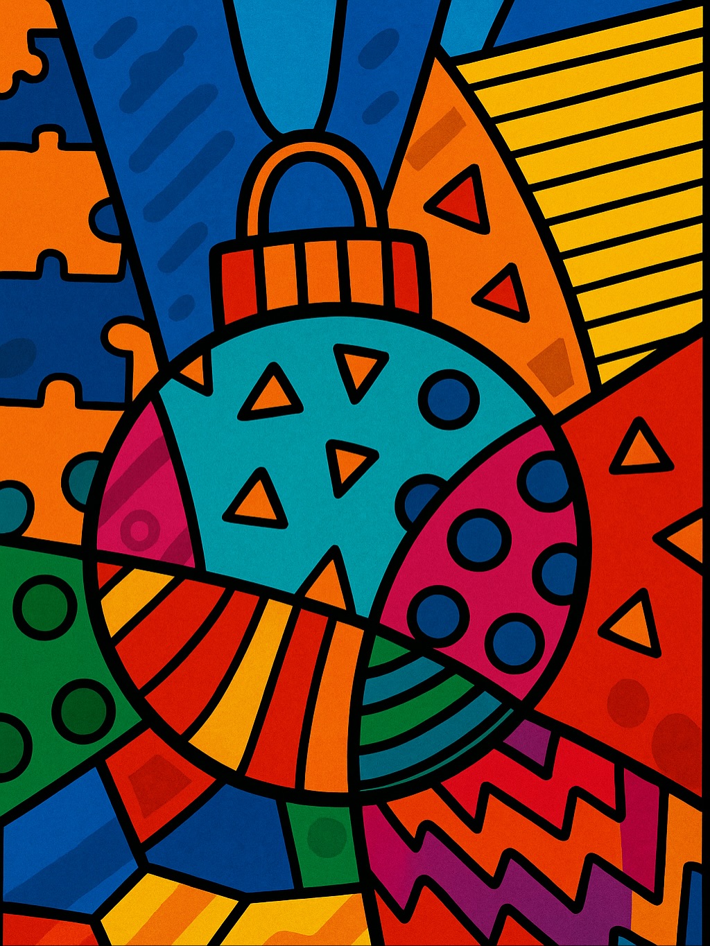 🔵 Bola navideña decorativa con triángulos, círculos y líneas para inventar combinaciones.