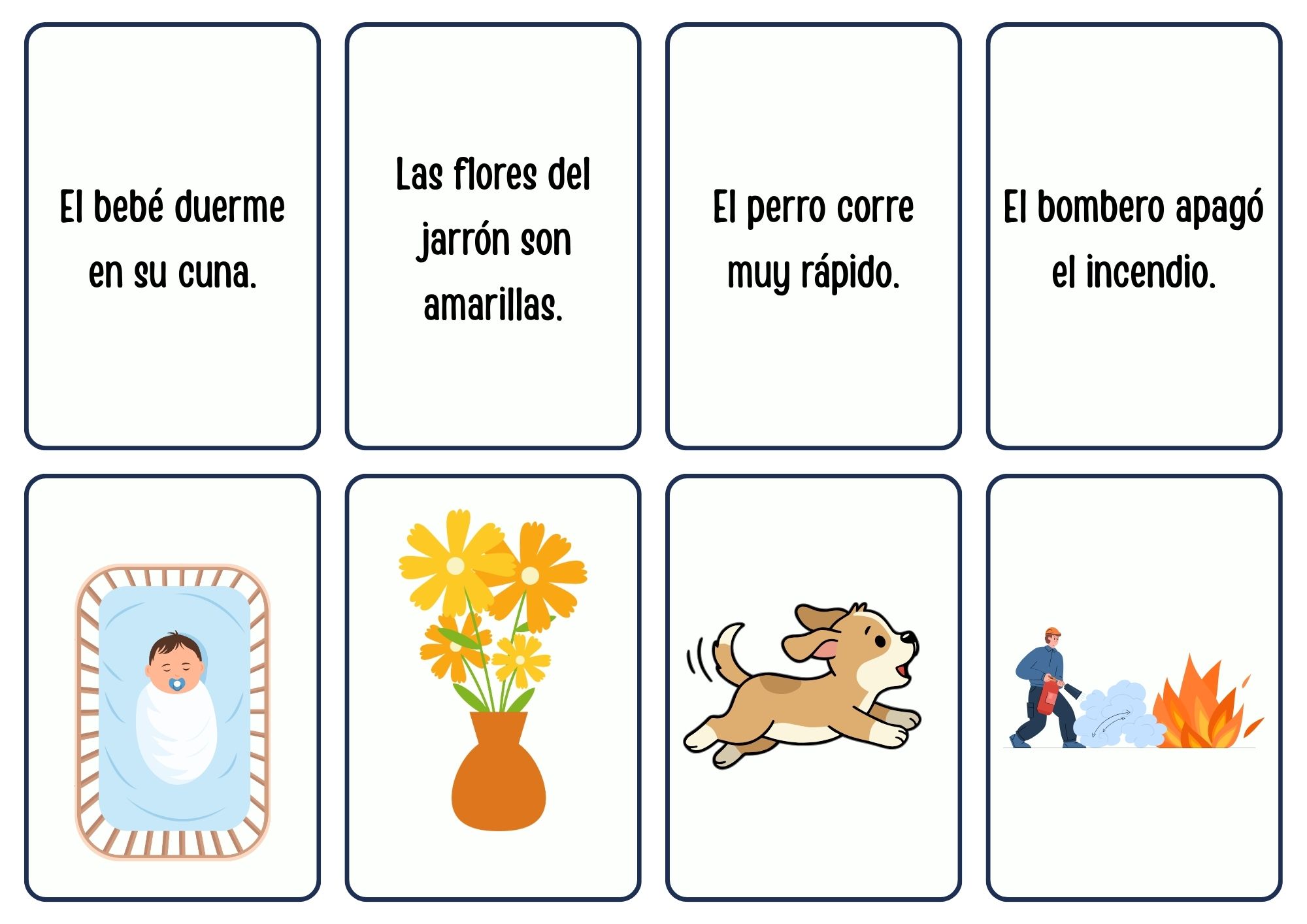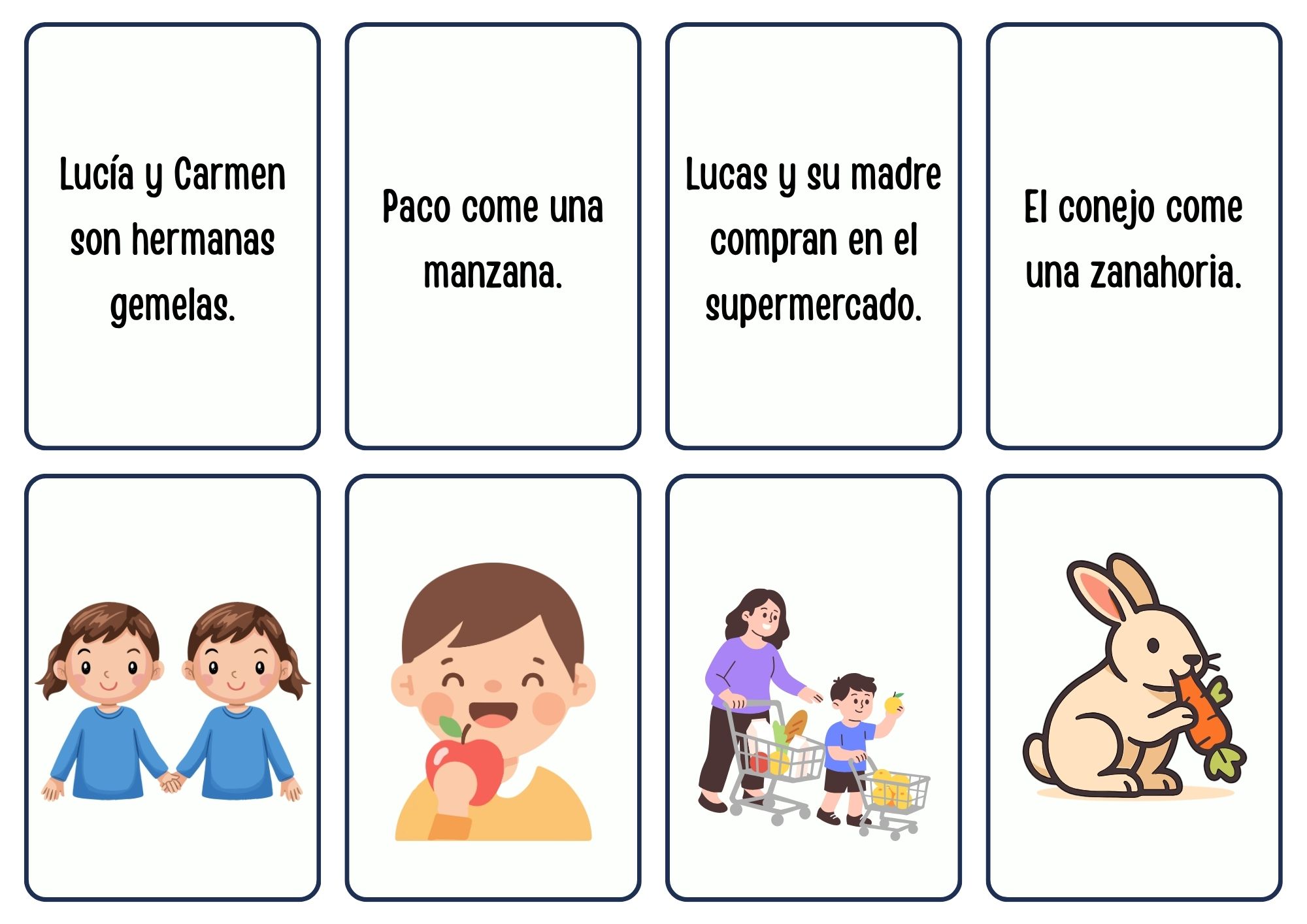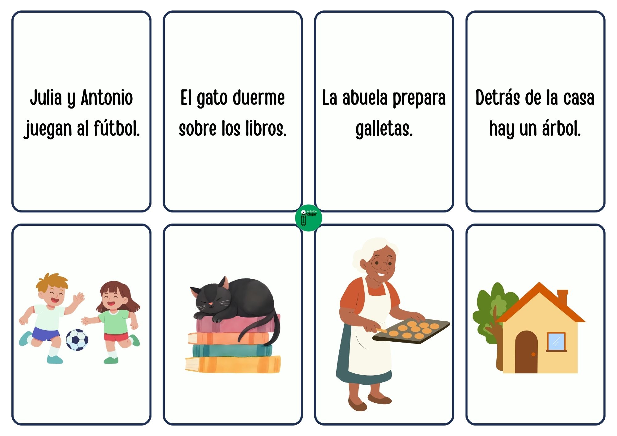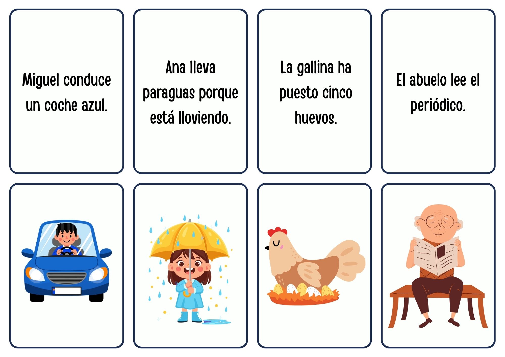 Pensando en ello, hemos diseñado un recurso manipulativo sencillo, visual y motivador: una colección de cartas para trabajar la comprensión de frases a través de la asociación entre texto e imagen.
