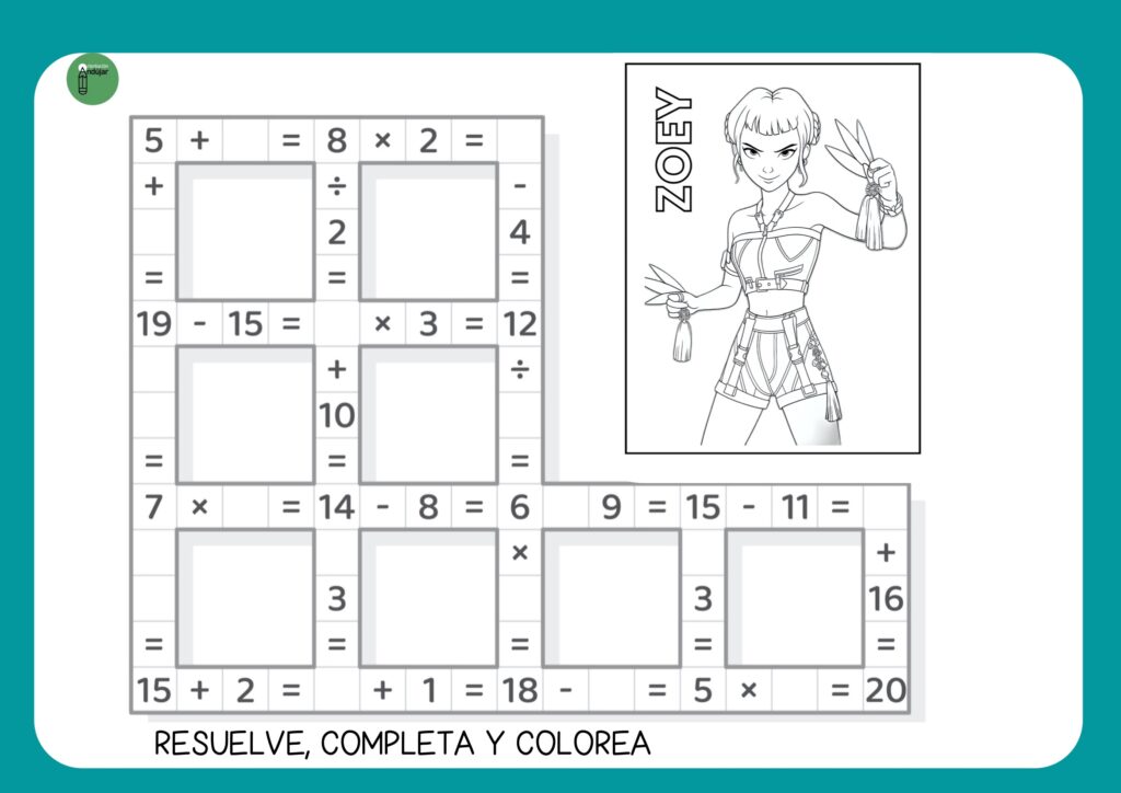A través de estos puzzles matemáticos, los alumnos resuelven operaciones, completan recorridos numéricos y, como recompensa, colorean ilustraciones llenas de personalidad y estilo.