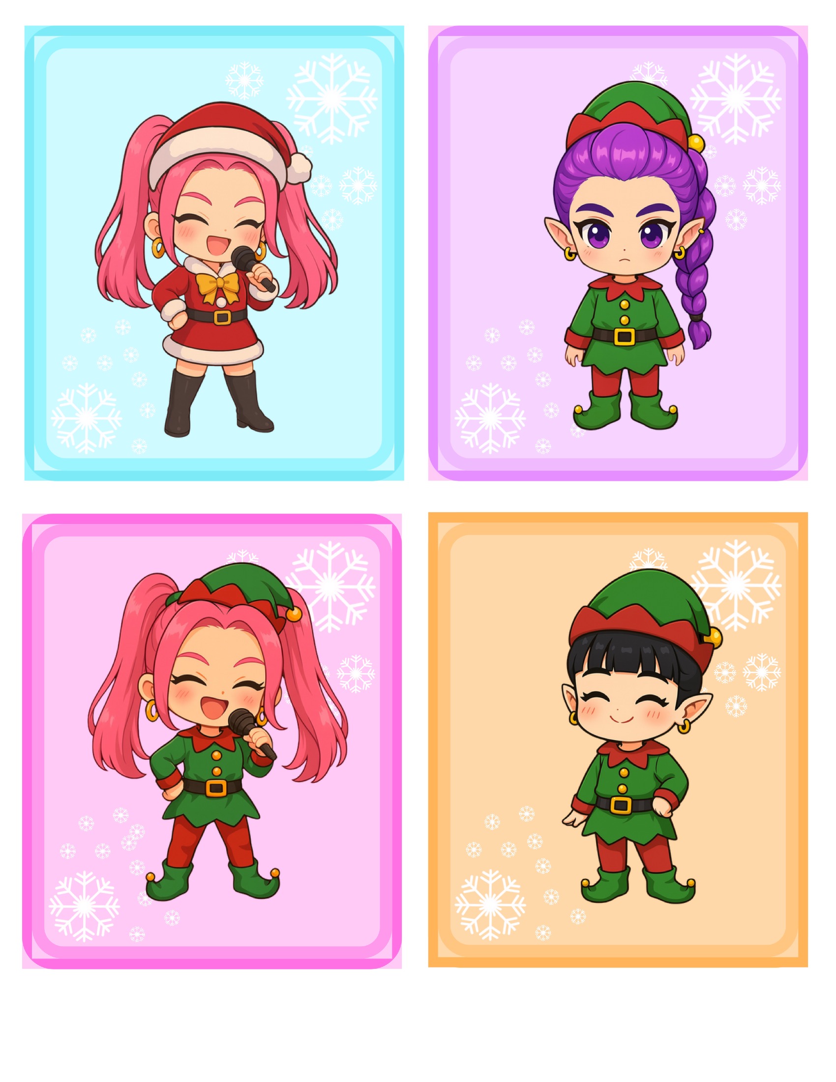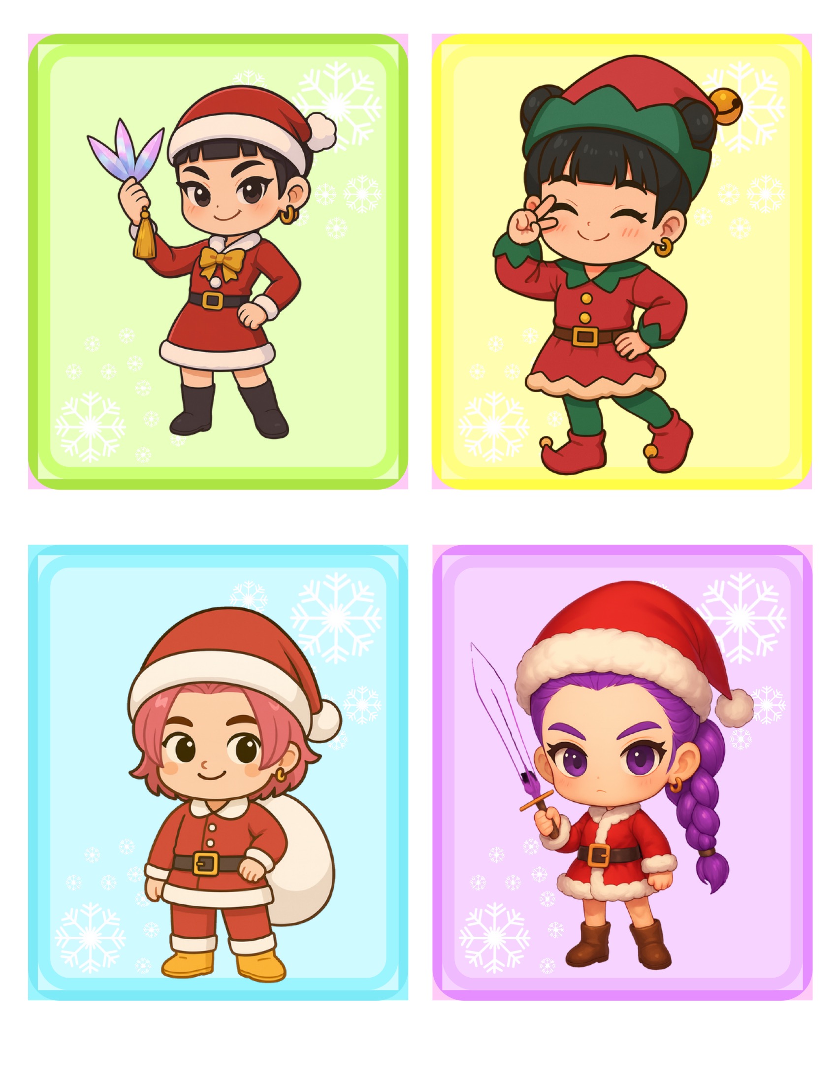 Diseños navideños de las Guerreras del K-Pop en versión elfa, Reyes Magos y temática Santa.