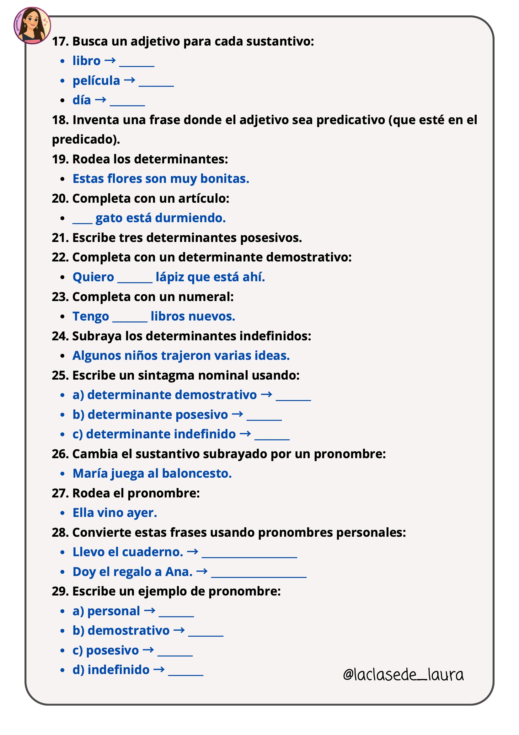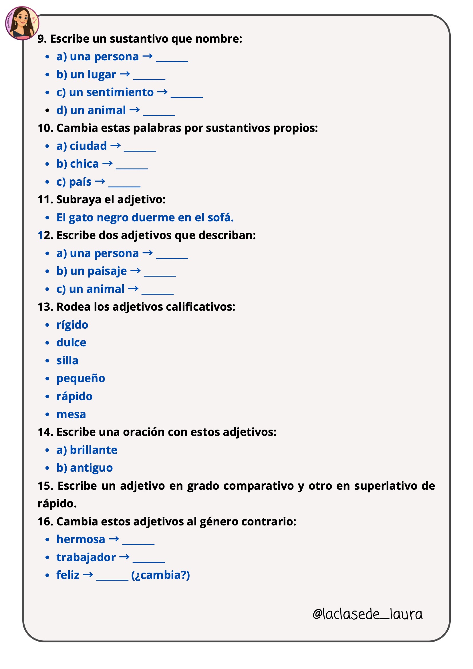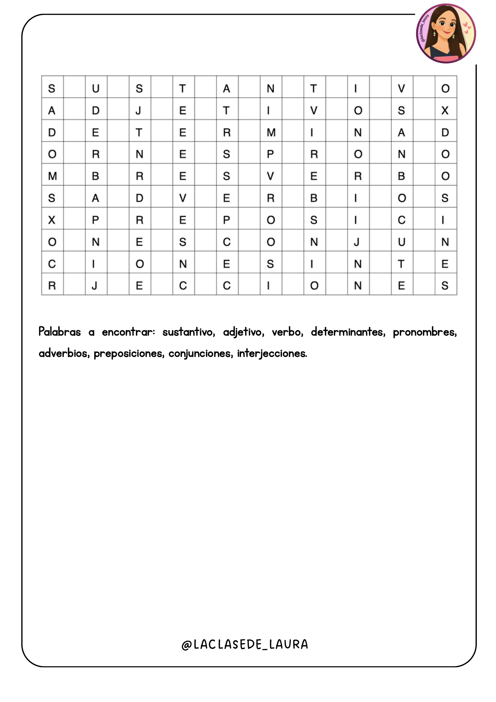 Sencillos juegos y ejercicios para trabajar las categorías gramaticales