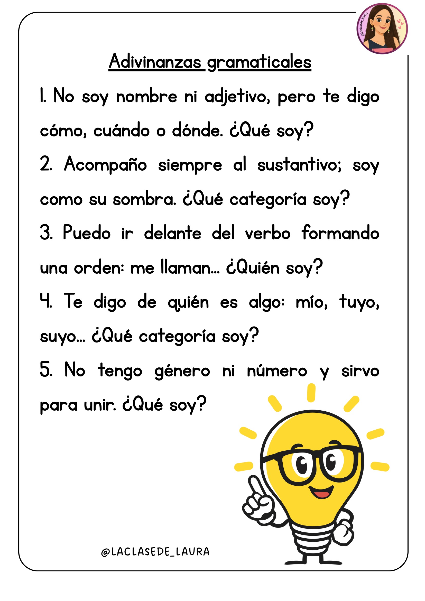 En esta entrada compartimos un recurso práctico y muy motivador para trabajar las categorías gramaticales de forma lúdica en Primaria. A través de juegos sencillos y dinámicos, el alumnado aprende a identificar y clasificar palabras mientras se divierte, reforzando contenidos clave de Lengua.