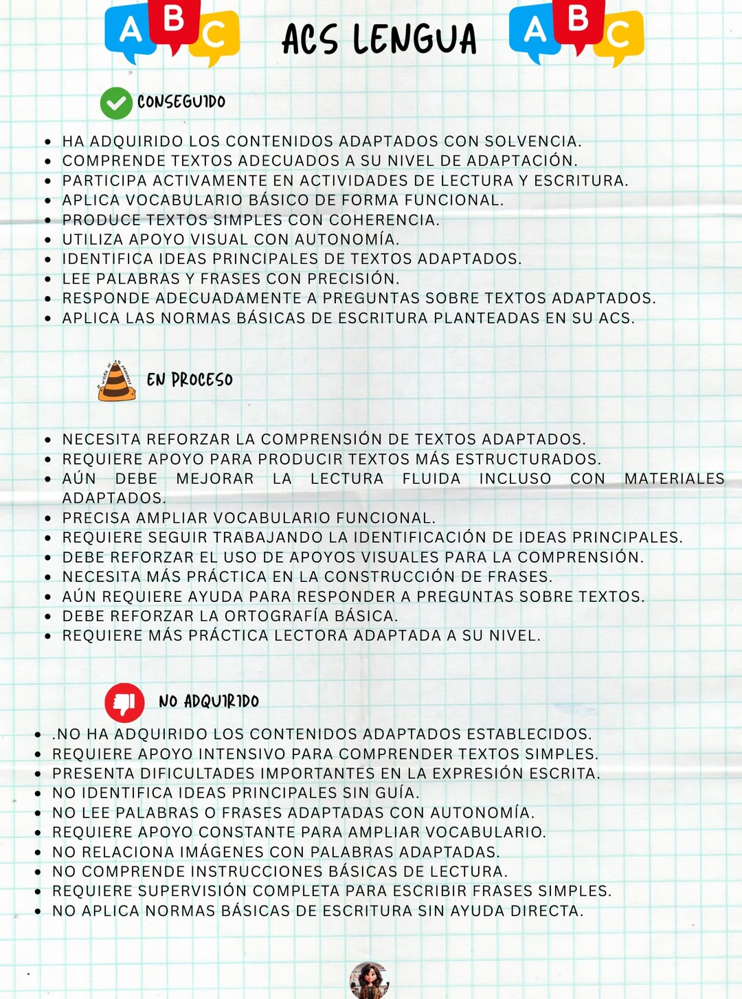 ACS Lengua (comprensión, vocabulario funcional, escritura adaptada).